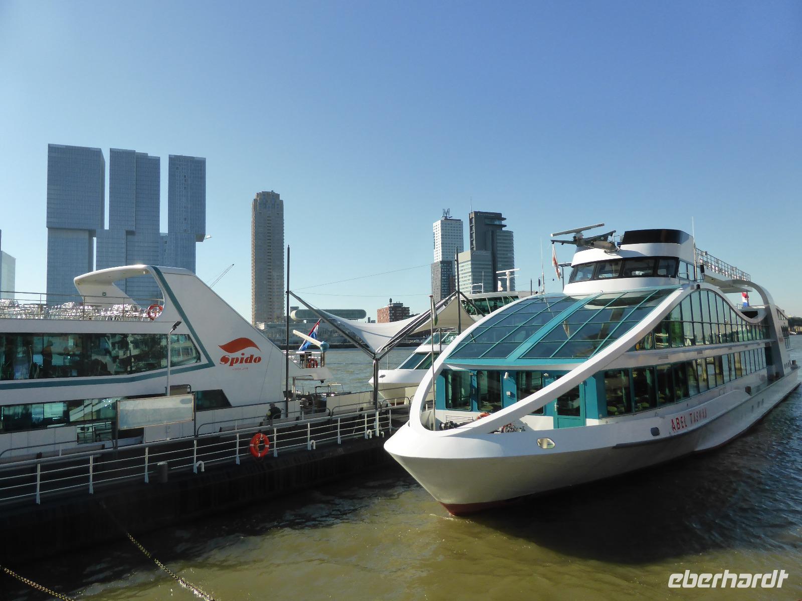 Als erstes fuhren wir nach Rotterdam zur Hafenrundfahrt. Rotterdam mit seinem großen Hafen ist eine sehr moderne Stadt aufgrund der Zerstörungen aus dem Zweiten Weltkrieg. Die berühmten Kubushäuser sowie den Euromast und die Erasmusbrücke konnten wir bereits bei der Hinfahrt zu Spido unserem Schiffsanleger sehen.
