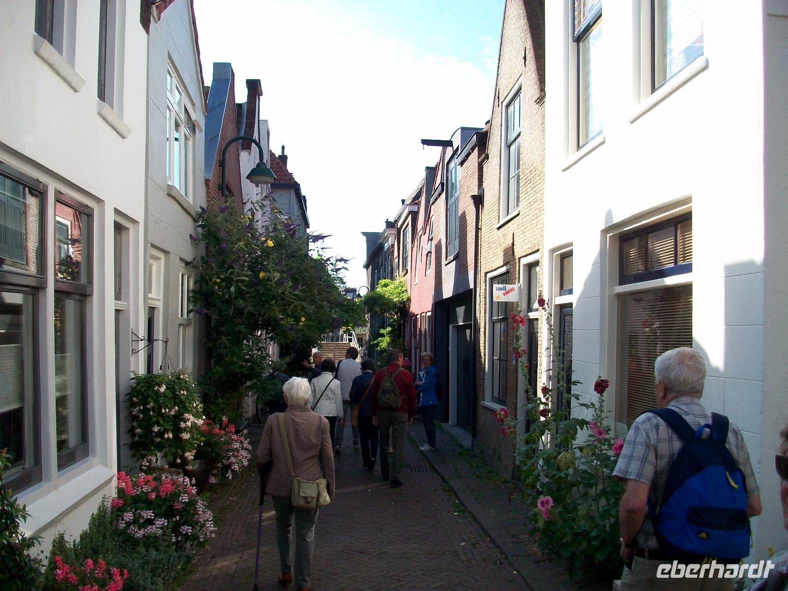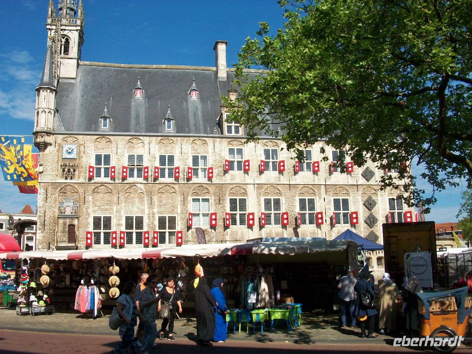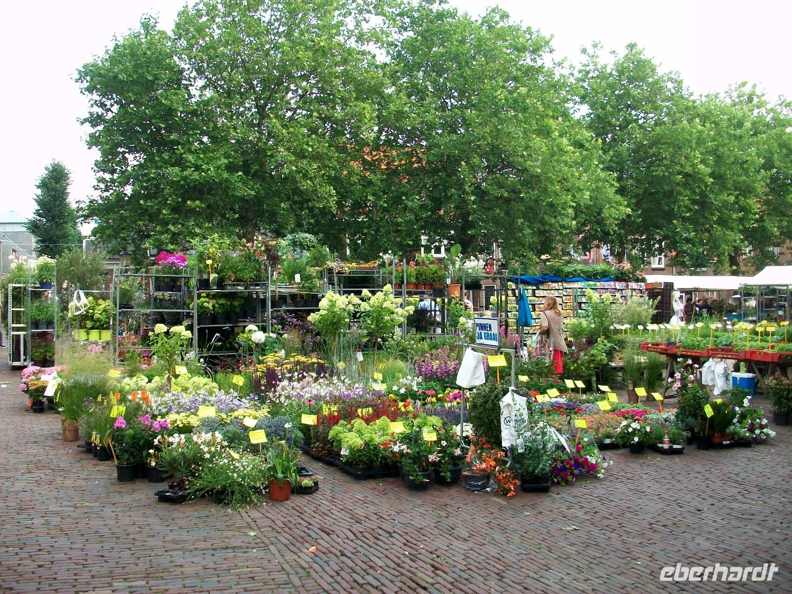Ein besonders schöner Ort ist der reizvolle Blumenmarkt auf welchen all der bunte Reiz den die niederländischen Gärtner erzeugen angeboten wird. Hier, in unmittelbarer Nähe, steht auch der mächtige Turm der Kirche Unserer Lieben Frau und der Weg führt uns durch schmale Gassen auf den Wochenmarkt, hier werden viele Spezialitäten der Niederlande feilgeboten: Fisch, Käse, die leckeren Sirupwaffeln die wir schon kennenlernen konnten und vieles, vieles mehr.