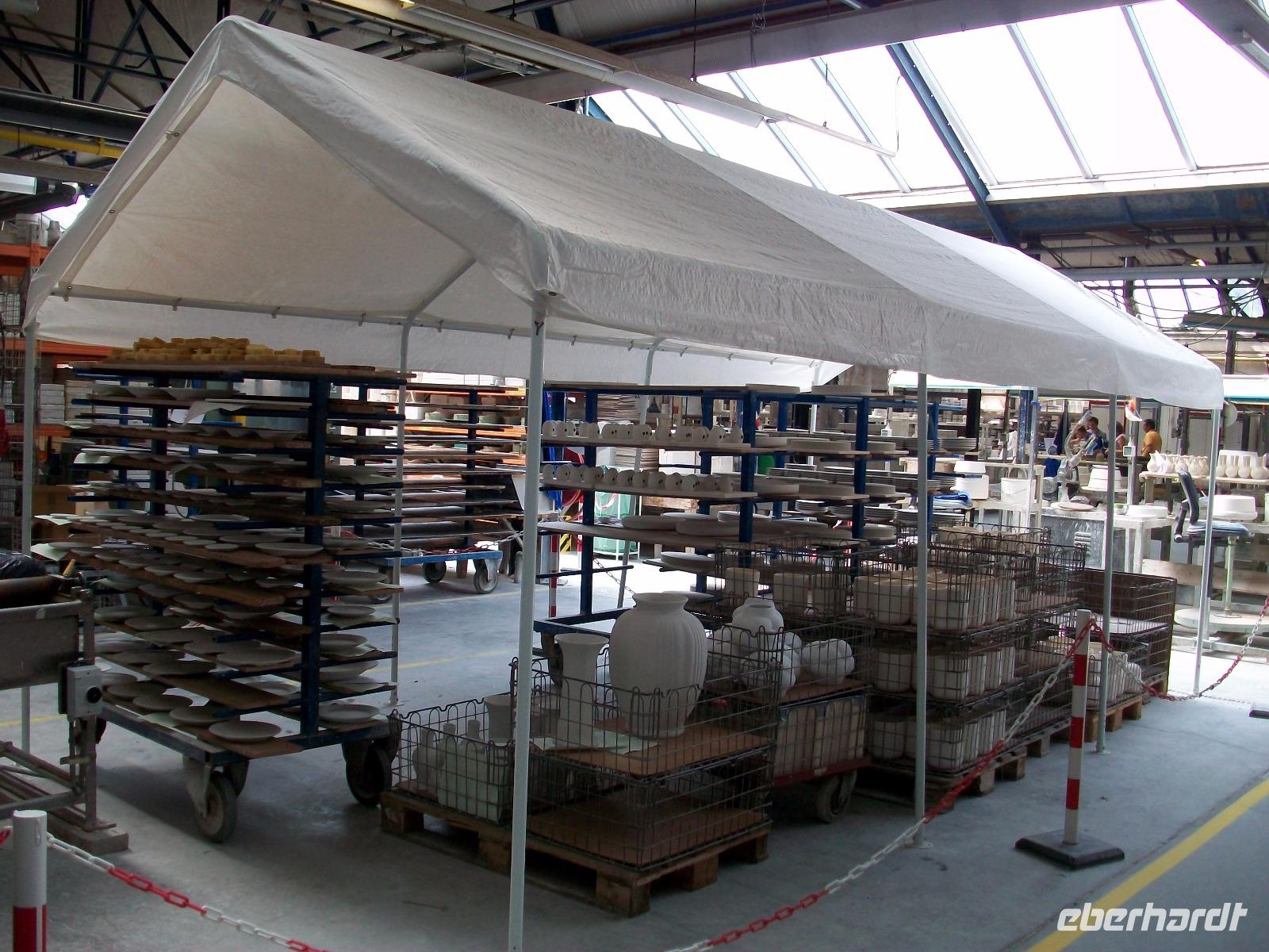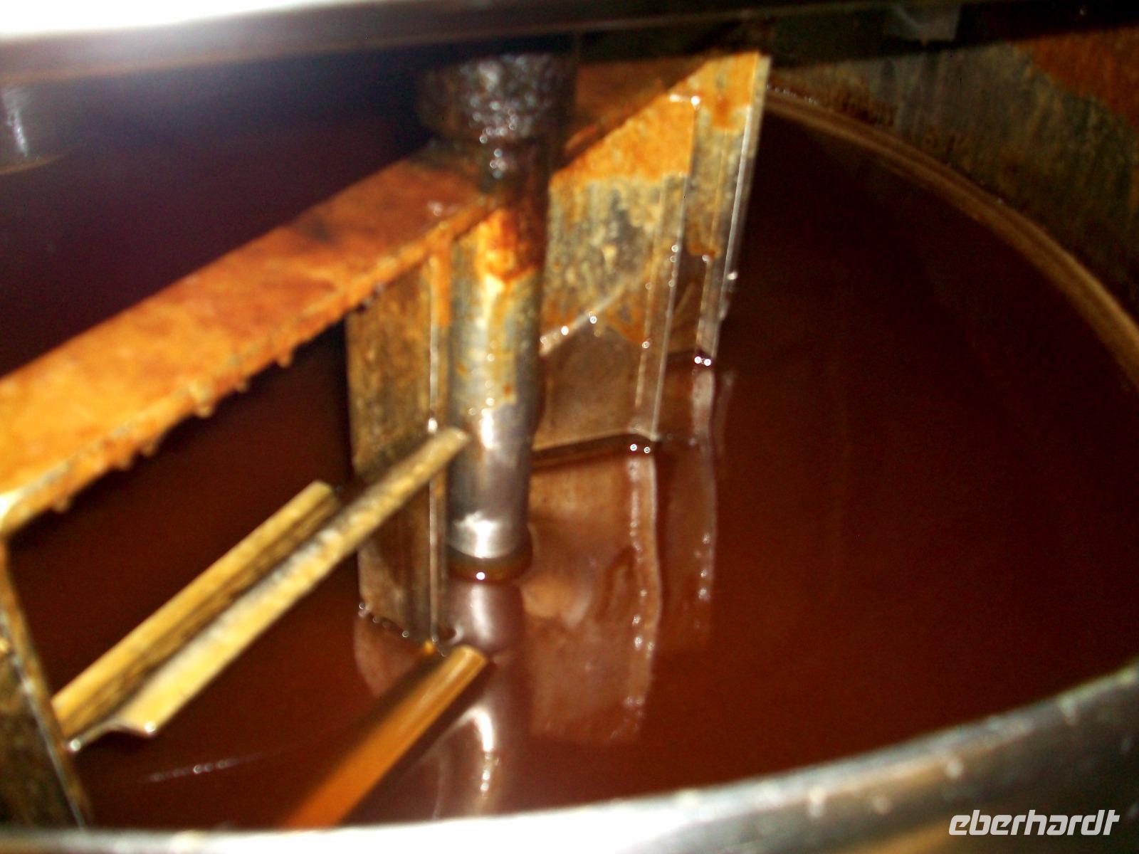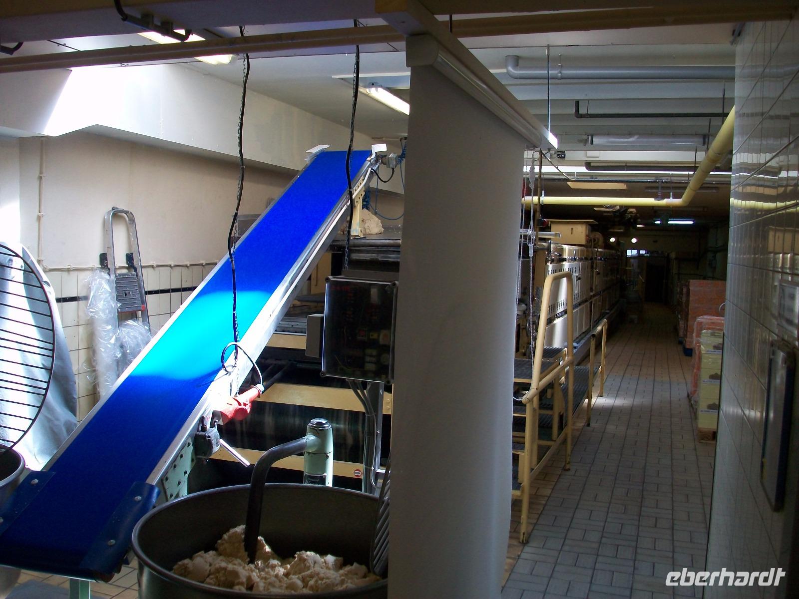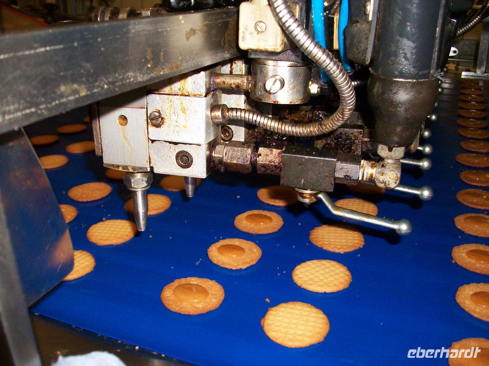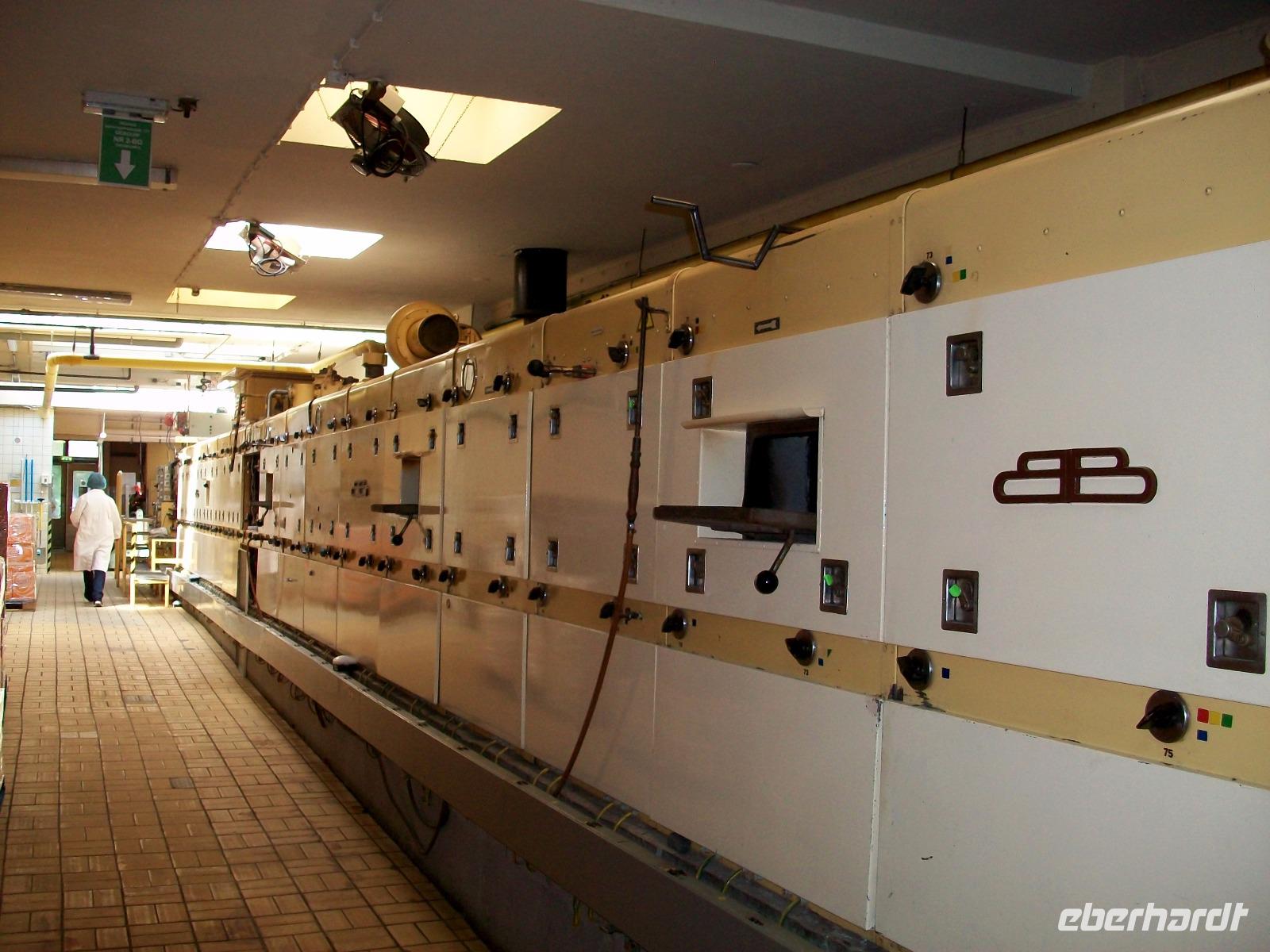 Etwas abseits wird hier eine Spezialität hergestellt: die berühmte Sirupwaffel. Zunächst werden wir zu einer Tasse Kaffee eingeladen und natürlich dürfen wir von dieser süßen Köstlichkeit auch kosten. Dann geht es in den Betreib der die Waffeln herstellt; wir bekommen alle weiße Kittel an und sehen nun aus wie die Bäcker! Auf einer langen Backstraße entsteht die Waffel; erst wird der Teig portioniert, später ausgestanzt, gebacken zum Schluss kommt ein Klecks Karamelsirup, Marke Geheimrezept, darauf. Abschließend wird verpackt - fertig.