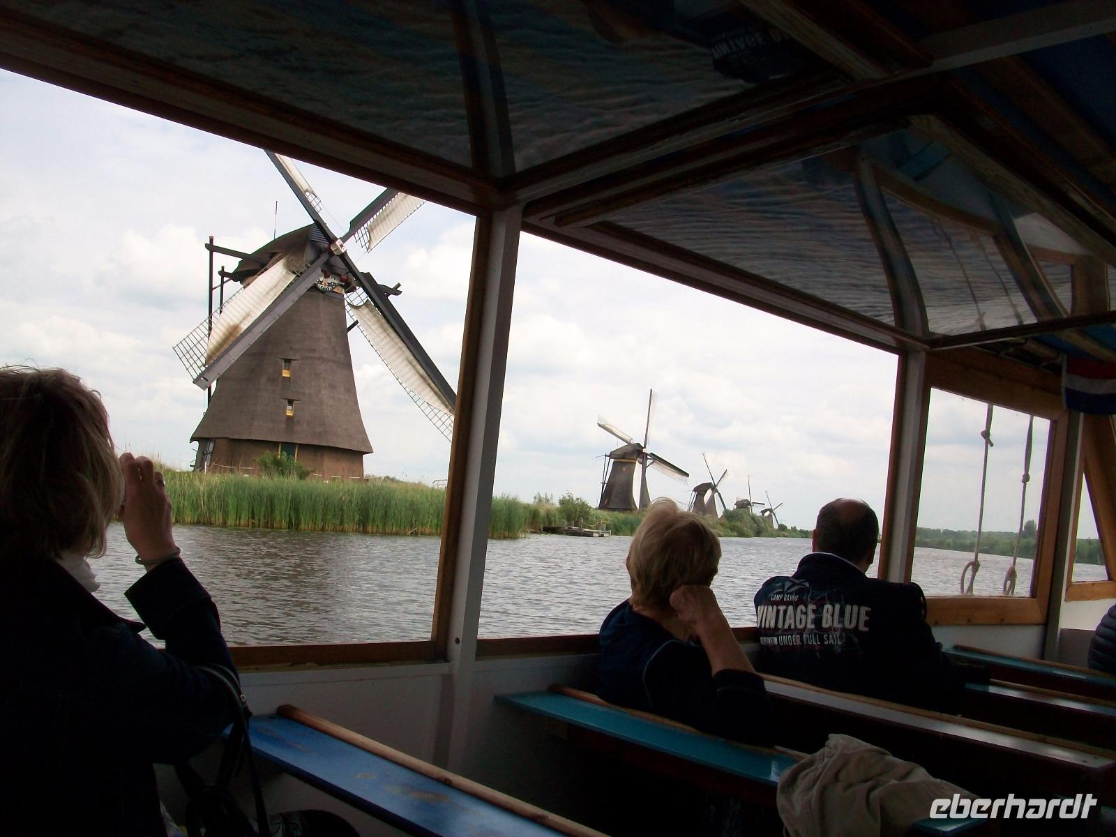 Nun ist es an der Zeit nach Kinderdijk zu fahren; hier runden wir nun das Bild vom typischen Holland ab. An diesem schönen Ort, an mehren Kanälen gelegen, ist ein Ensemble von Windmühlen aufgebaut deren Flügel sich im kräftigen Wind schnell drehen. Eine romantische Bootsfahrt bringt und direkt hinein in das Geschehen, ein besonderes Erlebnis! Damit endet dieser wirklich schöne Tag mit zahlreichen Impressionen die es nur hier gibt!