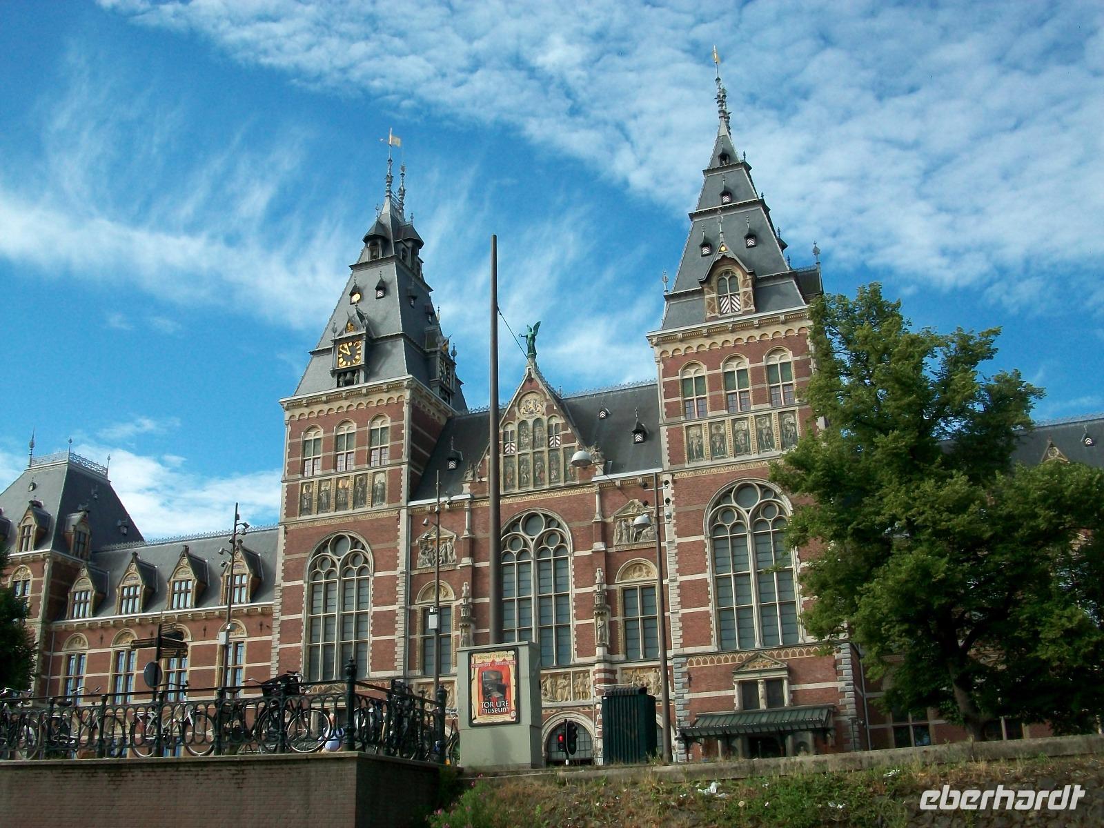 Weiter geht die Tour; wir sehen den Königlichen Palast und die monumentalen Gebäude die den Platz umstehen und gelangen durch das Gewühl des Damraks in Richtung Hauptbahnhof. Hier müssen wir etwas auf den Bus warten der sich durch das Straßengewühl kämpfen muss, mit ihm gelangen wir zum Museumsplein. Hier stehen zwei wichtige Museen. Im Rijksmuseum sind die Werke der niederländischen Klassiker, allen voran Rembrandt, zu bewundern und im van Gogh - Museum ist der Expressionismus dieses großen Künstlers zu bestaunen.