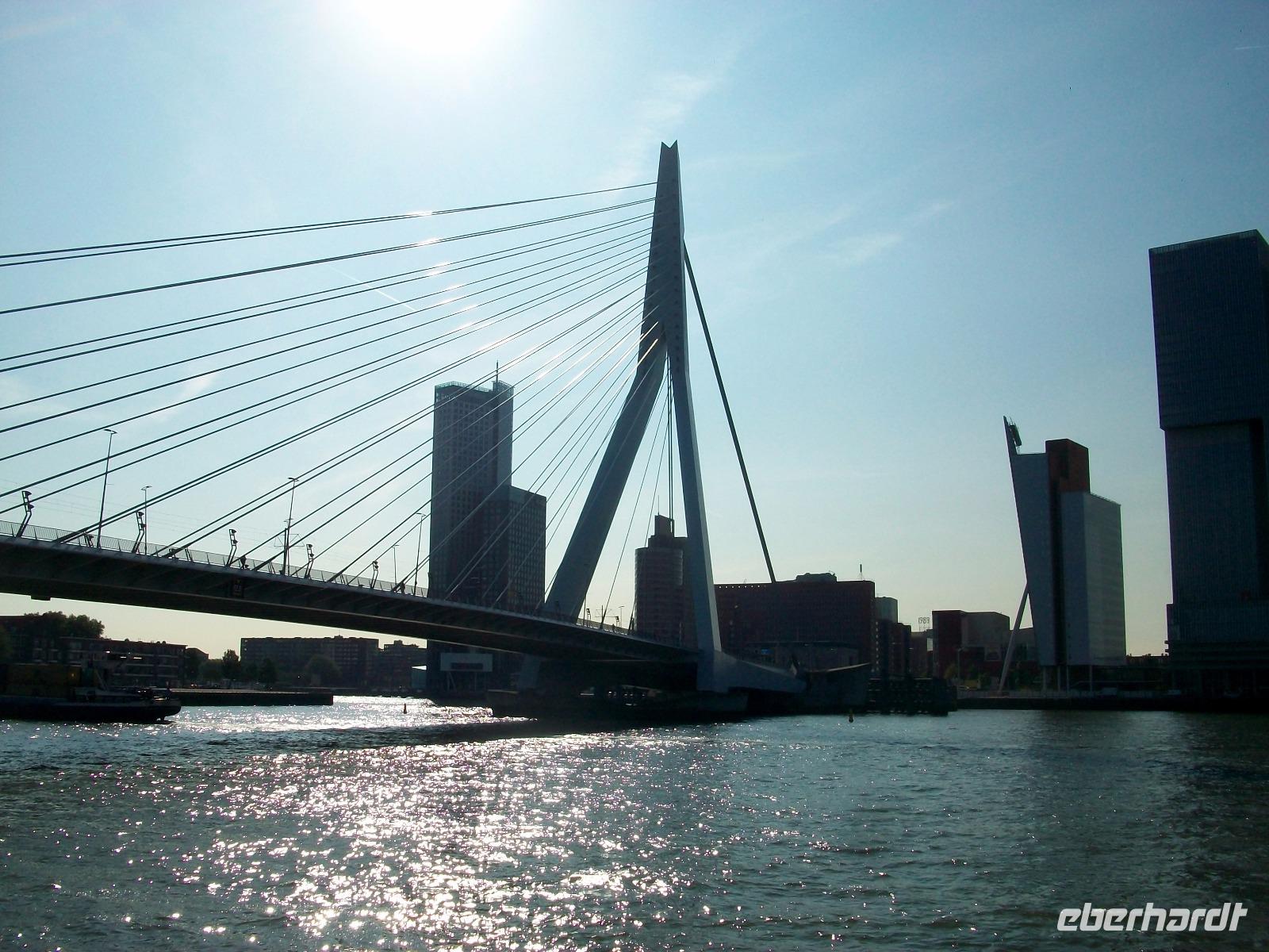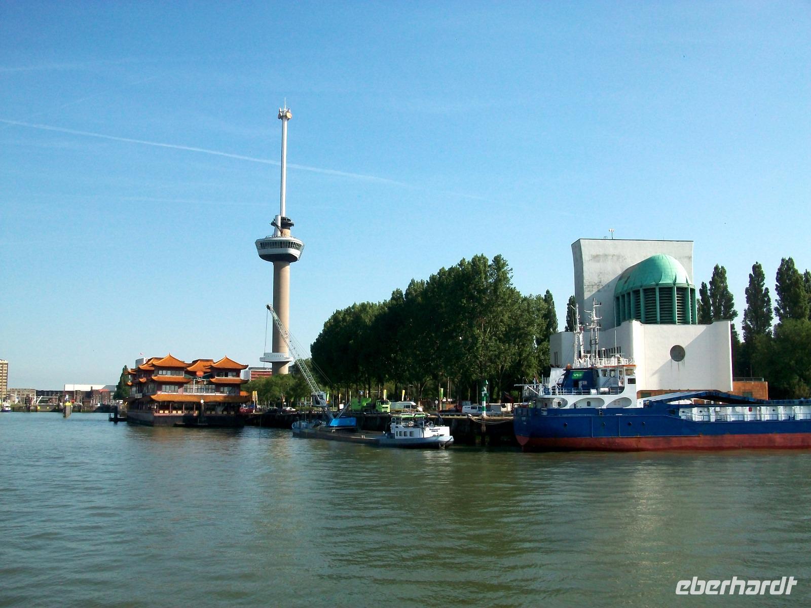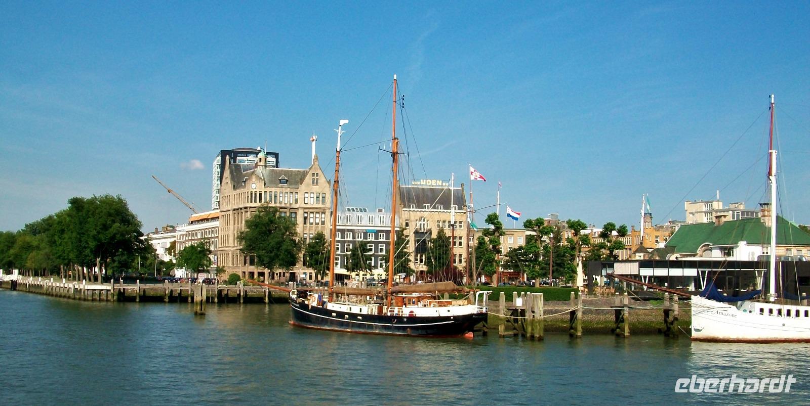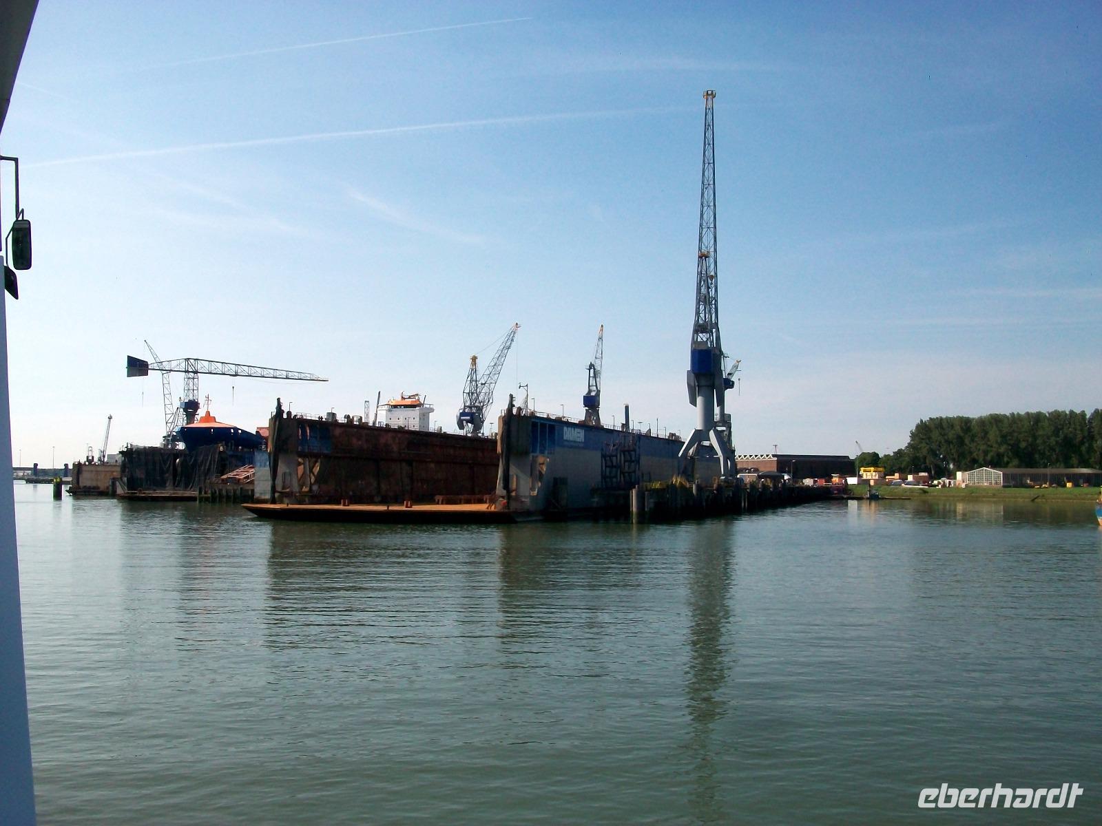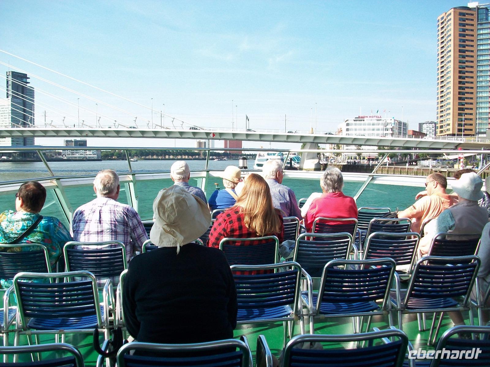 5.7.2017. Heute steht nun ein kompaktes Programm an welches uns auf einen Streich drei der wichtigsten niederländischen Städte näherbringen wird. Zuerst sind wir auf dem Weg nach Rotterdam. Es ist der bedeutendste Seehafen Europas und in seinen Ausmaßen wahrhaft gigantisch. Um diesen kennenzulernen begeben wir uns auf ein modernes Schiff und bei wiederholt schönem Wetter zieht die beeindruckende Skyline an unseren Augen vorbei. Dann fahren wir ein in das direkte Hafengelände; wir sehen die mächtigen Schiffe, die Trockendocks und schließlich den Containerhafen - einfach faszinierend!