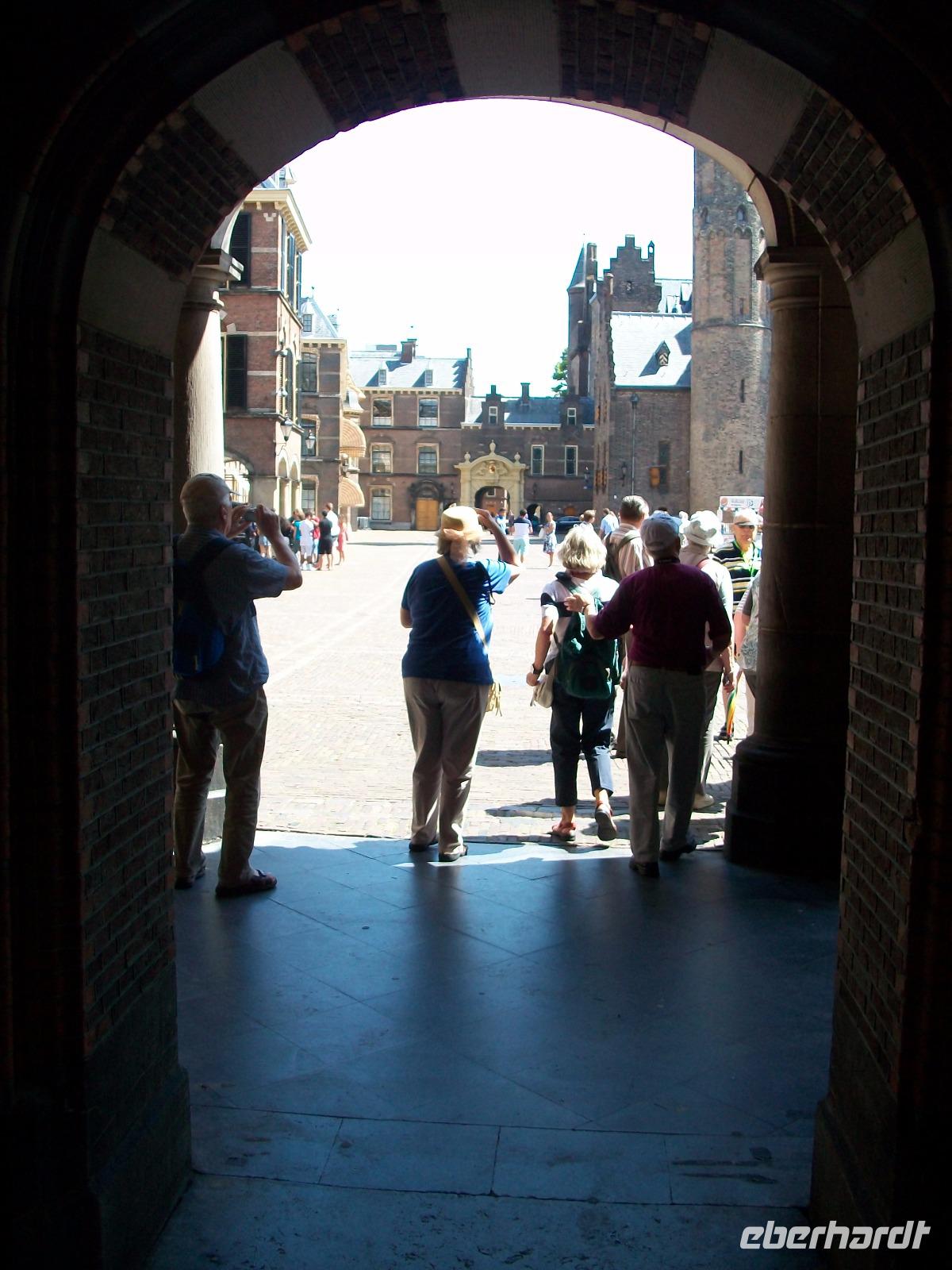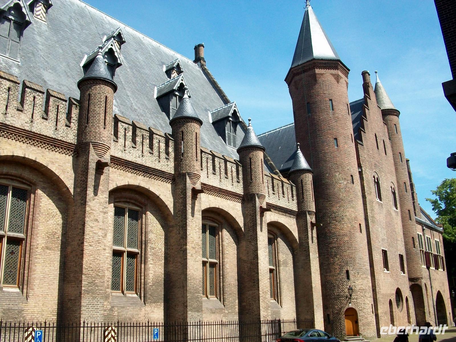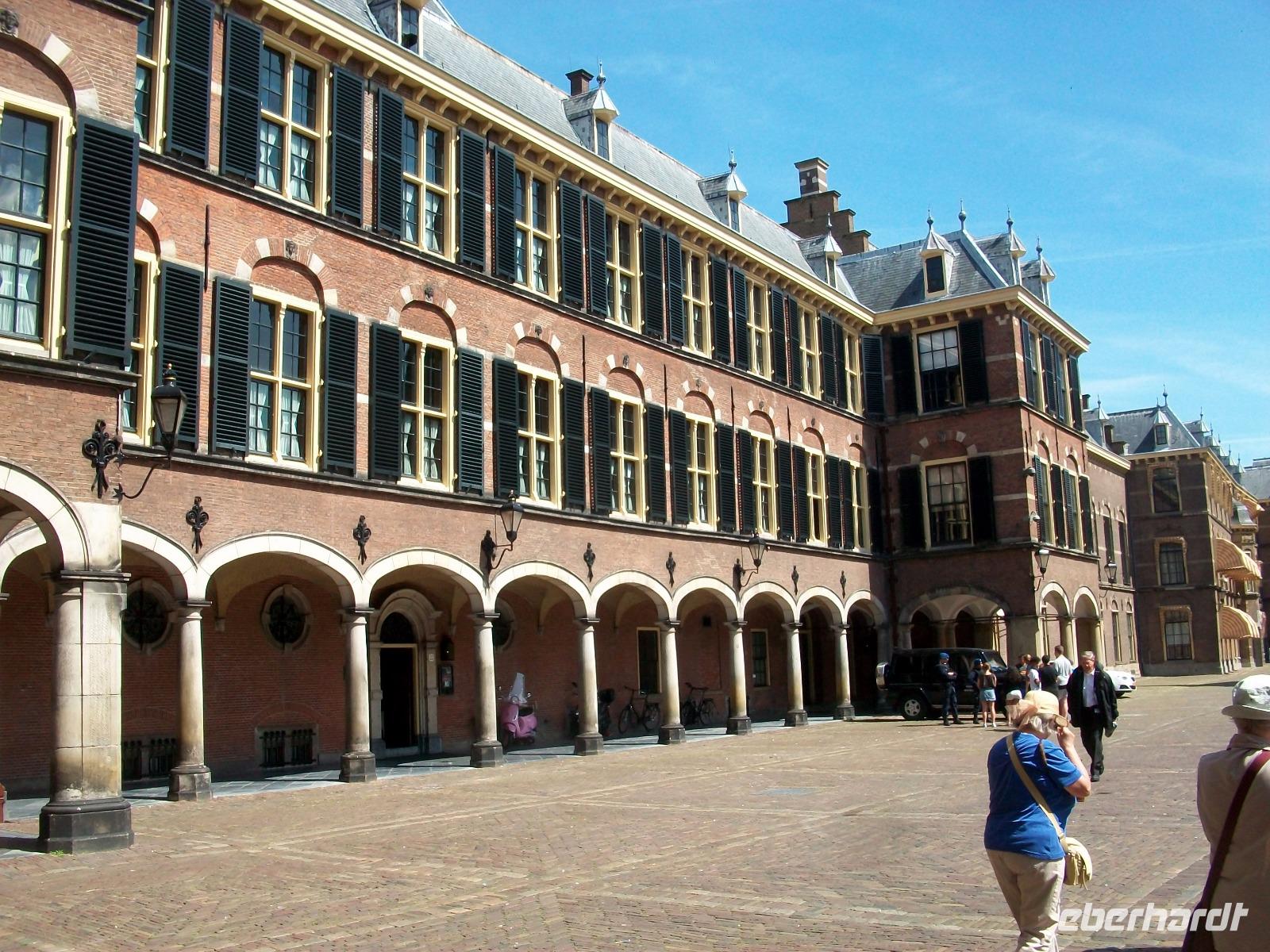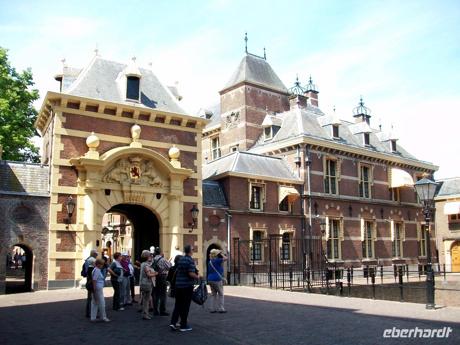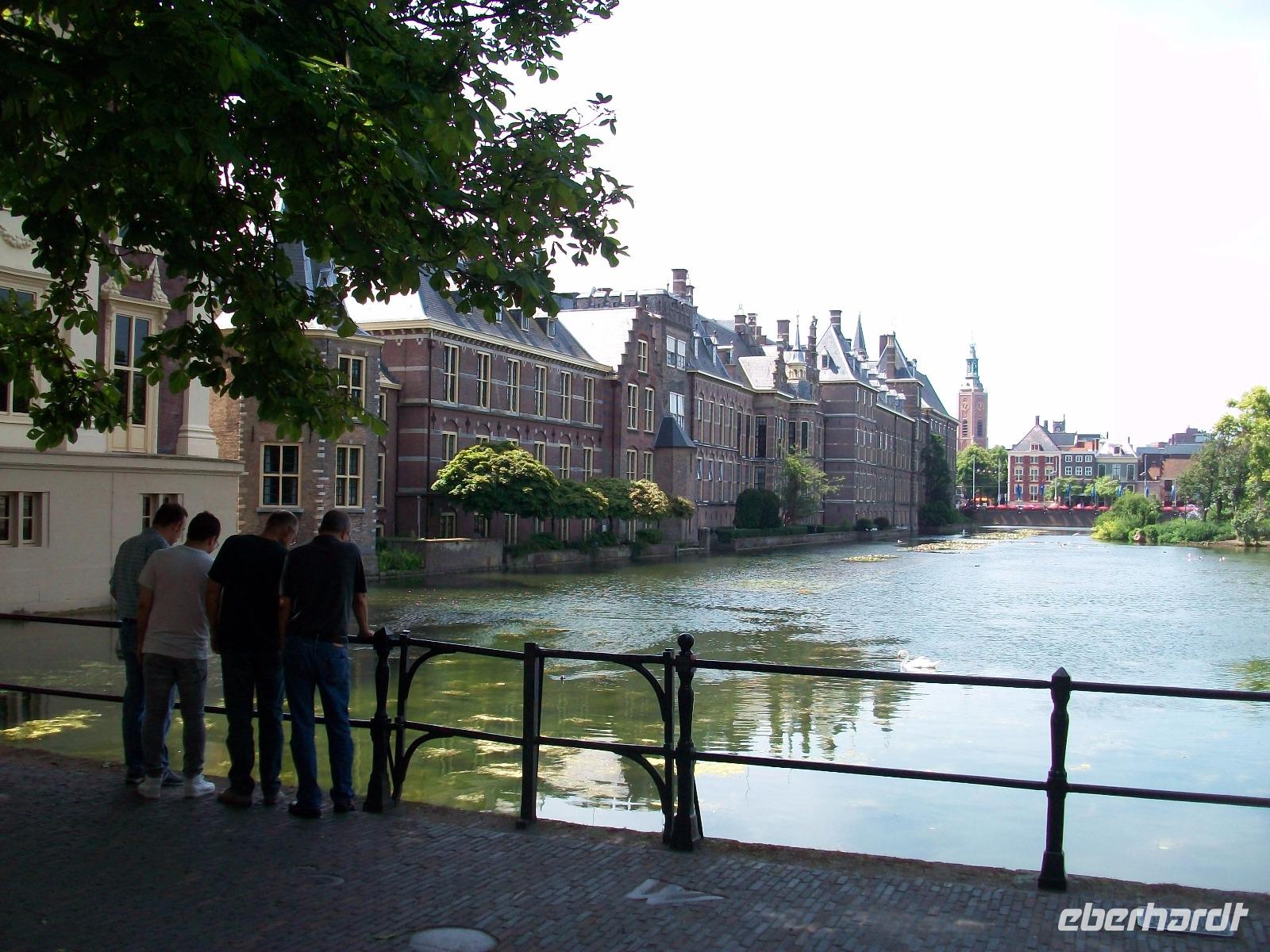 Später sind wir mit dem Bus wieder unterwegs um nach Den Haag zu gelangen. Hier wird die Politik des Landes gemacht und mit den Stadtführern, von denen wir schon erwartet werden, erschließen wir uns die Besonderheiten dieser Stadt. Besonders in Den Haag trifft die Historie mit der Moderne zusammen; hinter den altehrwürdigen Mauern des Schlosses tauchen im Hintergrund die Wolkenkratzer auf die heute das Stadtbild dominieren.
