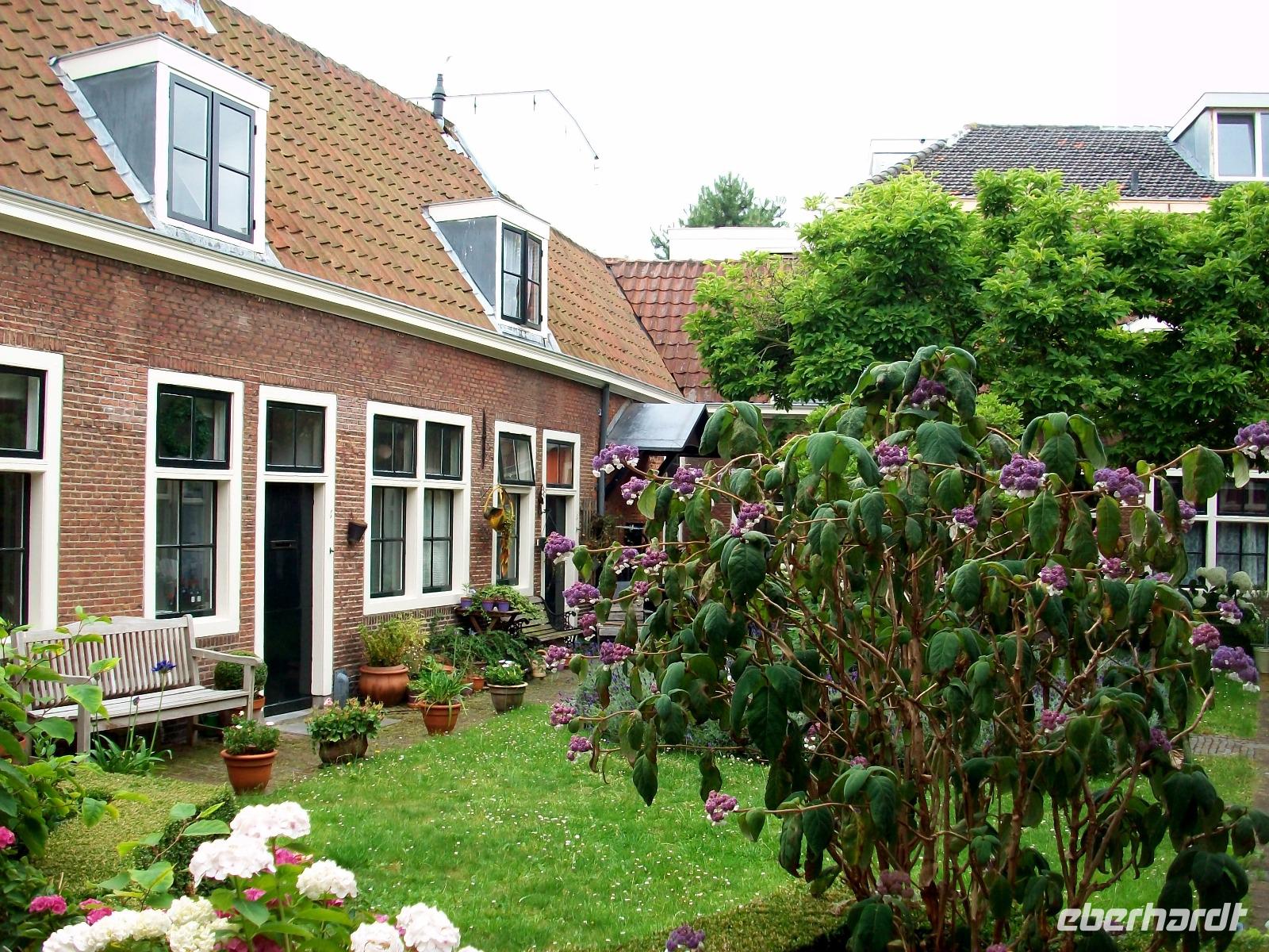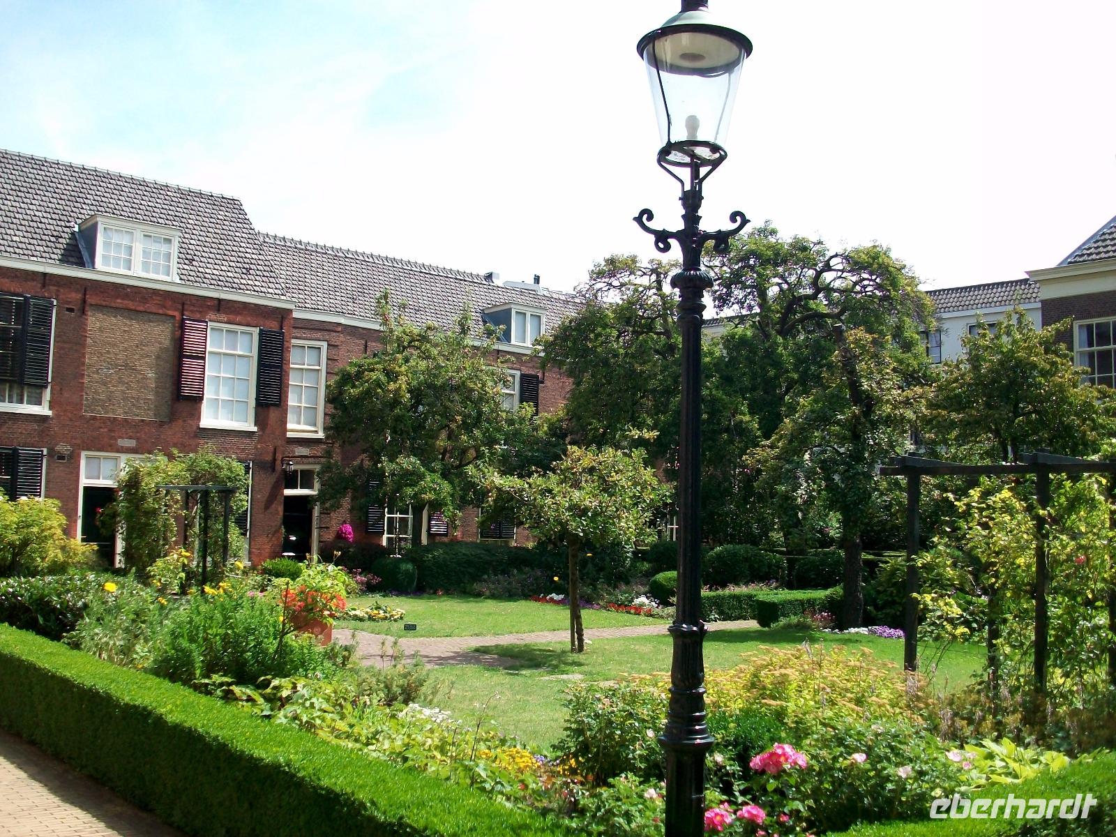Nach der Fahrt mit dem Grachtenboot werden wir schon von Cecilia erwartet, sie ist unsere Stadtführerin und wird die Reisegruppe auf recht originelle Art nun in die Geheimnisse von Amsterdam einführen. Die Jahrhunderte haben uns hier eine wechselvolle Geschichte hinterlassen und nirgendwo treffen die Gegensätze von Historie und Moderne so zusammen wie eben in Amsterdam. Auf den Straßen herrscht munteres Treiben; Fahrradfahrer klingeln um sich Platz zu schaffen nur die alten Häuser schauen diesem Trubel gelassen zu. Von den lauten Plätzen gelangen wir dann in den Beginenhof, hier herrscht himmlische Ruhe und es ist gleichermaßen ein Refugium für die gestressten Bürger dieser Stadt.