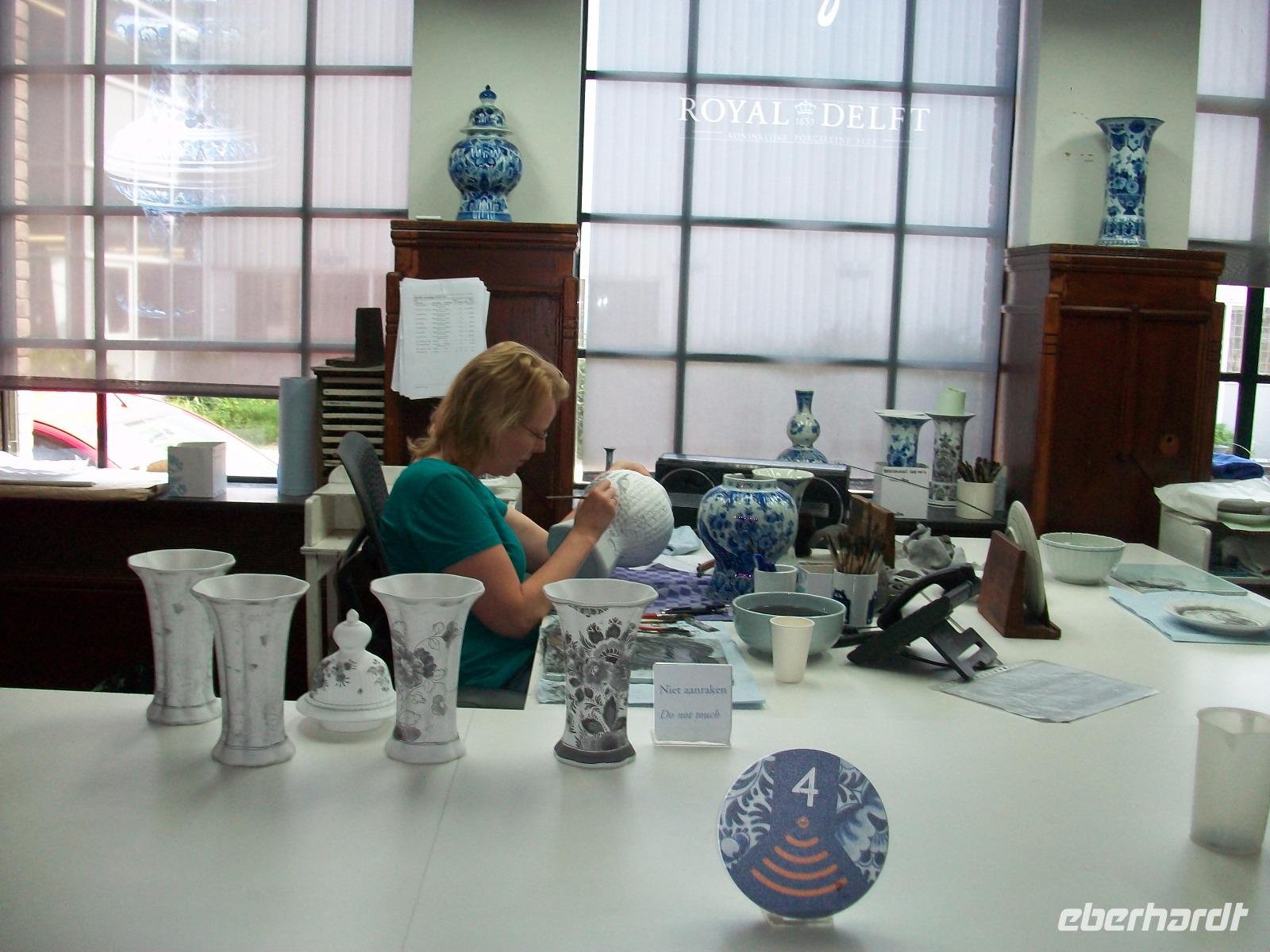 Delft ist bekannt für seine Fayencen, also Keramik, mit der typischen blauen Bemalung. Hier gibt es einige Fabriken und einer statten wir nun einen Besuch ab. Hier werden wir von einer Mitarbeiterin in die Geheimnisse dieses besonderen Produkts eingeweiht. Wir erfahren einiges über die Geschichte und später auch etwas über die Zusammensetzung des Rohmaterials. Dabei können wir in der Werkstatt auch einigen Mitarbeitern bei ihrer Arbeit über die Schulter schauen. Wieder etwas klüger geworden begeben wir uns nun noch zu einem Besuch der Altstadt von Delft, auch hier dominiert die typisch holländische Architektur die von zahlreichen Grachten umflossen wird. Noch ein letzter schöner Höhepunkt zum Schluss dieses wirklich ereignisreichen Tages.