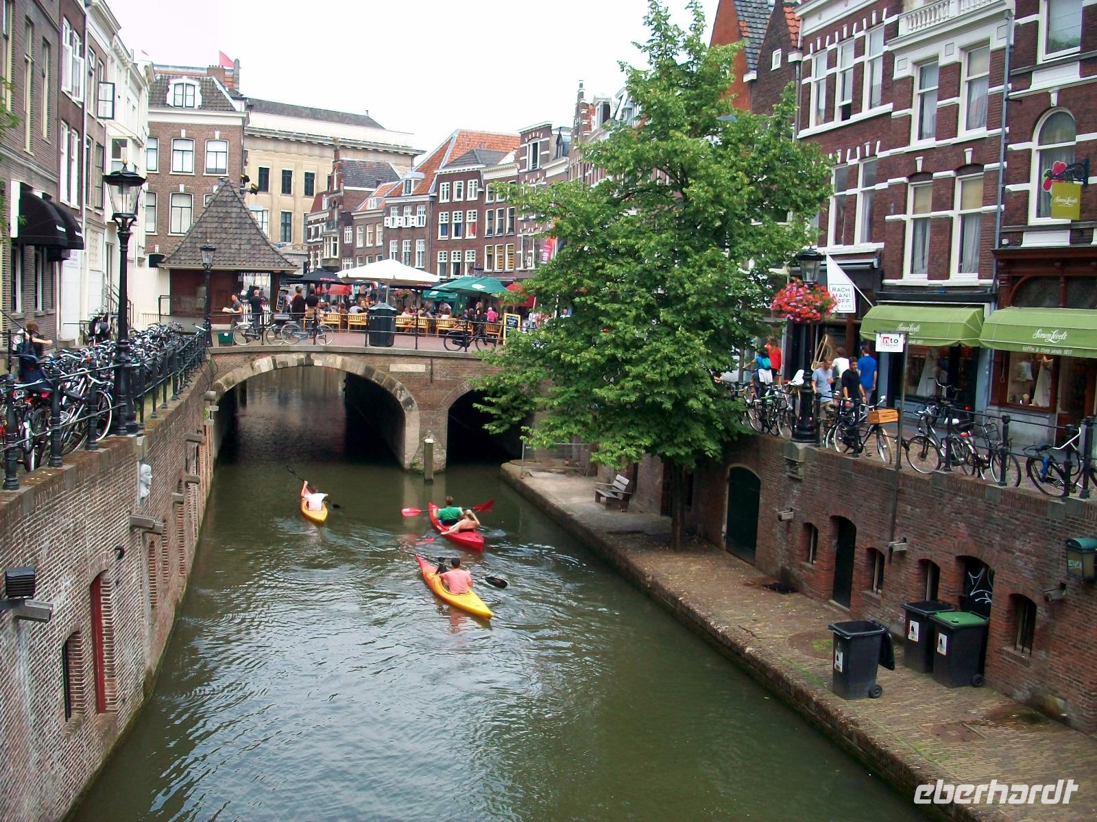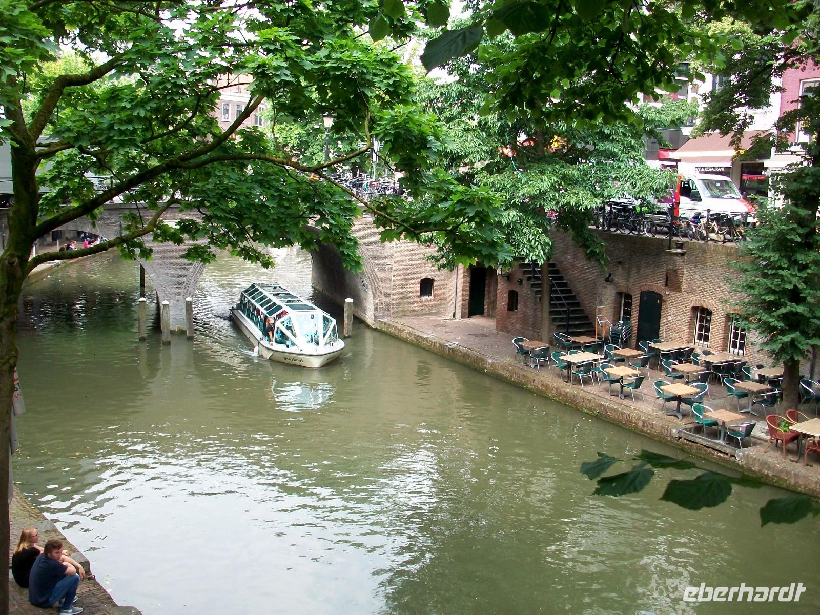 Am Nachmittag gelangen wir dann schließlich nach Utrecht. Hier erwartet uns zum Schluss der Reise nicht nur ein nochmal schönes historisches Stadtbild sondern auch ein geschichtsträchtiger Ort in dem einige wichtige Verträge unterzeichnet wurden. Vom hohen Turm der Kirche erklingt ein reizvolles Glockenspiel und gibt dem besonderen Charme dieser Stadt ein eigentümliches Gepräge. In den Gassen oder direkt unten am Wasser laden schöne Restaurants zur Einkehr ein; für die Kunstinteressierten gibt es einige Museen und der Besuch der Kirche gibt einen Eindruck des religiösen Lebens hier.