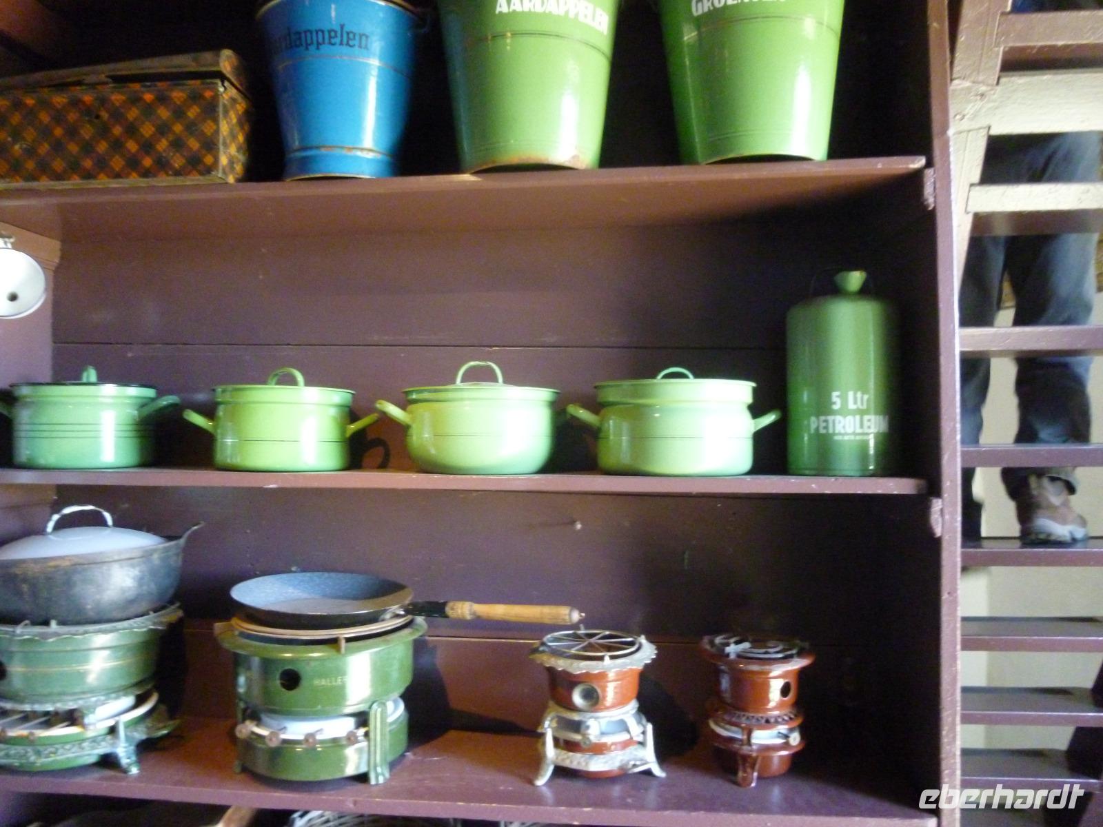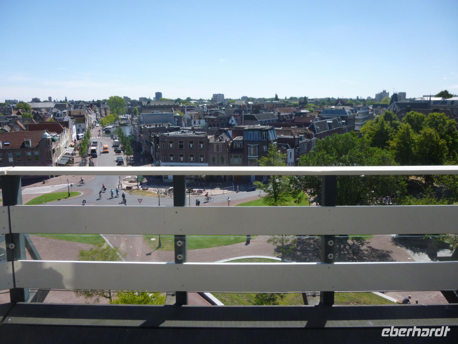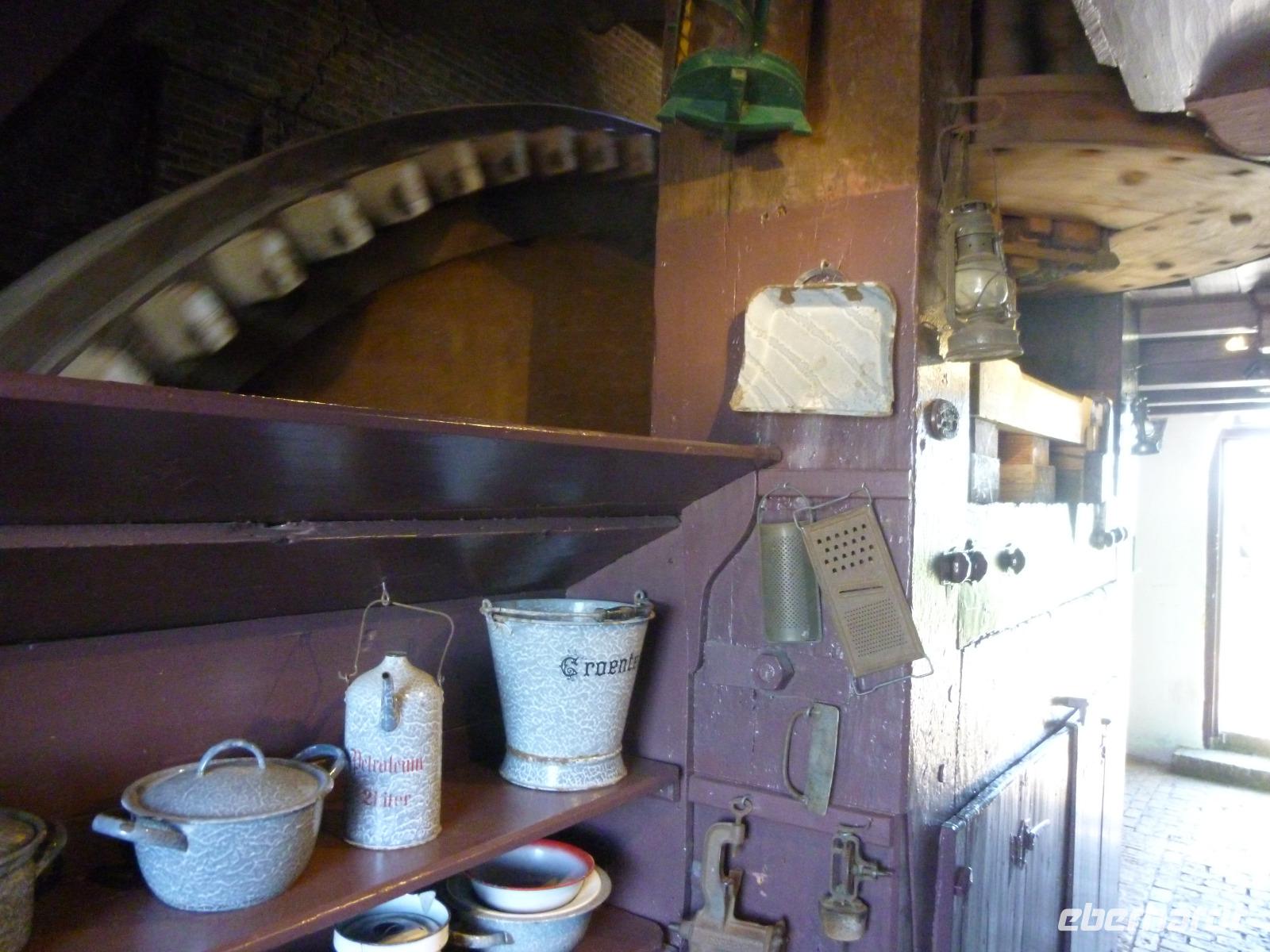 Das siebenstöckige Mühlenmuseum De Valk (5 Stockwerke begehbar über enge Stiegen) aus dem 18. Jahrhundert nahe dem Hauptbahnhof ist eines der 12 Museen in Leiden. Sie steht auf einer Anhöhe und war einst Teil der Stadtverteidigung. Seit dem 17. Jahrhundert standen auf diesem Wall 19 Windmühlen (von insgesamt 30 im Stadtgebiet). Wir sahen die komfortable Wohnungs-Einrichtung des Müllers und genossen den herlichen Ausblick auf die Stadt.
