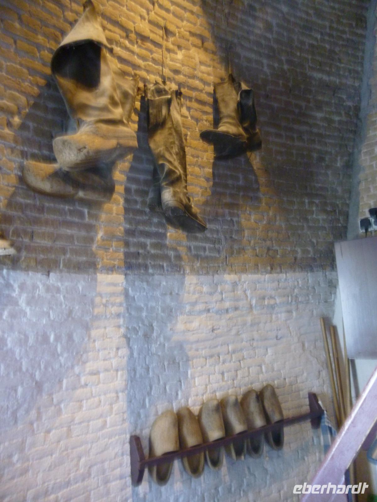 Einige der Mühlen sind in Privatbesitz, nur eine Mühle auf dem Nederwaard-Polder ist von innen zu besichtigen und wir finden, die Müllersleute hatten einen einfachen und körperlich anstrengenden Arbeitalltag. Umgeben von den beiden Flüssen Lek und Noord, die unweit in die Neue Maas zusammenfließen, befinden sich in der Umgebung wohl noch viele kleinere Wasserpump-Anlagen, wie an einem Modell zu sehen. Zusammen mit den Windmühlen ergibt sich ein typisch hollländisches Landschaftsbild!