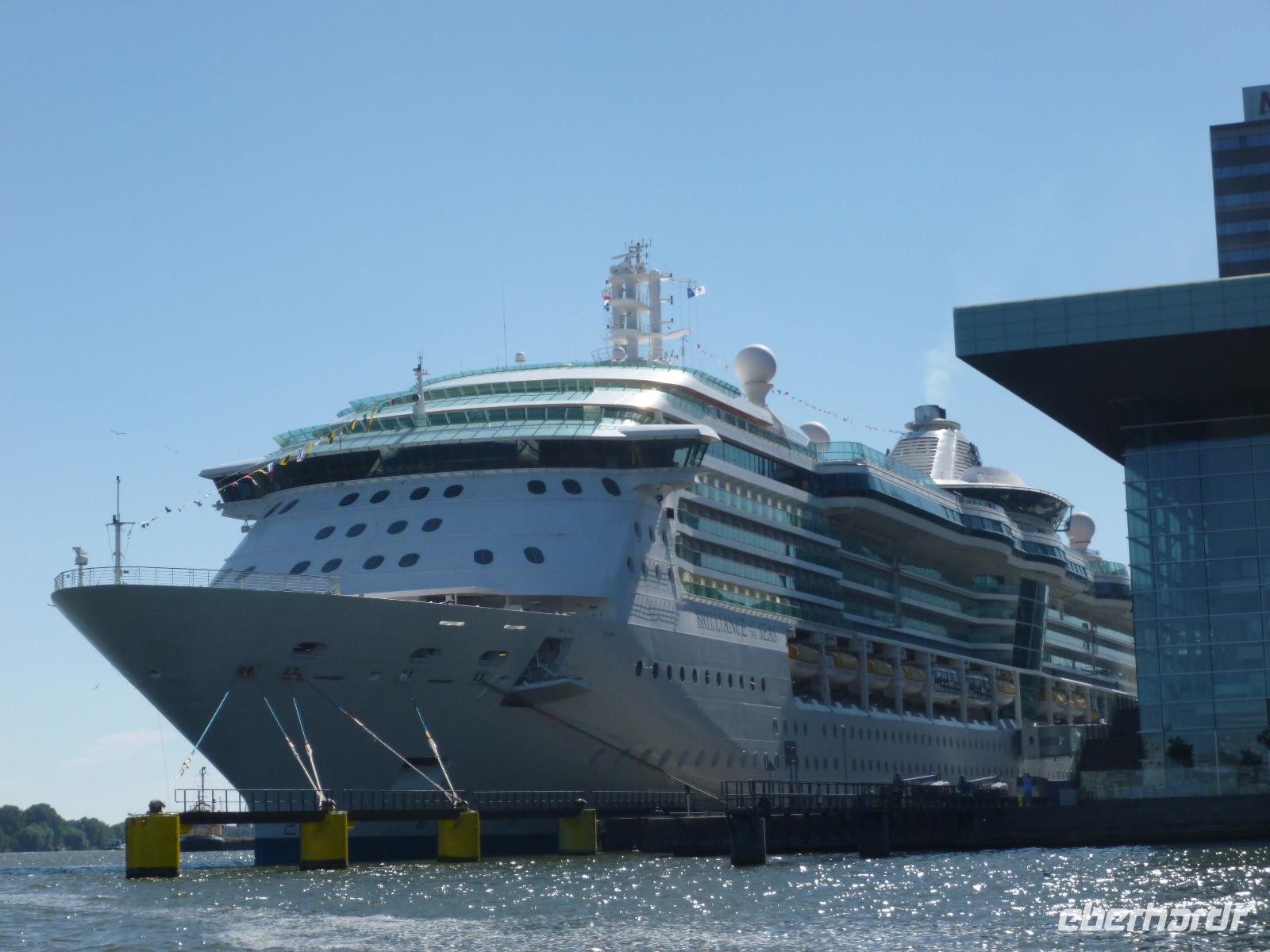 Wir sahen auf unserer Hafenrundfahrt den Maastunnel und riesige Hafenanlagen im vorderen Ausschnitt, den dieser Hafen wird ständig ausgebaut (momentan bis zur Maasvlakte 2). Es war schön, dass wir zu diesem frühen Zeitpunkt das große Schiff fast für uns allein hatten.