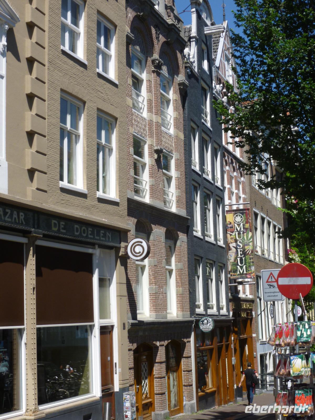 Zuerst erlebten wir das reiche Spektrum an prächtigen Bürgerhäusern besonders an der Herren-, Kaiser- und Prinzen-Gracht vom Boot aus, indem wir kundig durch den historischen UNESCO-Grachtengürtel (seit 2010) gesteuert wurden mit seinen Besonderheiten, Geschichten und Geräuschen von einem ehemaligen Kapitän der Moselschifffahrt. Dieser erste historisch-lebendige Eindruck verstärkte sich durch unsere Impressionen während des Spaziergangs mit Cecilia durch Amsterdams Innenstadt. Wir streiften gemeinsam auch auf den Spuren Rembrandts, der seine Jugend in Leiden verbrachte (dorthin wollten wir ihm noch folgen) und auch auf den Spuren jüdischer Bürger am Rande der Viertel Jordaan, De Pijp, Museums- und Spiegelquartie.
