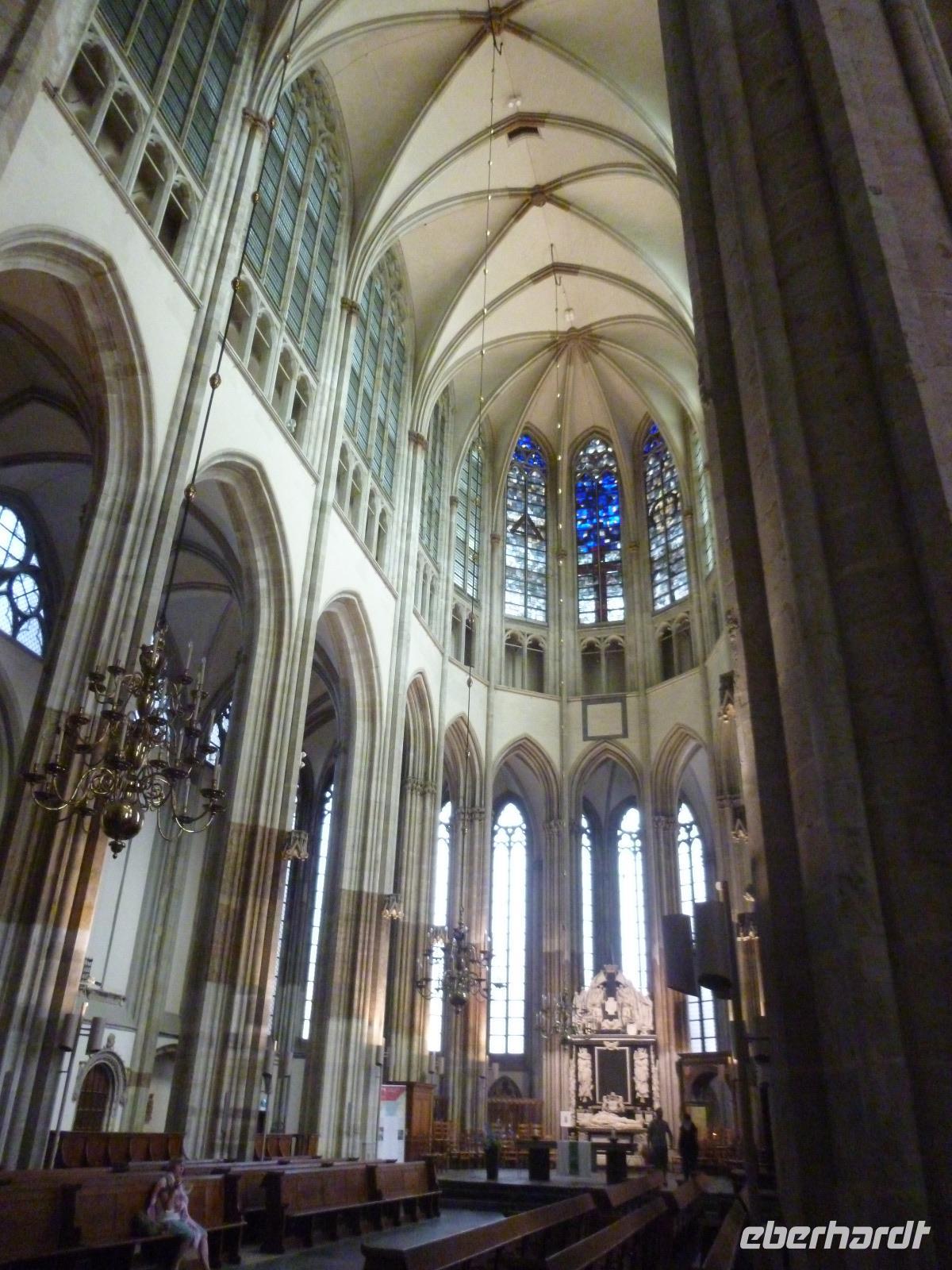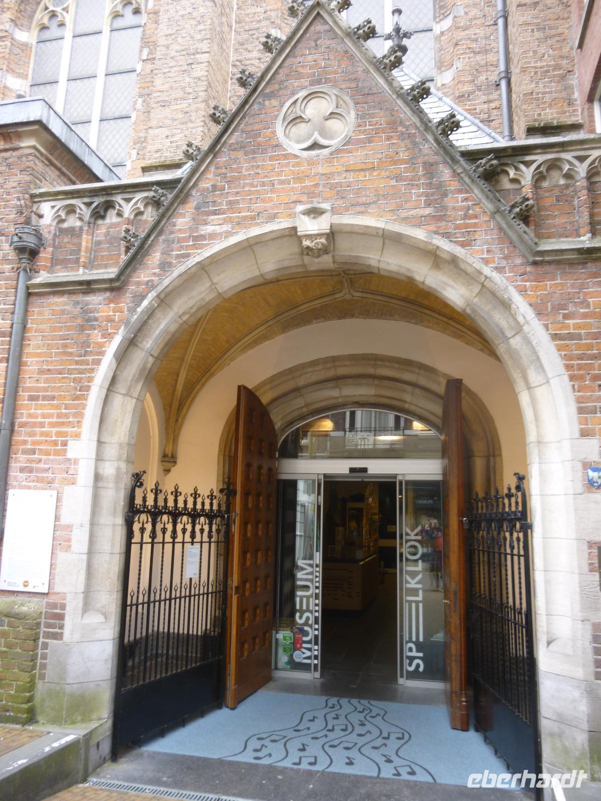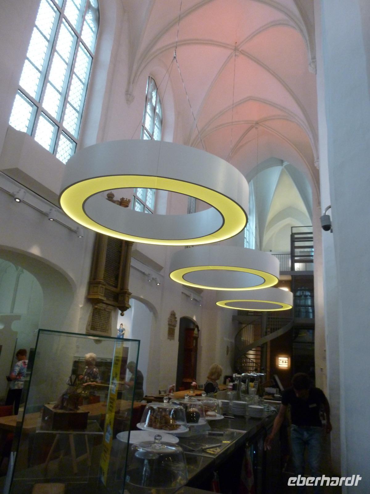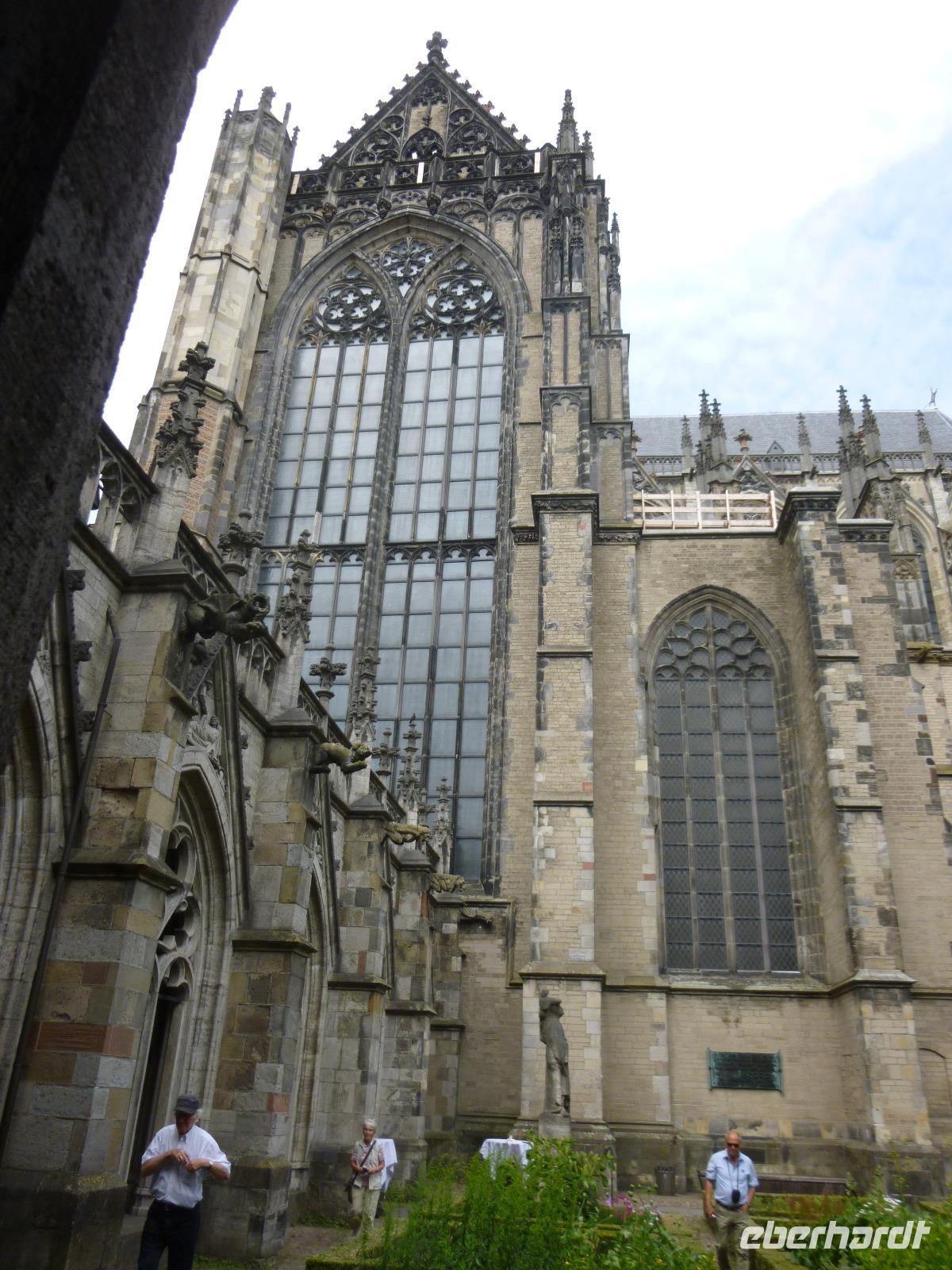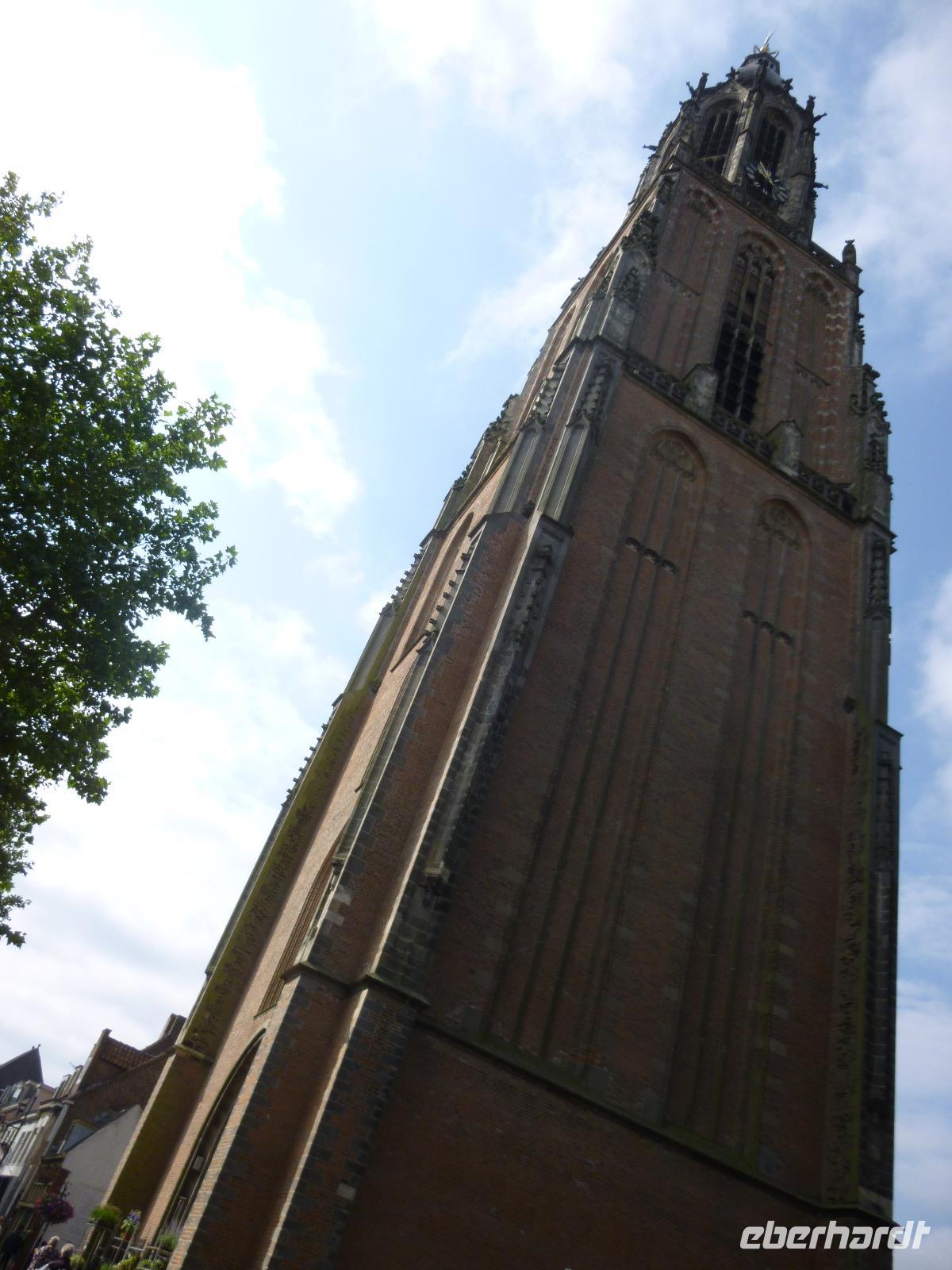 Zum Domplatz Utrecht gelangten wir über den Mariaplatz und standen staunend vor dem höchsten Kirchturm der Niederlande, nachdem wir zuvor im Amersfoorter Liebfrauenkirchturm bereits den Mittelpunkt der Niederlande entdeckt hatten. Beide sind jetzt nur noch in örtlich geführten Gruppen besteigbar und der Domturm wurde gerade saniert. Wir entdeckten auf unserem Rundgang zahlreiche ältere Strukturen auf dem Domplatzpflaster, darunter auch die des römischen Kastells. Hinter dem Dom könnte man noch in einigen Gasthauskellern die Räume der einstigen Kaiserpgfalz entdecken, denn zwei deutsche Kaiser (Konrad II. und Heinrich IV.) starben dort und ihre Eingeweide wurden im Dom bestattet (die Knochen im Dom zu Speyer).