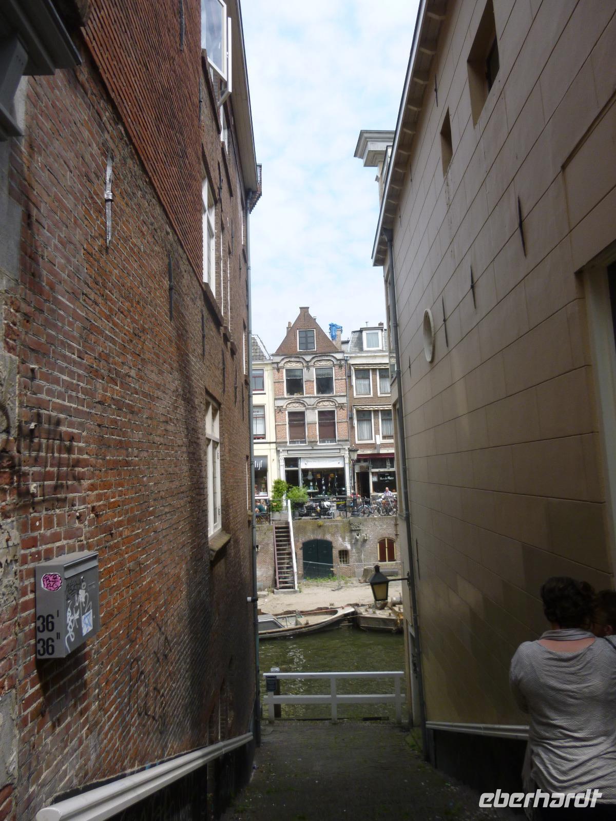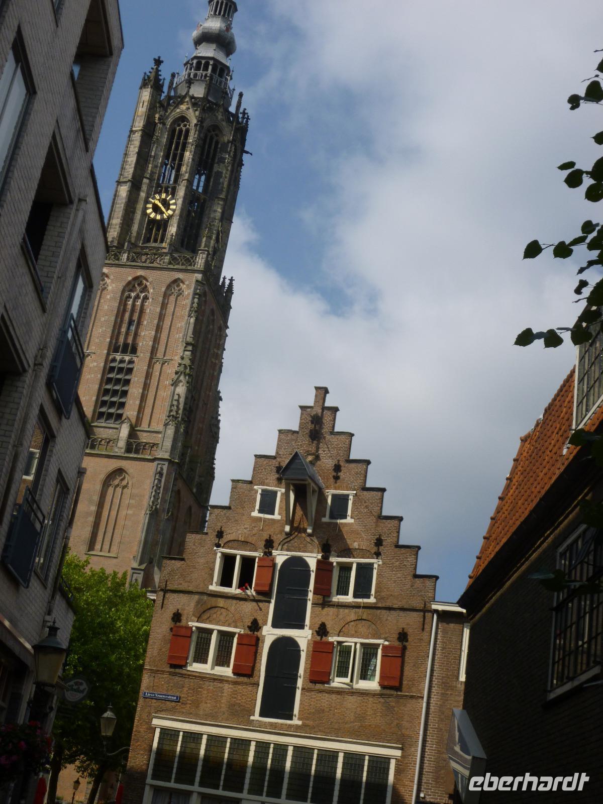Rasant wächst Amersfoort, doch die Innenstadt mit seinen 350 Gebäuden unter Denkmalschutz bietet genug Interessantes. Die Altstadt umgibt ein Grachtengürtel mit einem Ring aneinander zur Mauer verbauten Häusern (Muurhuizen) - zwischen dem fast 100 m hohen Liebfrauenkirchturm mit wunderbarem Glockenspiel aus über 47 Glocken und der gotischen Hauptkirche St. Joris (Georgskirche 13.-16. Jahrhundert) erstreckt sich die Innenstadt mit engen Gässchen und lauschigen Plätzen. Einer der schönsten ist der einstige Standort der durch eine Pulverexplosion im 18. Jh. zerstörten Liebfrauenkirche. Dort findet der freitägliche Blumenmarkt statt, den wir ausgiebig durchstöberten und einige von uns kundig beraten fündig wurden. Wer mochte spazierte mit Grit über den Hofplatz zu Hauptkirche, ältestem Stadttor und Mauerhäuschen, dann ging es weiter nach Utrecht.