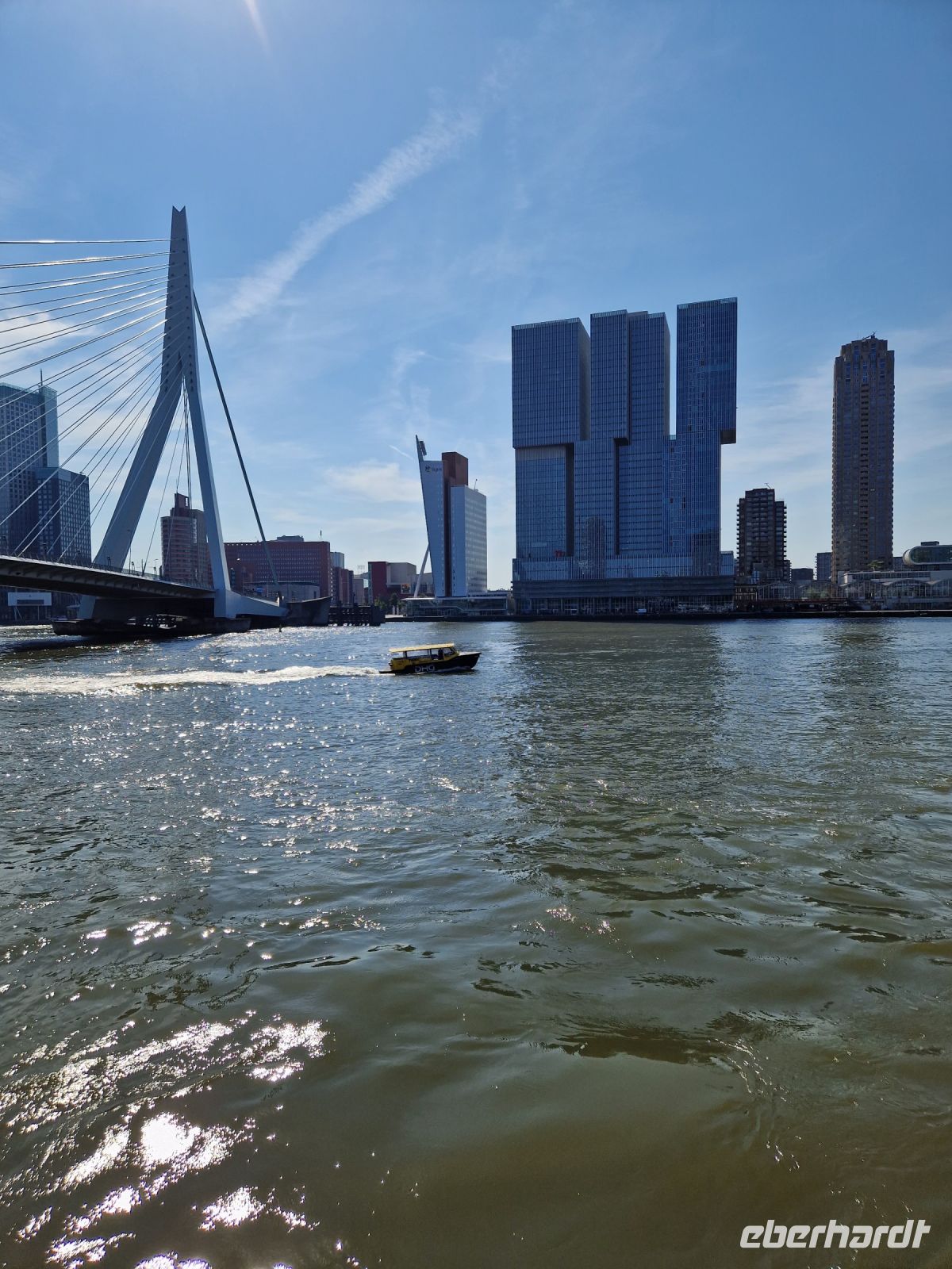Nach einem reichhaltigen und sehr guten Frühstück sind wir bei strahlendem Sonnenschein von unserem Hotel zum Hafen nach Rotterdam gefahren und sind dort gleich auf unserem Rundfahrtschiff eingestiegen. In einer 75-minütigen Hafenrundfahrt wurde uns ausführlich der Rotterdamer Hafen gezeigt und erklärt, man konnte ein bisschen den Duft der großen weiten Seefahrerwelt schnuppern.