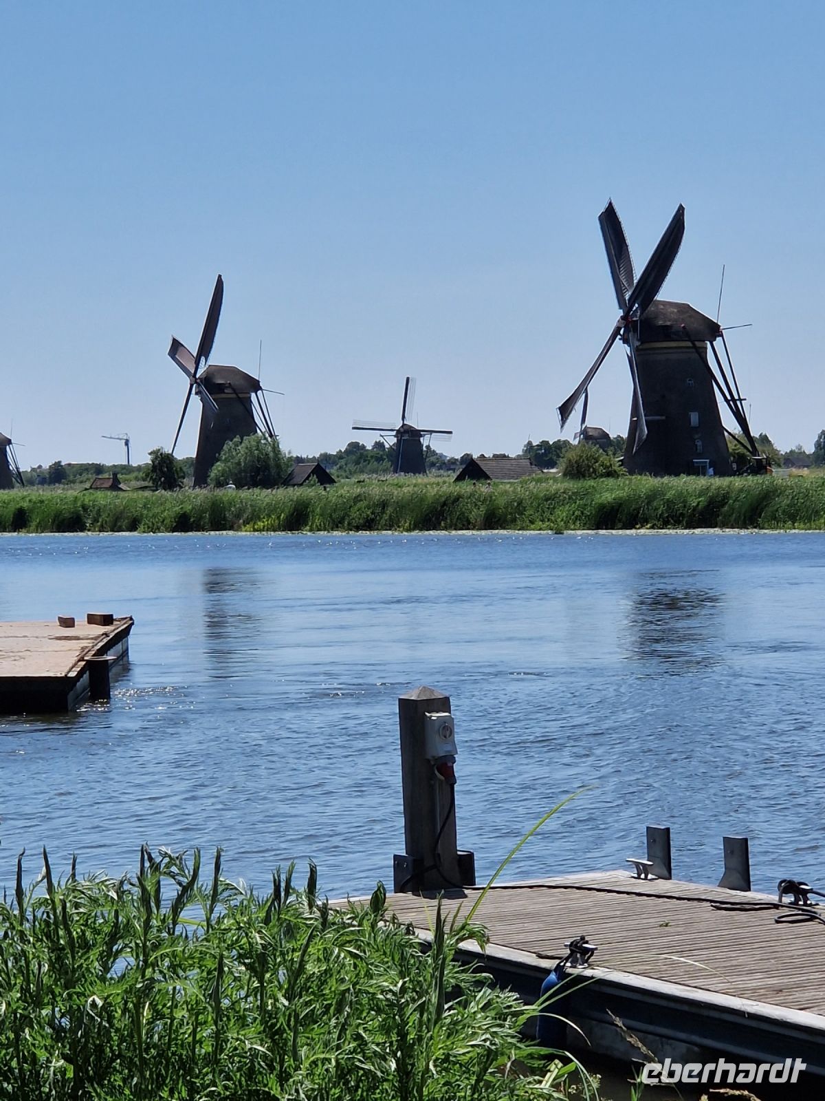Nach einstündiger Fahrt haben wir einen weiteren Höhepunkt unserer Reise erreicht, das UNESCO-Weltkulturerbe Kinderdijk, ein Windmühlenpark mit 19 Mühlen aus dem 18. Jahrhundert, davon noch drei in Betrieb sind.