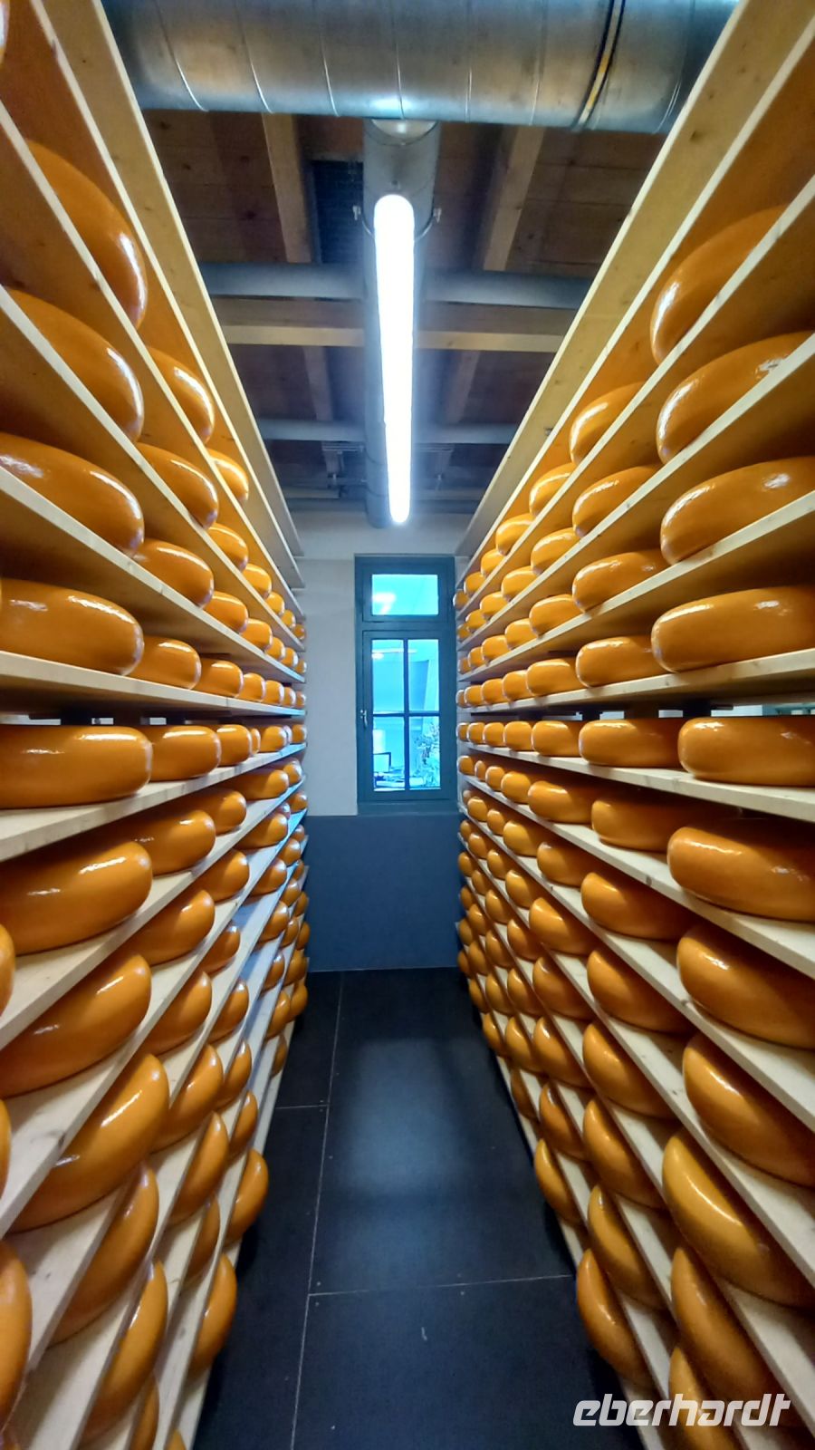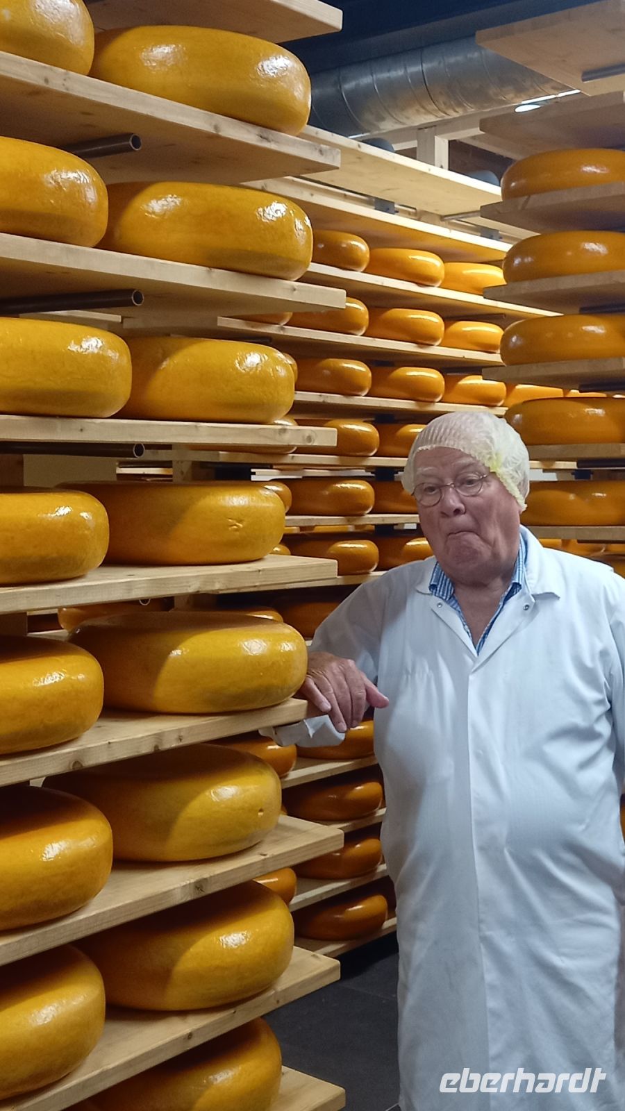 Nach einer kleinen Mittagspause ging es nun weiter in die reizvolle Kleinstadt Woerden, in der wir uns die Käseproduktion und deren Lagerung anschauen konnten. Wir erhielten eine interessante Führung durch das große, kühle Käselager und in einem kleinen Film wurde uns die Herstellung des Käses anschaulich erklärt. Jeder, der wollte, konnte mal einen 12 kg schweren Käselaib anheben und traditionell wenden. Natürlich bekamen wir nach der Führung auch reichlich Käse zum Verkosten.