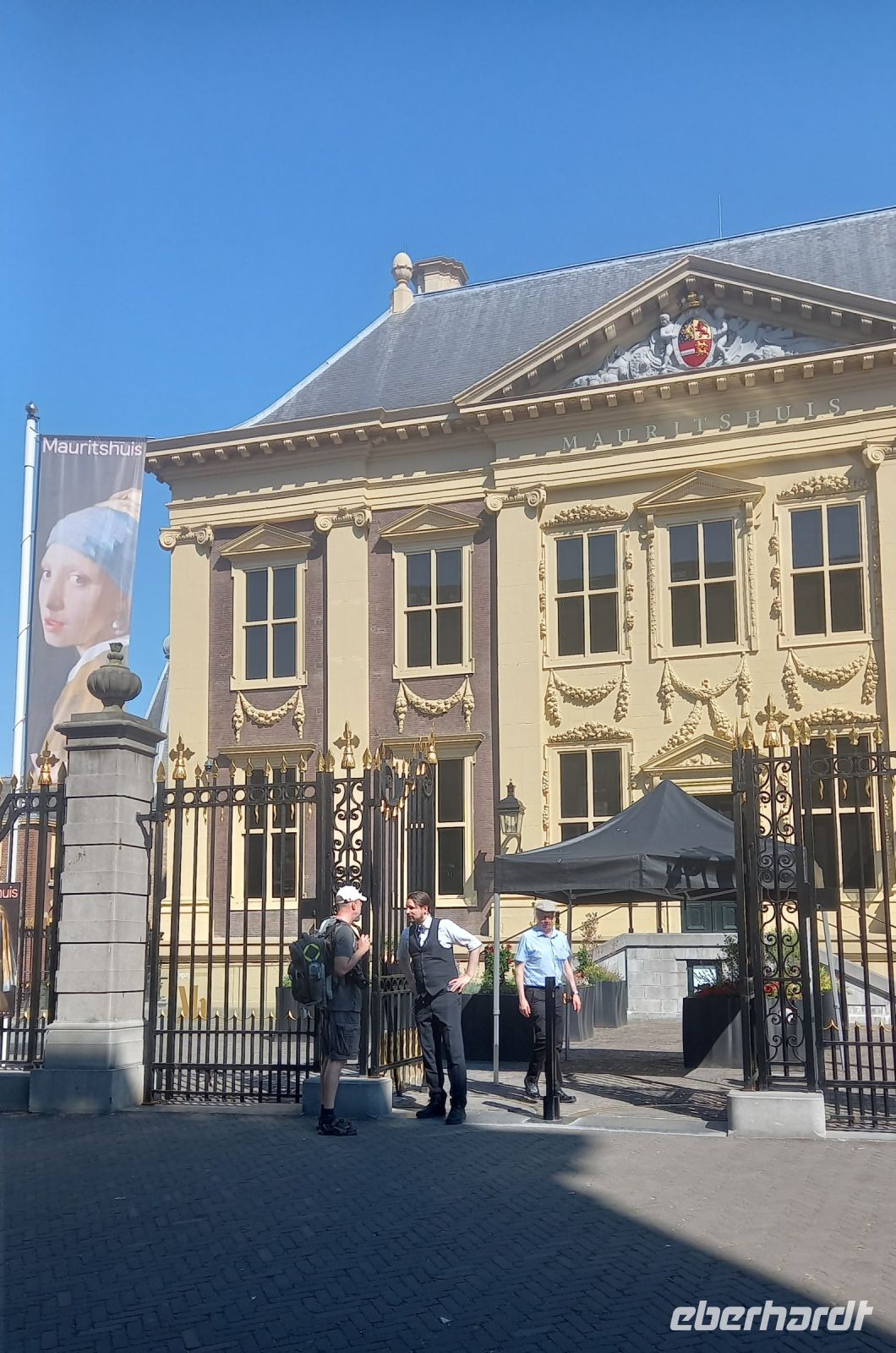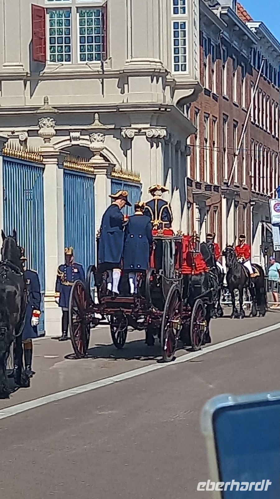 Wir trafen zu Beginn wieder unsere mitreißende Stadtführerin Mathilde, die uns in einem 2-stündigen Stadtrundgang das mondäne und weltoffene Den Haag präsentierte. Wir konnten den mittelalterlichen Binnenhof bestaunen, der als Sitz des niederländischen Parlaments fungiert. Ebenso genossen wir den prachtvollen Anblick des Königsschlosses und hatten das Glück, dass Alexander-Wilhelm gerade vorm Palast in eine Kutsche stieg, deren Abfahrt mit einer Musikparade begleitet wurde.