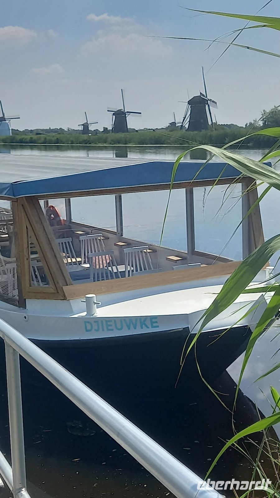 In einer kleinen Filmvorführung wurde uns die Geschichte und die Funktionsweise der Windmühlen nähergebracht. Gleich anschließend stiegen wir auf ein kleines, überdachtes Boot und schipperten vorbei an den wichtigsten und größten Mühlen. Es war eine sehr beschauliche und entschleunigende Fahrt, man hörte nur ganz leise den Motor des Bootes und war sonst nur von Natur und Vogelgezwitscher umgeben.