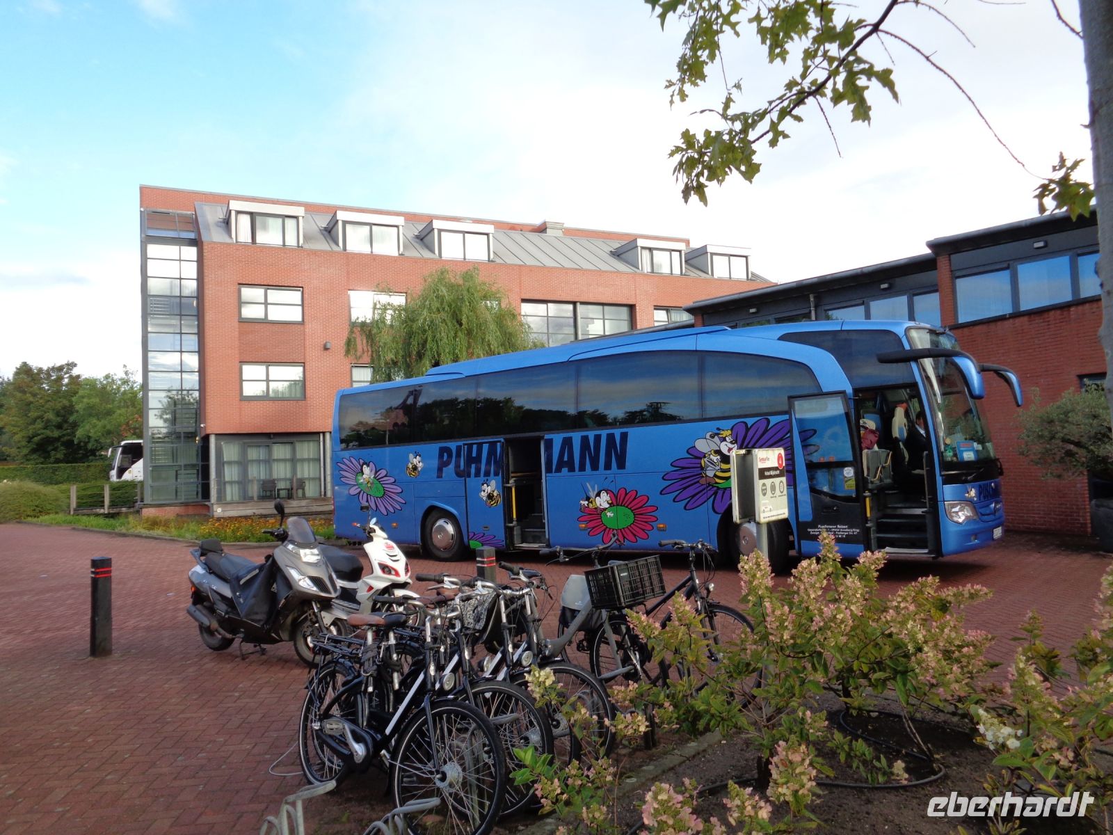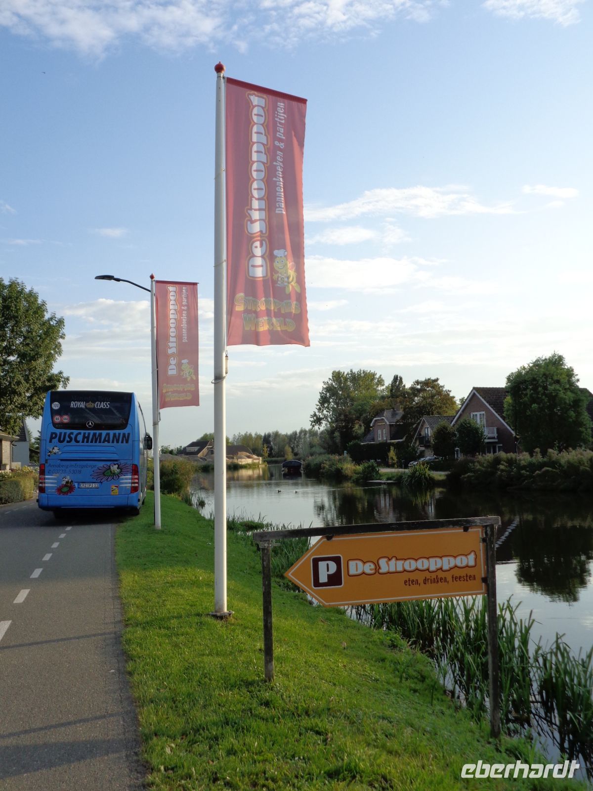 Kurz nach sechs Uhr morgens beginnt unsere Reise in die Niederlande im blauen Puschmann-Reisebus mit dem sympathisch bunten Blumen-und Bienen-Design. Neun Gäste haben so früh schon den Weg zum Flughafen Dresden gefunden. Matthias fährt uns bis zur ersten Pause nach Teufelstal, wo er durch Ingo, unseren Busfahrer für die Sternfahrt, abgelöst wird. Unterwegs halten wir in Chemnitz und Meerane. Später noch am Flughafen in Erfurt und kurz vor dem Mittagsrast am Flughafen in Paderborn. Dann ist unsere 28-köpfige Gruppe bis auf die Gäste, die im eigenen Auto anreisen, vollzählig. Über die A44 fahren wir ins Ruhrgebiet und suchen uns dort die beste Strecke um möglichst schnell durch den stockenden Feierabendverkehr zu kommen. Alle Wege führen schließlich auf die A3 in Richtung deutsch-niederländische Grenze. Wir fahren dann über die A12 vorbei an Arnheim nach Utrecht, dem größten Verkehrsknotenpunkt der Niederlande. Dort biegen wir auf die A2 ab und folgen dem Amsterdam-Rhein-Kanal nach Norden bis zu den Vinkeveensen „Pfützen“. Die Straße führt uns über einen Deich direkt durch die wasserreiche Seenlandschaft. Kurz dahinter erreichen wir unser erstes Hotel „Mijdrecht Marickenland“, gelegen im Drei-Provinzen-Eck zwischen Utrecht, Nord- und Südholland. Von hier aus werden wir in den nächsten fünf Tagen die Umgebung erkunden.