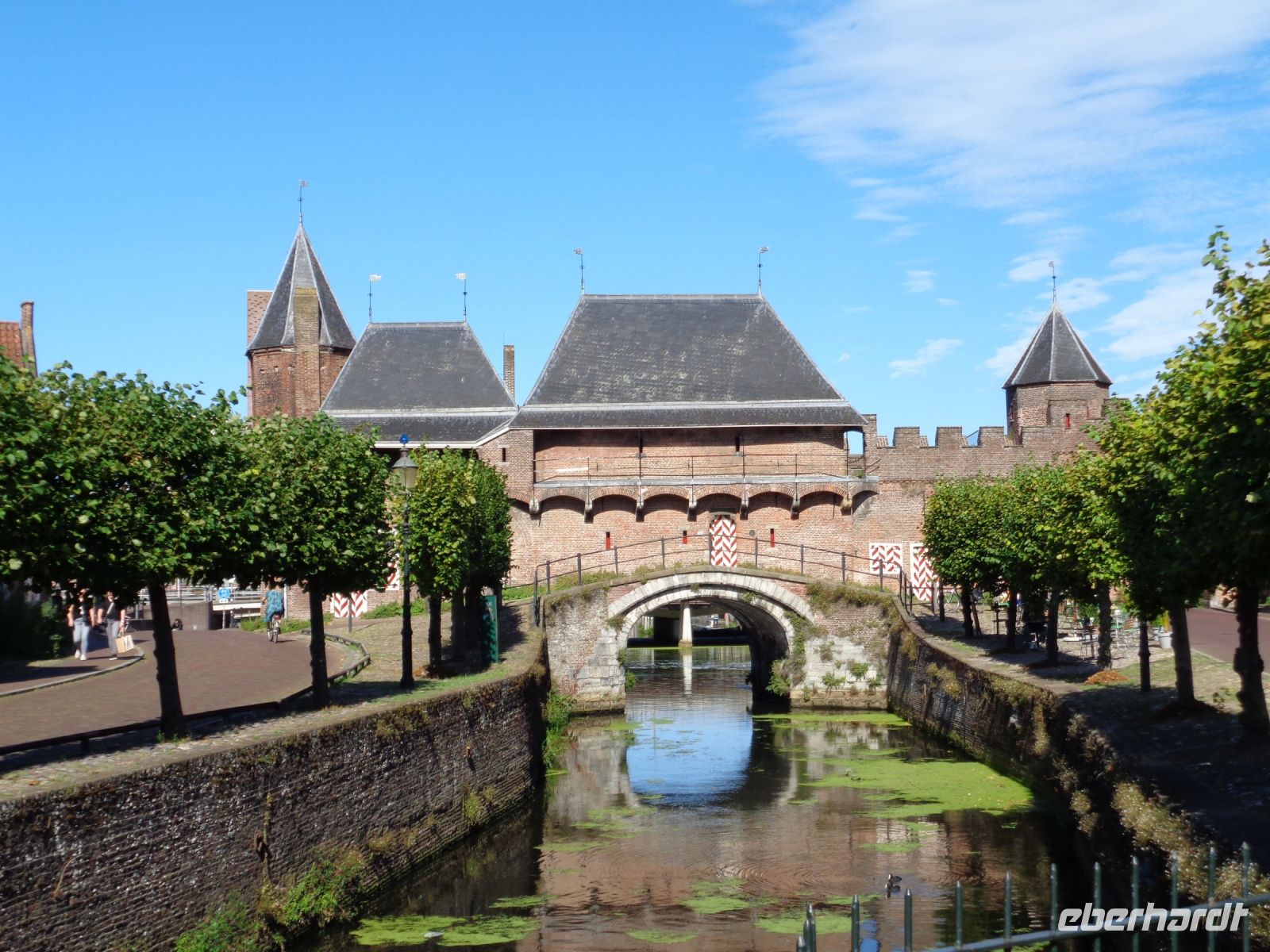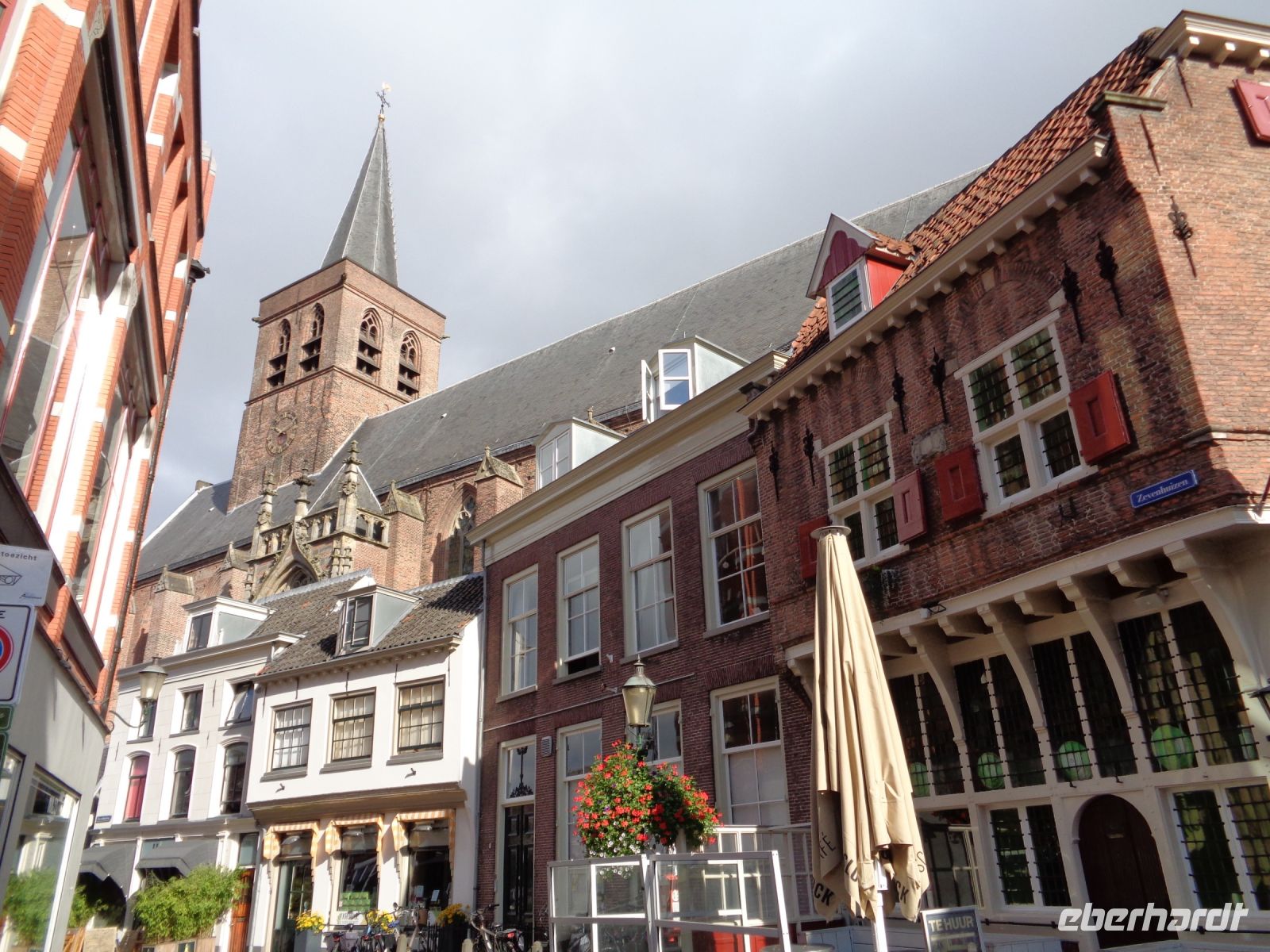 Sonntagmorgen, halb zehn - wir machen Halt in Amersfoort. Es scheint als wären nur wir unterwegs in der Geburtsstadt Piet Mondrians und die Katze, die sich träge auf dem Pflaster der „krummen Straße“ räkelt. Aber das muss ein Trugschluss sein, denn die Karten für die Grachtenfahrt um 11 Uhr sind bereits ausverkauft bevor die Kasse offiziell geöffnet hat. Also gehen wir zu Fuß entlang den aus Steinen der alten Stadtmauer an gleicher Stelle neu errichteten „Mauer-Häusern“, vorbei am Marktplatz und der St.-Joris-Kirche bis zur „Koppelpoort“, einem mittelalterlichen Stadttor in der neuen Stadtmauer mit zwei Durchgängen, einem für Schiffe und einem für Wagen. Unser Rundgang endet am fast hundert Meter hohen Liebfrauen-Turm, in dem sich zwei gleichzeitig spielbare Glockenspiele befinden, auf denen die Absolventen der niederländischen Carilloneurs-Schulen ihre Examen ablegen.
