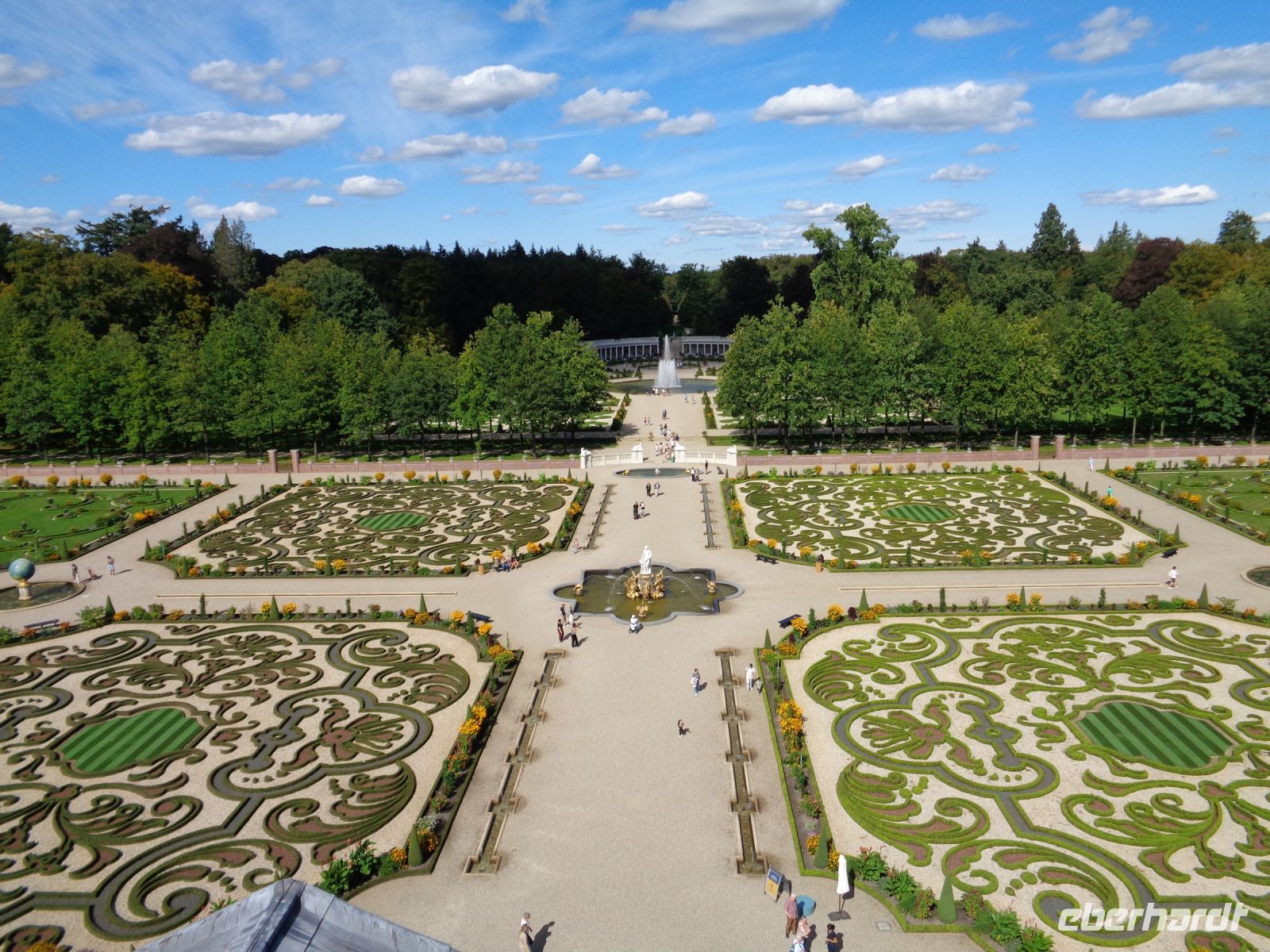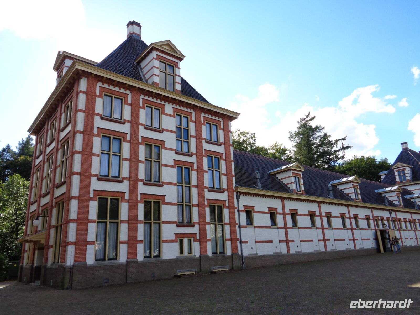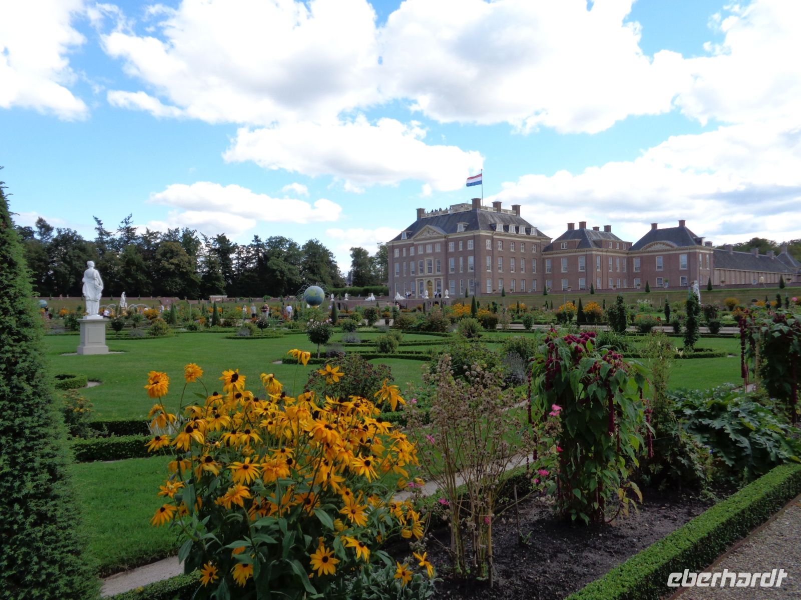 Am Mittag fahren wir weiter zum königlichen Palast „Het Loo“ bei Apeldoorn in der Provinz Gelderland. Dieses von Willem III. van Oranje, im 17. Jh. erbaute Barockschloss diente der königlichen Familie lange Zeit als Sommerresidenz, bevor es in den 1970-er Jahre zu einem Museum umfunktioniert wurde. Während einer Audiotour durch die herrschaftlichen Wohngemächer erfahren wir im Ostflügel etwas über das Leben des Bauherrn sowie dessen Frau Mary II. Stuart, Königin von England und Schottland, und im Westflügel etwas aus dem Leben von Königin Wilhelmina, die in der ersten Hälfte des 20 Jh. über die Geschicke des niederländischen Könighauses wachte und 1962 im Palast verstorben war. Wir genießen den Blick von der Dachterrasse auf den wiederangelegten französischen Garten Willem des III. und schlendern im Anschluss gemütlich über die symmetrisch verlaufenden Wege zum Springbrunnen mit seiner 13 Meter hohen Fontäne.