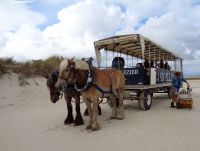 Heute befährt das erste Mal überhaupt eine Reisegruppe von Eberhardt-Travel mit dem Bus die Insel Texel. Abenteuer ist angesagt und dafür müssen wir früh aufstehen. Vorbei am Flughafen Schiphol geht die Fahrt unter der Ij hindurch, entlang des Nordholland-Kanals einmal quer durch die Provinz bis nach Den Helder, von wo aus uns die Texel-Fähre auf die größte und westlichste der westfriesischen Inseln bringt. Nur 25 Minuten dauert die Überfahrt und man schafft es kaum, alles an Bord auf einmal zu erkunden: Das Panoramadeck, die Restauration, den Souvenir-Shop und natürlich die Toiletten. Durch welchen Aufgang war ich hochgekommen und auf welchem Parkdeck stand nur schon wieder der Bus? Aber alle sind da und wir können die Fähre in ‘t Horntje verlassen, bevor der Verkehr nach Den Helder an Bord gewinkt wird. Ingo fährt uns an den Deich nach Osterend, von wo aus wir einen Blick auf das Wattenmeer werfen können. Dann geht’s im selben Dorf zur Texel Destillerie und Brauerei. Braumeister Nico informiert über die Braukunst sowie die Herstellung von Spirituosen und im Anschluss gibt es Gin, Likör und Bier zu probieren. Weiter geht die Fahrt nach De Koog, wo wir uns am Strand oder in der Einkaufstrasse eine kurze Mittagspause gönnen. Frisch gestärkt brechen wir auf zur Planwagenfahrt durch das Weideland des letzen Dünenbauers Texels. Während die belgischen Zugpferde ganze Arbeit leisten, erzählt uns Kutscher Pieter einige Anekdoten über die Insel, ihre Fauna und Flora. Im Naturschutzgebiet „De Slufter“ mit seinen Salzwiesen und Naturstränden offerieren uns Pieter und Miriam Kaffee, Tee und dazu den obligaten einen Keks, von der Insel natürlich. Einen letzten Rum-Orange-Likör und wir steigen vom Wagen ab, gehen über die Düne und setzen uns in den Bus. Jetzt kann es regnen. Auf der Fähre finden wir uns schon besser zurecht. Ein Grund wiederzukommen. Die Texel-Premiere ist gelungen. Der Sonne sei Dank.