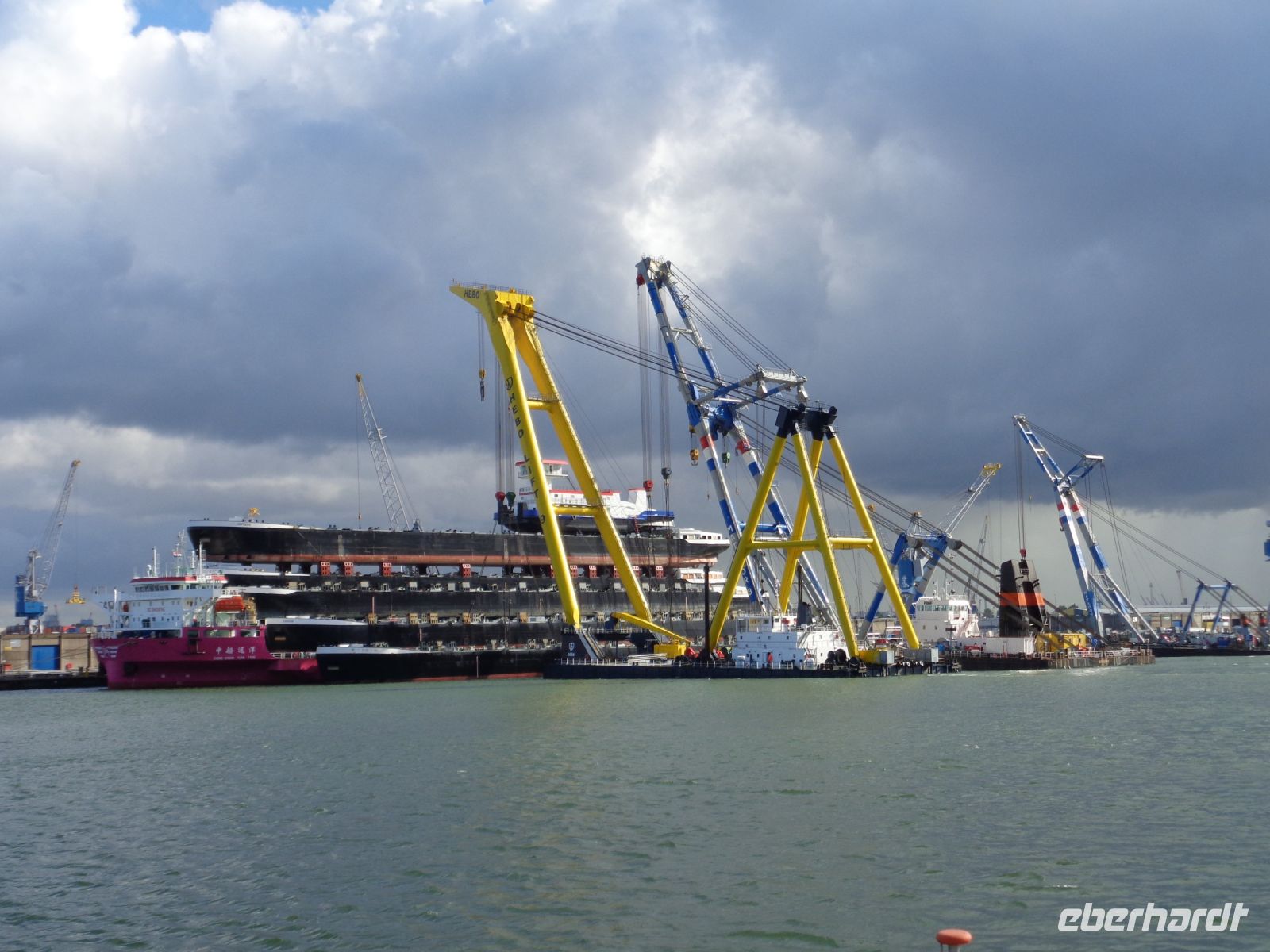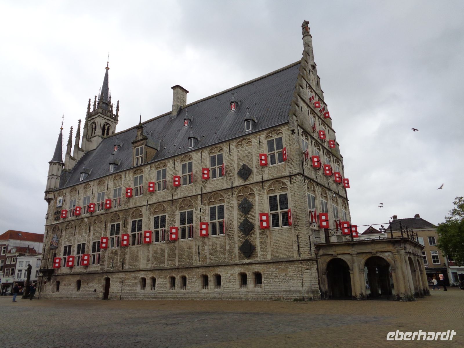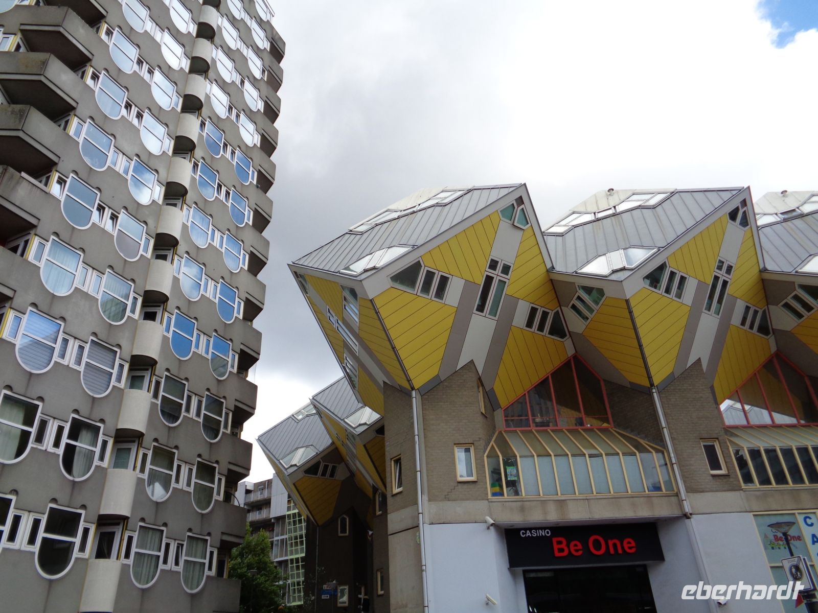 An Gouda vorbei geht es heute nach Rotterdam, denn die traditionsreiche Hafenrundfahrt durch den größten europäischen Seehafen darf auch bei dieser Reise nicht fehlen. Seit über 100 Jahren zeigt die Firma „Spido“ mit ihren Schiffen Touristen und Einheimischen auf verschiedenen Touren den sich ständig verändernden Hafen entlang der Nieuwe Maas. Wir sehen die Jenever-Brennerei von Schiedam, eines deren Produkte wir bereits nach dem sättigenden Pfannkuchen gekostet haben, die Kühlhäuser im Eemhaven und die Containerschiffe am Quai des Prinsess-Margriet-Hafens. Das auf mobile Schwimmkräne spezialisierte Wasserbauunternehmen HEBO löscht aus China angekommene Binnenschiffkaskos. Der Handel scheint wieder in Schwung gekommen zu sein. Zurück an Land schauen wir uns das im zweiten Weltkrieg vollkommen zerstörte und komplett neu aufgebaute Stadtzentrum an, mit seiner Markthalle, dem Hochhaus in Bleistiftform und den Kubus-Häusern. Im Kontrast dazu steht die St.-Laurentius-Kirche als einzig übrig gebliebener Zeuge alter Zeiten.