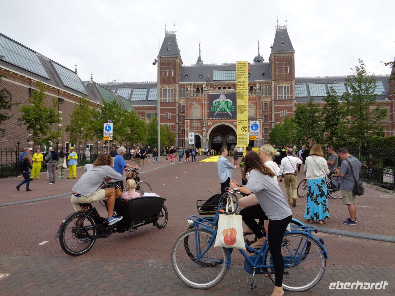 Nachts hat es geregnet und die Luft ist noch leicht dunstig, als wir um 9 Uhr das Hotel verlassen, aber Amsterdam erwartet uns mit trockenem, zum Nachmittag sogar sonnigen Wetter und wir können die Jacken im Bus liegen lassen. Ingo hält am Van Gogh Museum und wir gehen die paar Schritte zum Ausgang der Tiefgarage zu Fuß. Dort wartet bereits Stadtführer Nick auf uns und kurze Zeit später kommt auch Mathilde um die Ecke - losgehen kann der Spaziergang durch die niederländische Hauptstadt. Wir schlendern über den Museumsplatz und machen dann einen Bogen um das aufgrund einer Demonstration von „Extinction Rebellion“ noch geschlossene Reichsmuseum. Die Umweltaktivisten wollen mit ihrer Protestaktion auf die Kooperation zwischen dem Museum und der ING-Bank aufmerksam machen, einer Bank, die für sie einen großen Klimasünder darstellt. In der Altstadt aus dem 17. Jh. sehen wir die typischen Grachtenhäuser mit ihren teilweise immer noch schwarzen und meist nach vorne überhängenden Fassaden. Am Stadhouderskade treffen die Gruppen wieder aufeinander und wir brechen gemeinsam zur Bootsrundfahrt auf. Durch den Grachtengürtel fahren wir zum Hauptbahnhof, unterqueren die Eisenbahn und finden uns wieder auf der Ij, dem Fluss an dem Amsterdams Hafen liegt. Über die Amstel geht die Fahrt zurück in die Innenstadt und es beginnt der freie Nachmittag. Einige besuchen „Van Gogh“, andere das dank einer erfolgreichen Polizeiaktion wiederaufgegangen Rijksmuseum und dritte setzen sich in die Straßenbahn oder spazieren einfach durch die belebten Gassen vorbei am königlichen Palast am Dam im Zentrum der Stadt. Um halb sechs holt Ingo uns vor der Heineken Brauerei ab und bringt uns zum Abendessen ins Pfannkuchenhaus „Strooppot“ nach De Hoef, eigentlich ganz in der Nähe unseres Hotels, wären da nur nicht so viele Fahrbahnschwellen…