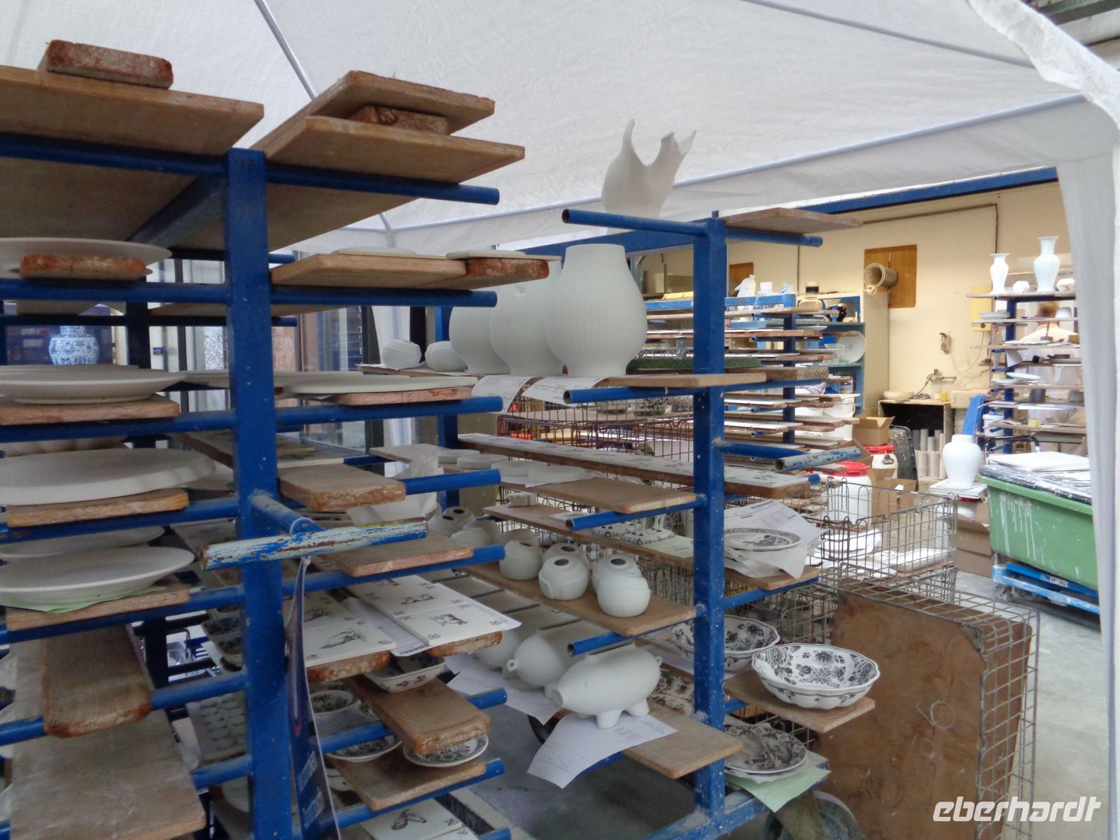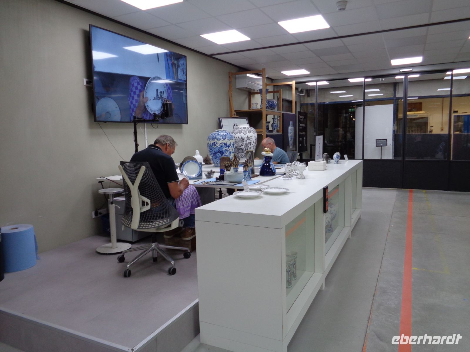Südholland steht auf dem Programm und wir fahren mitten durch das grüne Herz der Niederlande. Über Alphen am Rhein geht es entlang der Gouwe mit ihren markanten 34 Meter hohen Hubbrücken aus den 1930-er Jahren, durch Boskoop, dem heute für seine Baumschulen bekannten, einstigen Apfeldorf, nach Gouda, dem ursprünglichen Marktplatz des Gouda-Käses und dem Heimatort der Zuckerrübensirupwaffel. In der Show-Bäckerei der Waffelfabrik Kamphuisen kosten wir uns durch die verschiedenen Melasse-Sorten und bewundern die Kiste, in der das Rezept des typisch niederländischen Gebäcks aufbewahrt wird. Über eine Rutschbahn gelangen wir in den Verkostungsraum und erhalten bei Rückgabe des Audioguides vom mit Saugnäpfen ausgestatteten Roboterarm eine frische Waffel gereicht. Es bleibt Zeit zum Einkaufen oder für einen Besuch der einmaligen Buntglasfenster aus dem 16. Jh. in der mit 123 Metern längsten Kirche der Niederlande, St. Jan. Dann bringt Ingo uns weiter nach Delft in die Keramikmanufaktur „De Porceleyne Fles“. Hier erfahren wir alles über die Geschichte des berühmten Delfter Blau und können den Kunsthandwerkern bei der Produktion über die Schulter sehen. Nach einer kurzen Kaffeepause erkunden wir auch die Altstadt von Delft. Im Beginenhof wurde einst Prinz Willem I. van Oranje erschossen, der erste Statthalter der unabhängigen Niederlande. Deshalb befindet sich in der Neuen Kirche am Markt bis heute die letzte Ruhestätte der königlichen Familie. Gleich nebenan war der ehemalige Wohnort des bekannten Malers Johannes Vermeer. Plötzlich gießt der Regen vom Himmel. Da hilft auch ein Schirm nicht mehr. Wer noch nicht drin ist, kehrt schnell ein. Das Wetter ändert sich. Brauchten wir eben noch die Klimaanlage, passt jetzt ein warmer Ingwer-Tee. Zum Glück ist das Unwetter vorbei, als wir die Rückkehr zum Busparkplatz antreten müssen.