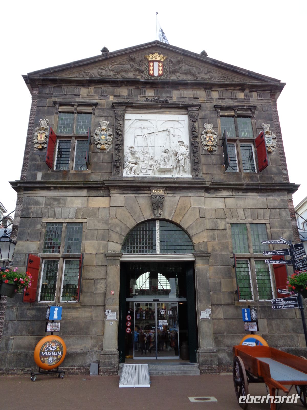 Ein zweites Mal fahren wir auf der A4 in Richtung Süden. Zu unserer Rechten liegt der „Bollenstrek“, das bekannteste Tulpenanbaugebiet der Niederlande. Mittendrin Lisse, das Dorf wohin jedes Jahr tausende von Touristen pilgern um im „Keukenhof“ die neusten Blumenzwiebelzüchtungen zu bewundern. Es folgt Leiden, die Geburtsstadt des Malers Rembrandt van Rijn und älteste Universitätsstadt der Niederlande. Aber auch hier halten wir nicht an, denn unser heutiges Ziel ist Den Haag, der Sitz der niederländischen Regierung und der Arbeitsplatz des Königs Willem-Alexander van Oranje-Nassau. Unsere Stadtführerin Yvette erwartet uns bereits, als wir nach einer kurzen Toilettenpause in die Prinsessegracht einbiegen. Sie fährt mit uns am letzten Stückchen Urwald vorbei und erzählt, wie aus dem einstigen Jagdsitz der holländischen Grafen, s’Gravenhagen, die Verwaltungsstadt Den Haag wurde. Vorbei an Botschaften sowie Hauptsitzen von Behörden und internationalen Unternehmen fahren wir zum Friedenspalast, in dem sich auch der Internationale Gerichtshof befindet. Nach einem kurzen Fotostopp geht es weiter in das einstige Fischerdorf Scheveningen, dem heutigen Seebad von Den Haag. Wir werfen einen Blick auf den Hafen, wo auch heute noch täglich frischer Fisch angeliefert wird, und aufs Kurhaus von 1818, dem ältesten Hotel im Küstenort. Zurück in der Stadt steigen wir am Kneuterdijk aus und folgen Yvette noch eine Stunde zu Fuß. Im Palast „Noordeinde“ wird heute nicht gearbeitet, denn der König ist auf Staatsbesuch in Tschechien und das obwohl die niederländische Regierung gerade mal wieder auseinandergebrochen ist. Wir merken nicht viel davon, denn das Parlamentsgebäude ist eine Großbaustelle, abgeschirmt durch Gerüste und Folien. Nur wer die Fitness hat auf den gelben Aussichtsturm zu steigen, kann in den „Binnenhof“ hineinschauen. Zur Mittagspause laden die Cafés zum Lunch ein. Wieso nicht eine typisch niederländische Tomatensuppe probieren? Am Nachmittag tauschen wir das Mondäne gegen etwas mehr Bodenständigkeit ein und lassen uns in Woerden von Mariska erklären, wie in der Umgebung Käse hergestellt wird. Auf den Höfen verwendet man dazu frische Milch, in den Fabriken hingegen pasteurisierte Milch. Alle Käse reifen jedoch in einer Ummantelung aus Kunststoff und so dürfen wir diese Käse im Packhaus auch anfassen und wenden. Bevor wir uns Eis oder Kaffee mit Apfeltorte gönnen können, steht noch der Besuch der Getreidemühle „De Windhond“ an. Da nimmt uns Hans mit nach ganz oben und erklärt wie mittels rustikaler Technik bis heute aus dem Korn Mehl gemahlen wird. Wer schwindelfrei ist darf sogar auf die Balustrade, deren Geländer auf keinen Fall einen Meter hoch ist. Was wohl die deutsche Berufsgenossenschaft dazu sagen würde?