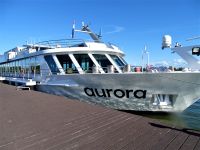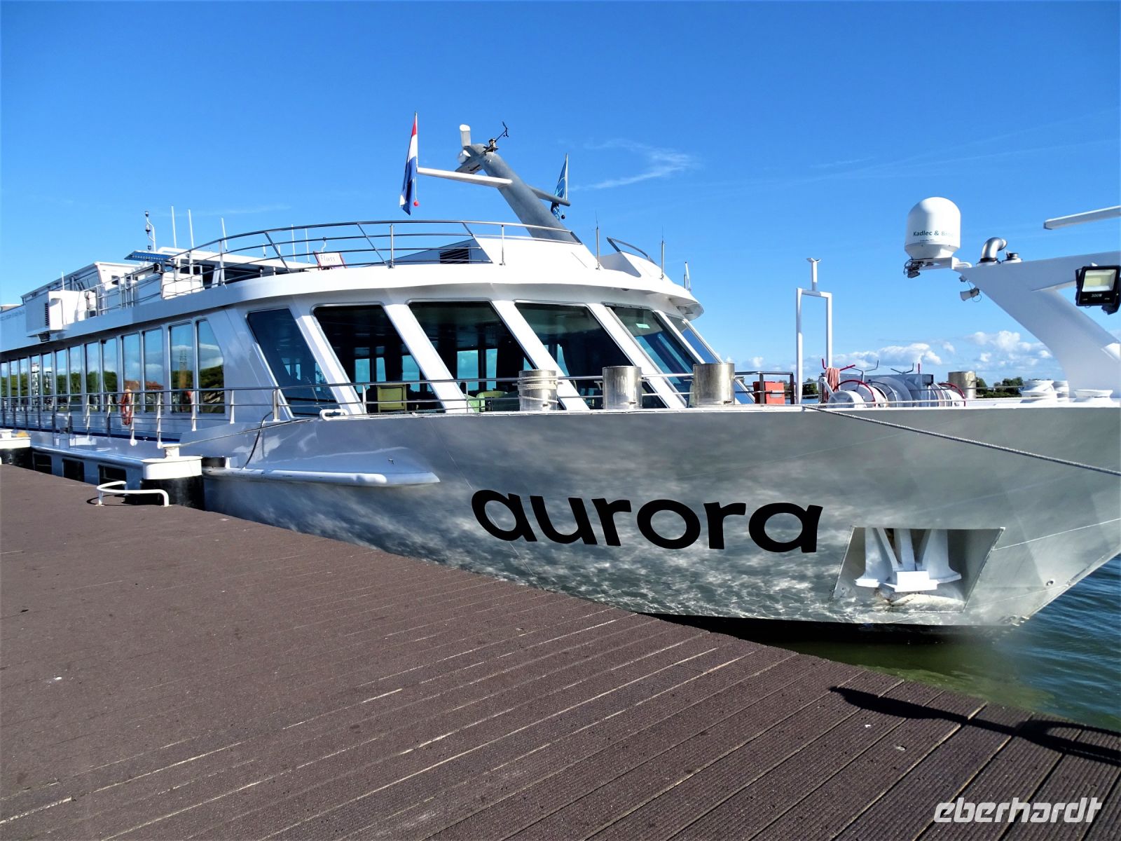 Durch die widrigen Fahrverhältnisse erreichen wir den Schiffsanleger unserer MS Aurora“ leider erst gegen 17:45 Uhr. Man hatte schon auf uns gewartet und so ging alles rasant schnell.