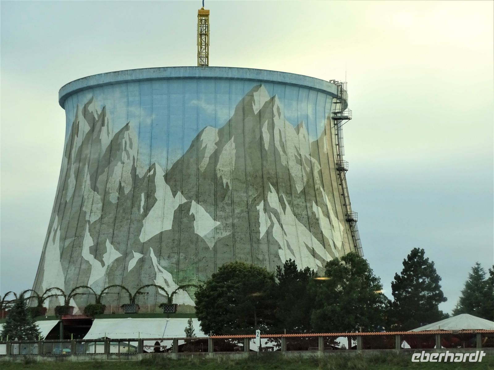 Das Wetter war recht trübe, so dass man von der Landschaft wenig Klares sah. Mal die große Esse von Chemnitz, die nun aus energetischen Gründen nachts auf ihr Farbenspiel verzichten muss, dann den Ort Meerane, der einigen noch mit seiner steilen Wand durch die Friedensfahrt