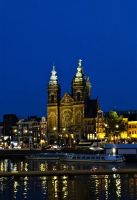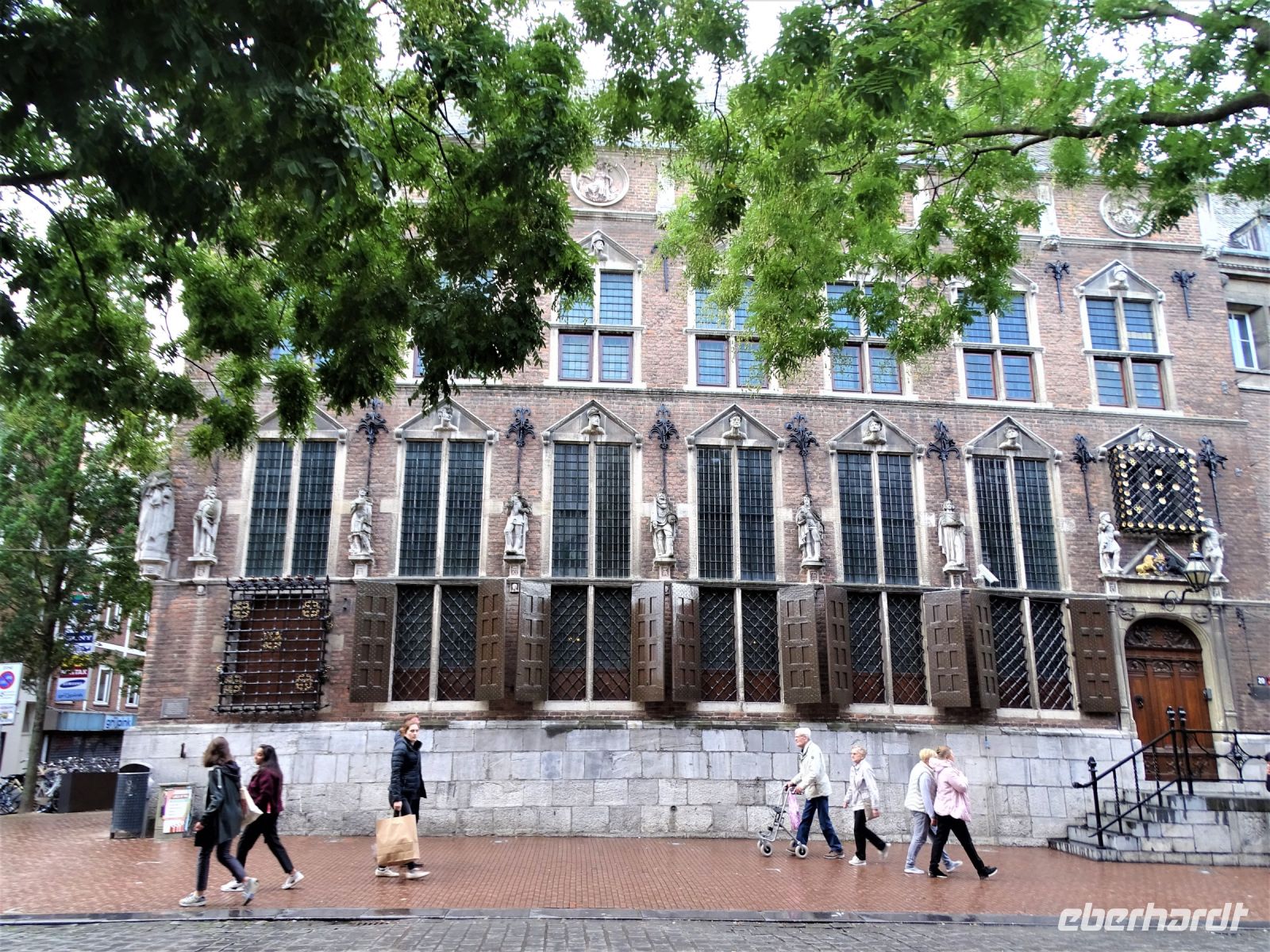 Die Dämmerung zog auf und ich ging mit einer kleinen Gruppe interessierter Gäste noch auf einen Abendbummel in die Innenstadt. Entlang des Damraks spazierten wir durch eine Glitzer-welt bis hin zum Dam Platz. Dabei konnten wir die Basilika St. Nikolaus genauso bestaunen, wie die Ausläufer der Grachten mit ihren flachen Rundfahrbooten. Vorbei an der Börse von Amsterdam blieben wir immer wieder kurz stehen, um die vor den Schuhgeschäften aufgestellten „Klompies“ als willkommenes Fotoobjekt zu nutzen. Dann standen wir vor dem königlichen Palais auf dem Dam Platz. Dies war auch allen ein extra Foto wert. Leider war das Nationalmonument immer noch verhüllt. Nach einem kurzen Rundgang, vorbei an Madame Tussauds Wachsfigurenkabinett, dem Hotel Twenty Seven, schlenderten wir wieder zurück zum Anleger.