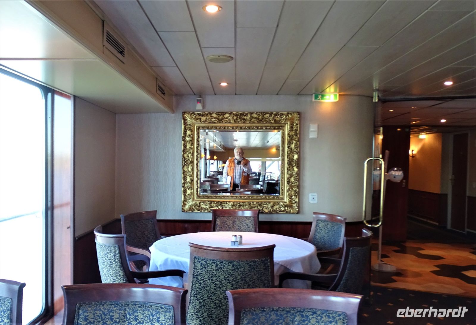 Und so traf man sich im Salon zu einem letzten Kaffeetrinken, ließ sich mit dem täglich bereitgestellten Kuchen verwöhnen und bereitete sich dann auf die Verabschiedung und das Kapitänsdinner vor.