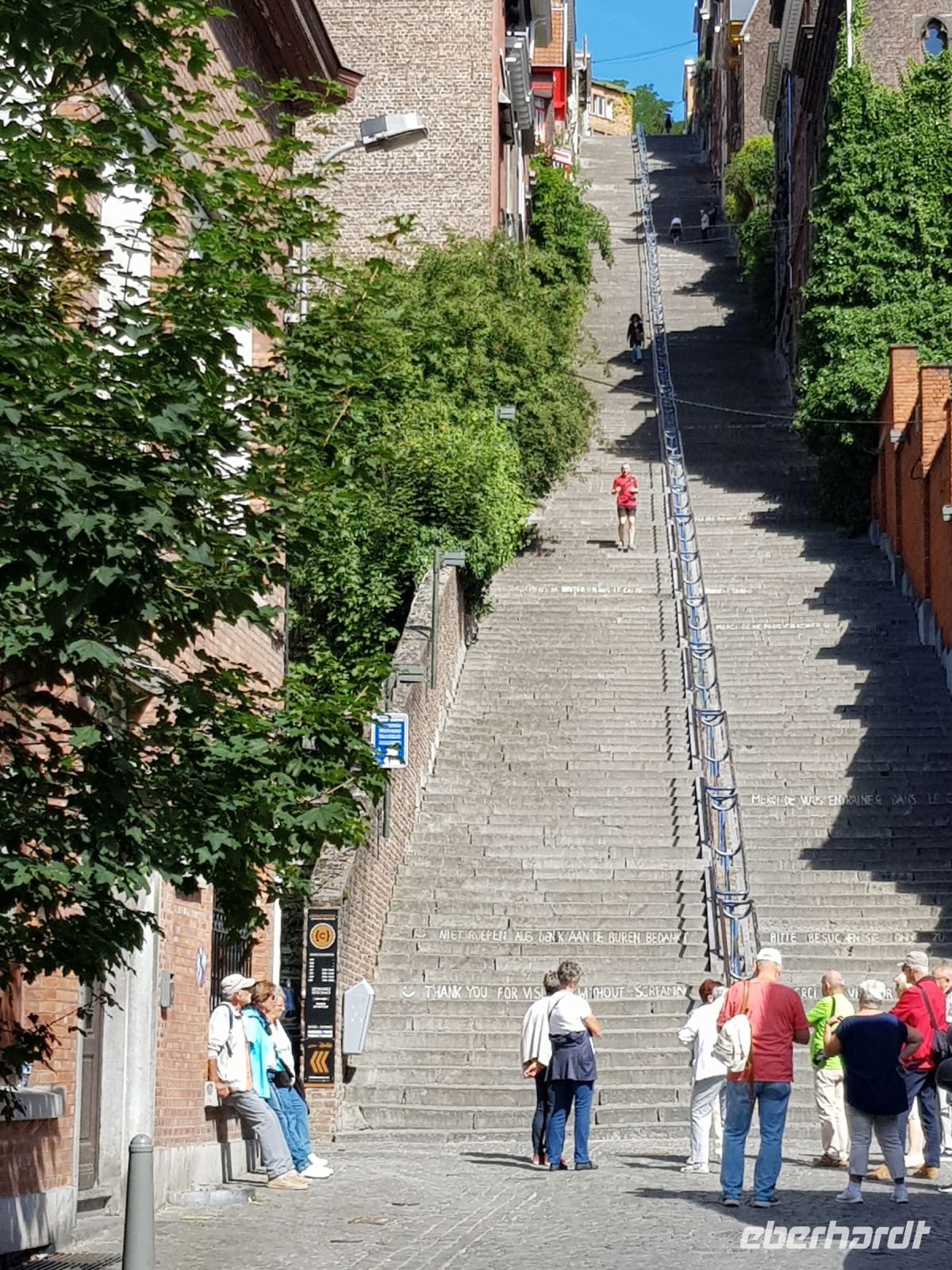 Angekommen in Namur überrascht uns die Stadt mit der weithin sichtbaren Zitadelle links der Maas und in direkter Nähe geht es über eine Brücke in die Innenstadt. Ob Zitadelle oder Cafe in der Innenstadt - Jeder wie er mag. Übrigends: Was bekommt man nicht nur in Belgien, wenn man einen Eiscafe bestellt? Einen kalten Kaffee mit Eiswürfeln!!!