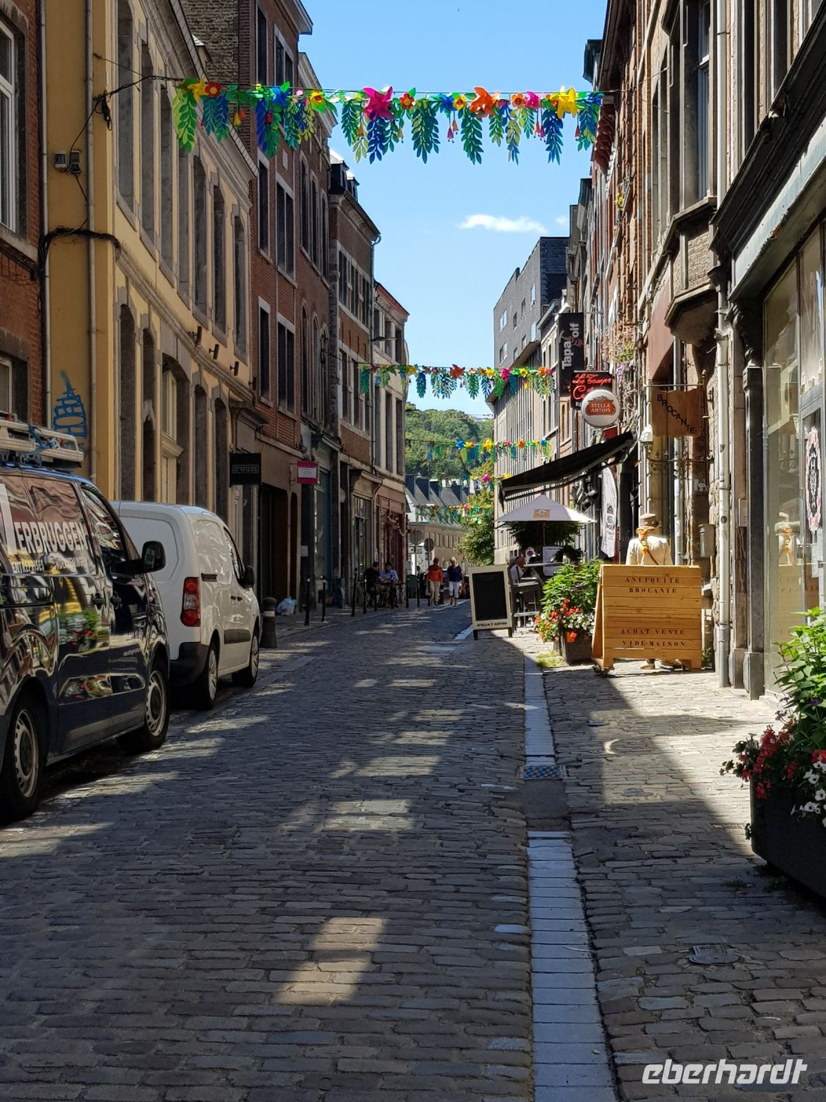 Wir sind mit Verspätung am Bus, für einen kleinen Mittagssnack bleibt keine Zeit. Aber Jemand hat aufgepasst und kurzerhand belgisches Gebäck und die berühmten belgischen Waffeln besorgt. So starten wir in Richtung Namur, machen unterwegs einen kleinen Stopp in Huy.