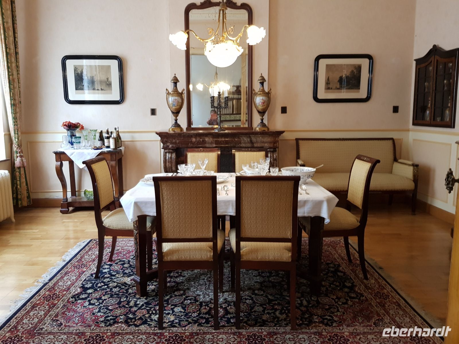 Pünktlich 06:00 Uhr startet unser Bus am Flughafen Dresden. Die Zustiege in Chemnitz und Meerane können auf den Punkt bedient werden, nur in Gera-Langenberg müssen wir feststellen, dass die Abfahrt wegen Bauarbeiten gesperrt ist. Also heisst es, weiterfahren, nächste Abfahrt abfahren und zurück nach Gera- Langenberg. Das kostet natürlich Zeit. Aber nun sind alle Gäste an Bord und weiter geht`s. Nicht nur in Sachsen und Thüringen werden Abschnitte der Autobahn gebaut, weiter westlich sind es hauptsächlich Brücken. Um Köln herum geraten wir in die Rush Hour. Gegen 17:30 Uhr kommen wir im Hotel an, beziehen die Zimmer und werden zum Abendessen mit einem 1a 3-Gänge- Menü verwöhnt. Die Gäste sitzen an 4-er und 6-er Tischen, geniessen die angenehme Atmosphäre sowohl im Restaurant als auch danach bei einem Glas Wein oder Bier auf der Terrasse im Garten.