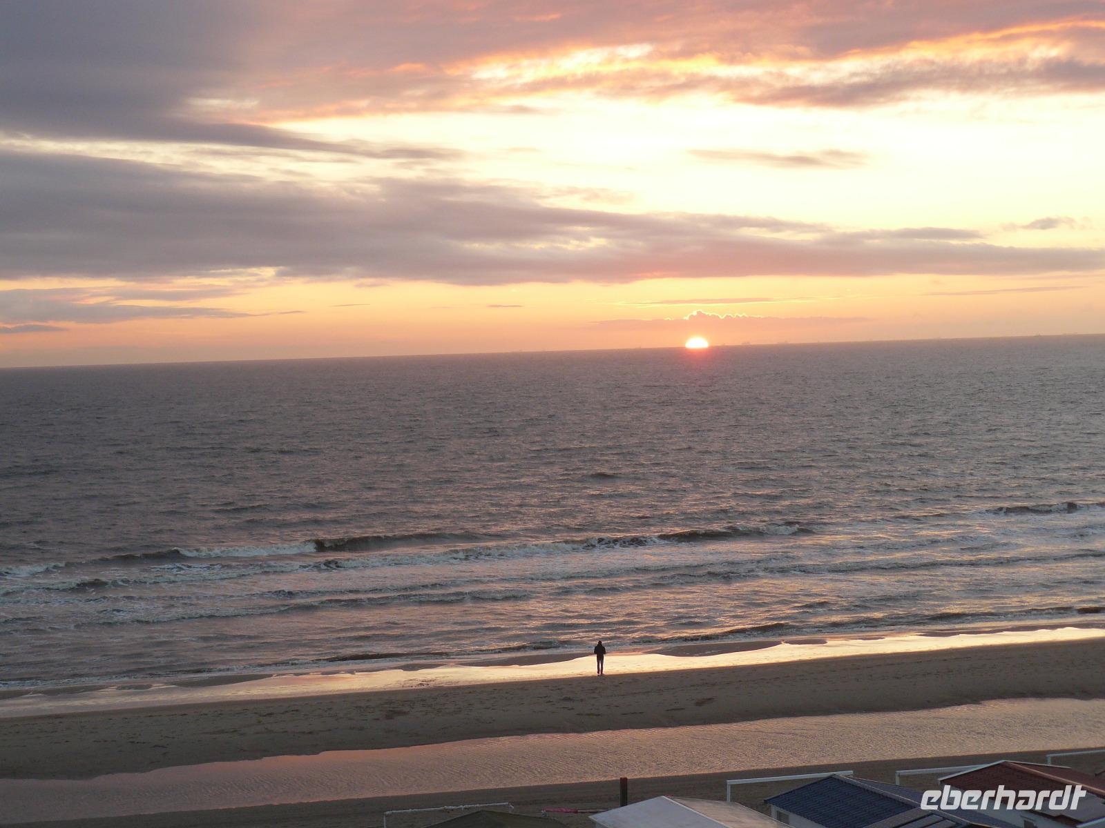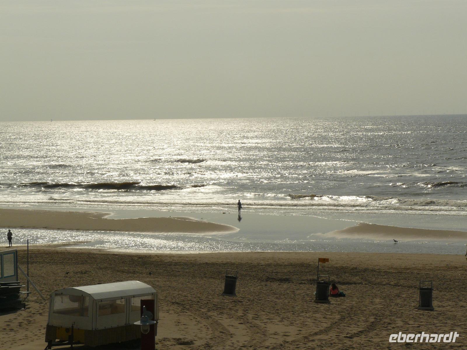 Die Wettervorhersage war zwar sehr gut, aber das graue Wetter hatte uns bald wieder eingeholt. Morgens hatten wir meist schlechtes Wetter, nachmittags häufiger Sonne. Der Käsemarkt war morgens. Trotz feuchtem Nebel war Alkmaar voller Besucher. Der Markt hat uns weniger beeindruckt, aber das Käsemuseum, das wir besuchten, war echt interessant. Auf Vorschlag der Reiseleiterin reiste die ganze Gruppe am Nachmittag, der zur freien Verfügung stand, nach Bergen. 10 Gäste ergründeten die Künstlerkolonie und verbrachten in Bergen einen schönen Nachmittag - nun war das Wetter gut! 2 Gäste wollten wandern, und so begleitete sie die Reiseleiterin durch die dortigen Dünen nach Bergen aan Zee. Die Dünenlandschaft war auch hier wunderschön, und ganz anders als im Kennemer Land. Und das Wetter war nun freundlich. Von Bergen aus ging's mit mehreren Umstiegen per Bus und Zug wieder nach Zandvoort zurück. Nach unserem Essen trafen sich die Gäste, die noch munter waren, bei herrlicher Abendstimmung am Sandstrand, bewunderten den Sonnenuntergang und feierten die schöne Reise mit einer Flasche Sekt, die Eberhardt spendierte!