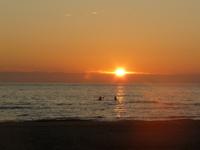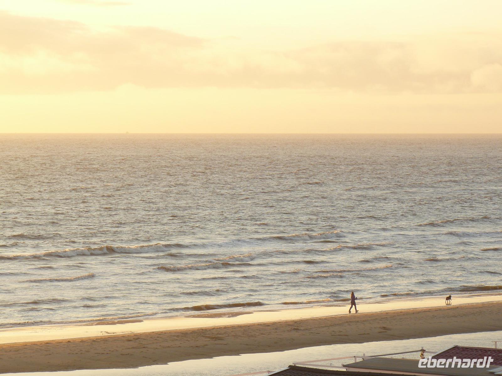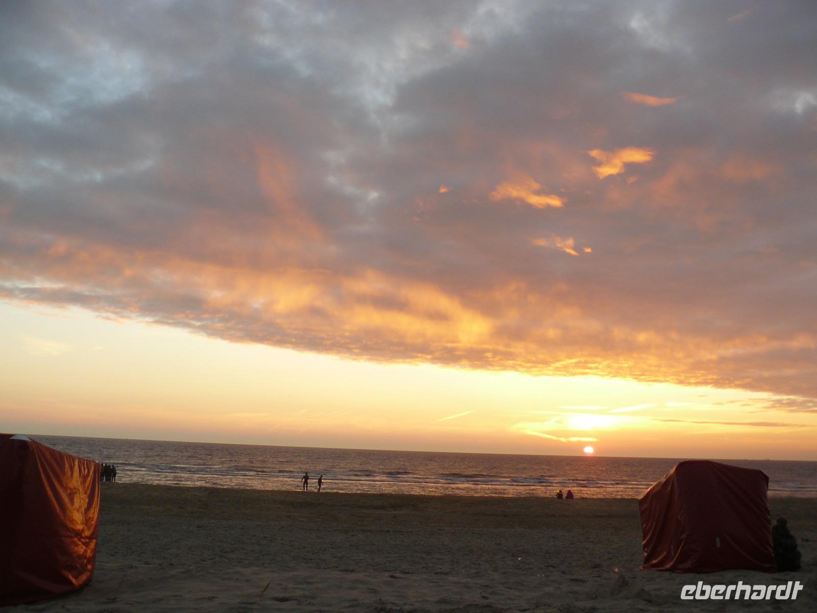 Am Nachmittag besuchten wir noch einmal Amsterdam, lag es doch auf der Strecke. Nun holten wir die Bootsfahrt durch die Grachten nach. Zunächst fuhr das Glasboot mit geöffnetem Dach und wir bewunderten den modernen Hafen und die malerischen Barockhäuser aus anderer Perspektive. Aber Amsterdam wollte sich nicht bei schönem Wetter zeigen: es fing bald schon wieder an zu regnen! Das Glasdach bewahrte uns vor weiterem Wasser von oben und so nahmen wir's gelassen. Abends wurde das Wetter wieder freundlich, und einige Gäste genossen den herrlichen Sonnenuntergang am Meer bei einem Strandspaziergang nach dem Essen, das wie immer vorzüglich war.