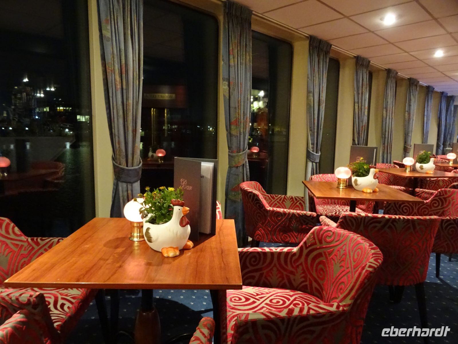 Leider verging die Zeit im Keukenhof viel zu schnell, bevor wir für ein letztes mal auf unser Schiff zurückkehrten und anfingen, unsere Koffer zu packen. Der Kapitän lud alle Passagiere zu einem Abschiedscocktail ein und die gesamte Crew verabschiedete sich, bevor wir zu einem letzten Abendessen im 4-Gänge-Menü ins Restaurant eintraten. Eine erlebnisreiche Reise mit einer sehr liebevollen Gruppe neigte sich heute dem Ende zu.