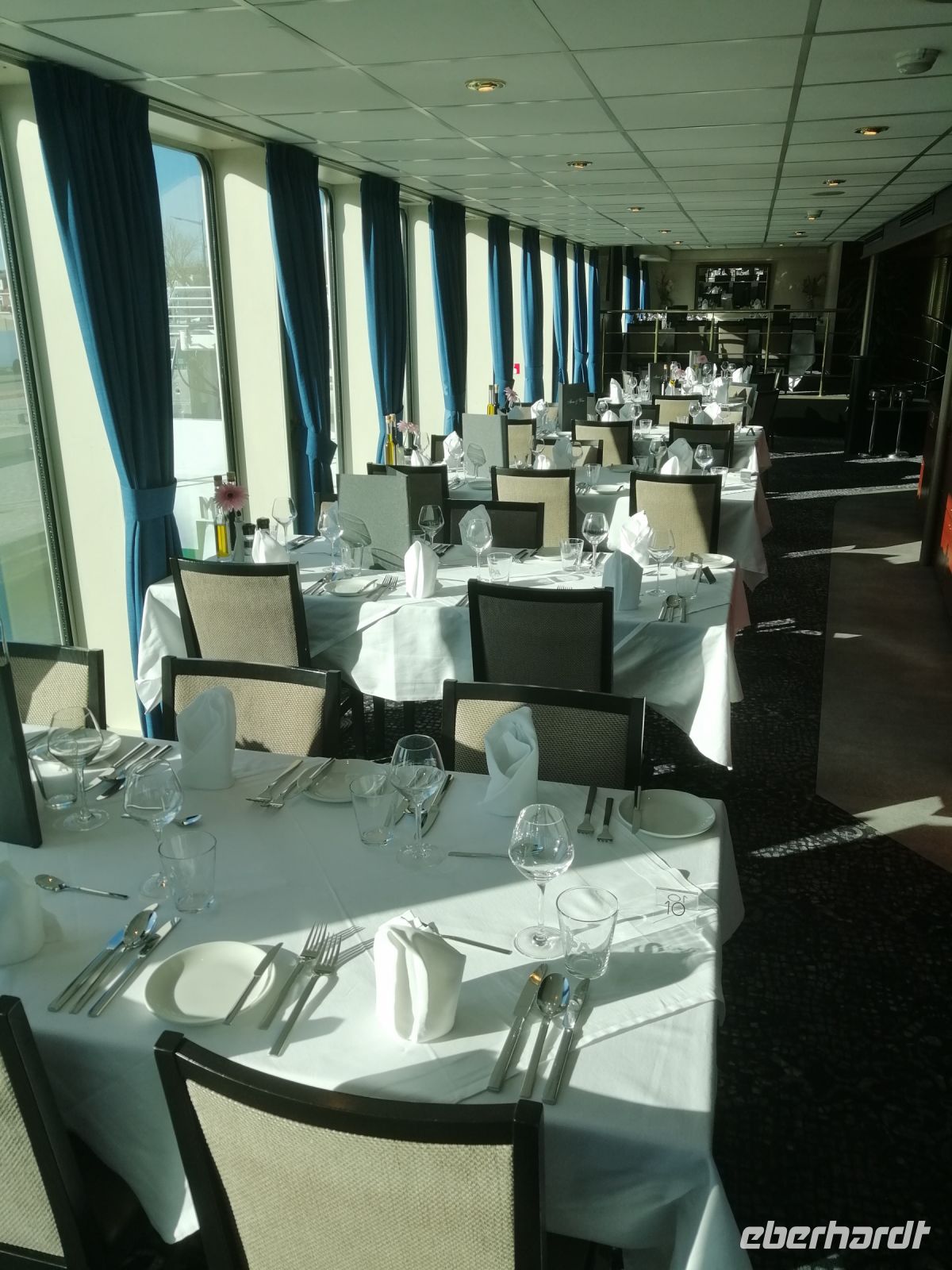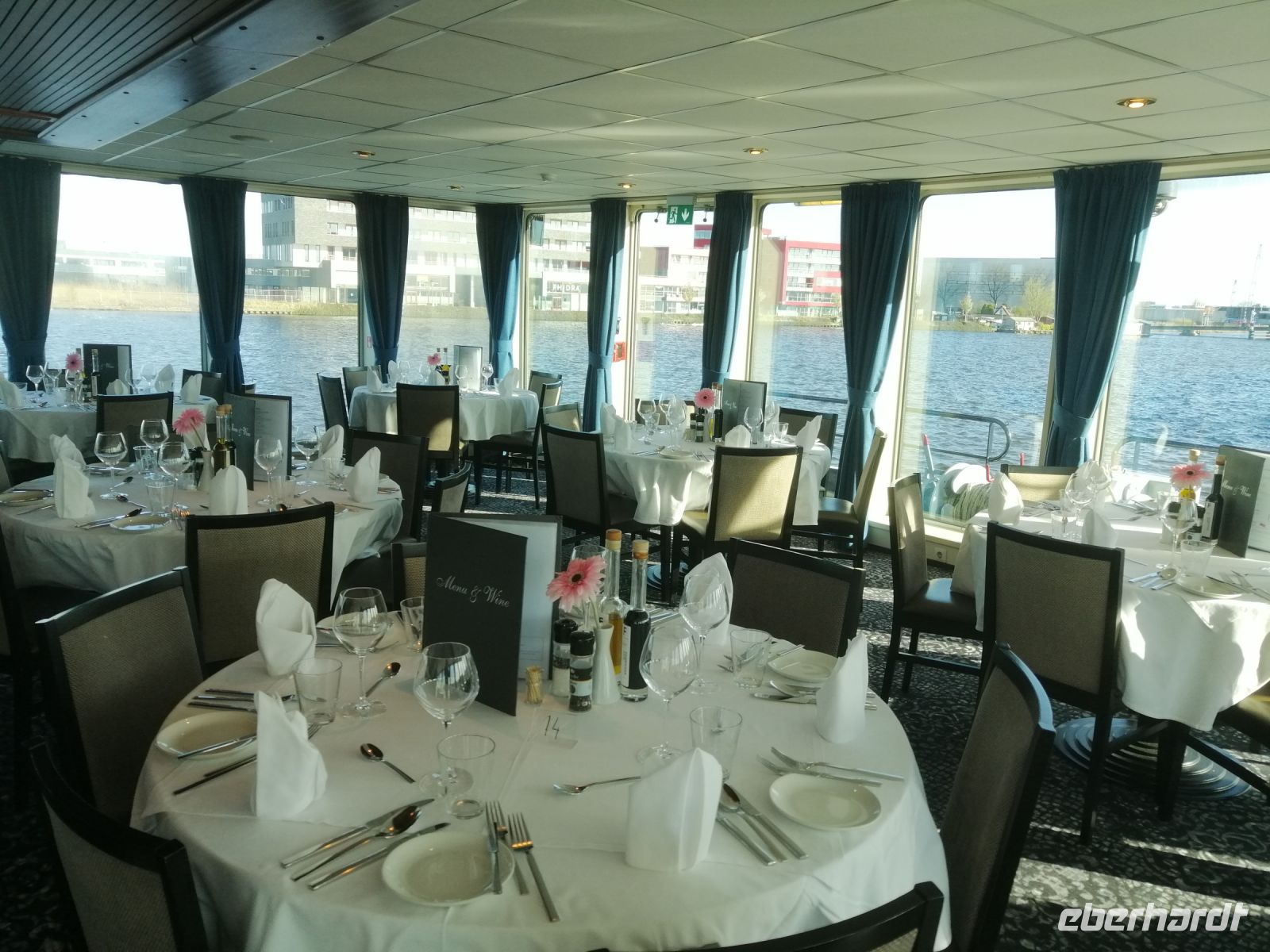 Mit den wichtigsten Sicherheitsinfos im Gepäck und einem Lächeln im Gesicht ging es weiter ins Schiffsrestaurant, wo Chefkoch Agus persönlich das erste Abendessen servierte – lecker, liebevoll und ein echter Appetitanreger für die kommenden Tage. Der Abend klang gemütlich bei Musik, Drinks und einem kleinen Abendsnack in der Lounge aus. Und wer wollte, konnte beim Blick auf das Wasser schon mal von Windmühlen, Blumenmeeren und holländischem Käse träumen :-)