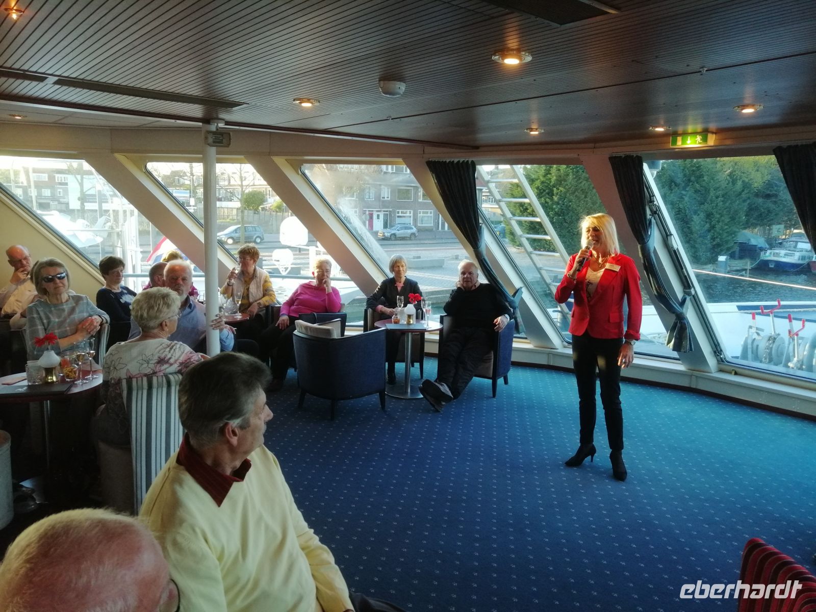 Nach den üblichen Formalitäten und einem freundlichen Willkommen durch die beiden Kapitäne Edwin und Bert, Hotelmanagerin Kristina und unsere charmante Bordreiseleiterin Manuela, wurde es feierlich: ein Cocktail in der Lounge zum Auftakt – stilecht wie es sich für eine Tulpenkreuzfahrt gehört!