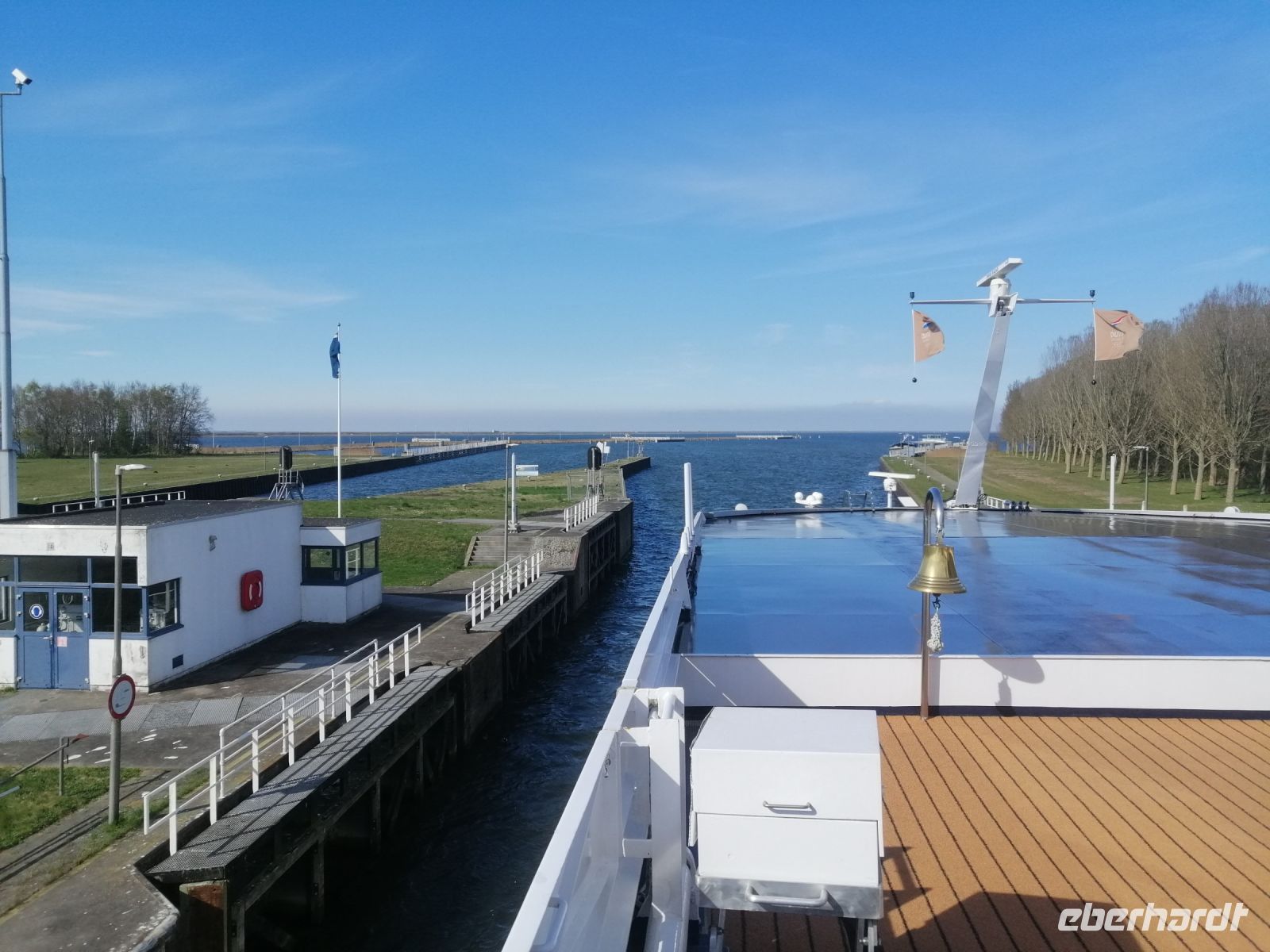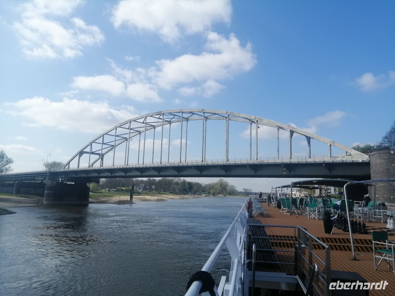 Kurz bevor es Mittag wurde, hieß es auch schon wieder: Leinen los, wir gleiten weiter den Fluss entlang – auf nach Deventer! Mit einem herzlichen "Ahoi!" kamen Kapitän Leenard und seine charmante Frau Miriam an Bord der MS Dutch Grace und übernahmen das Ruder. Währenddessen verabschiedeten sich Edwin und Bert mit einem letzten seemännischen Winken – natürlich nicht ohne ein paar nette Worte und ein freundliches Lächeln! Während die MS Dutch Grace gemütlich Fahrt aufnahm, wurden wir an Bord mit einem leckeren Mittagessen verwöhnt. Der Ausblick: sanfte Uferlandschaften, weite Felder, blühende Obstbäume – ein Fest für die Seele und die Linse.