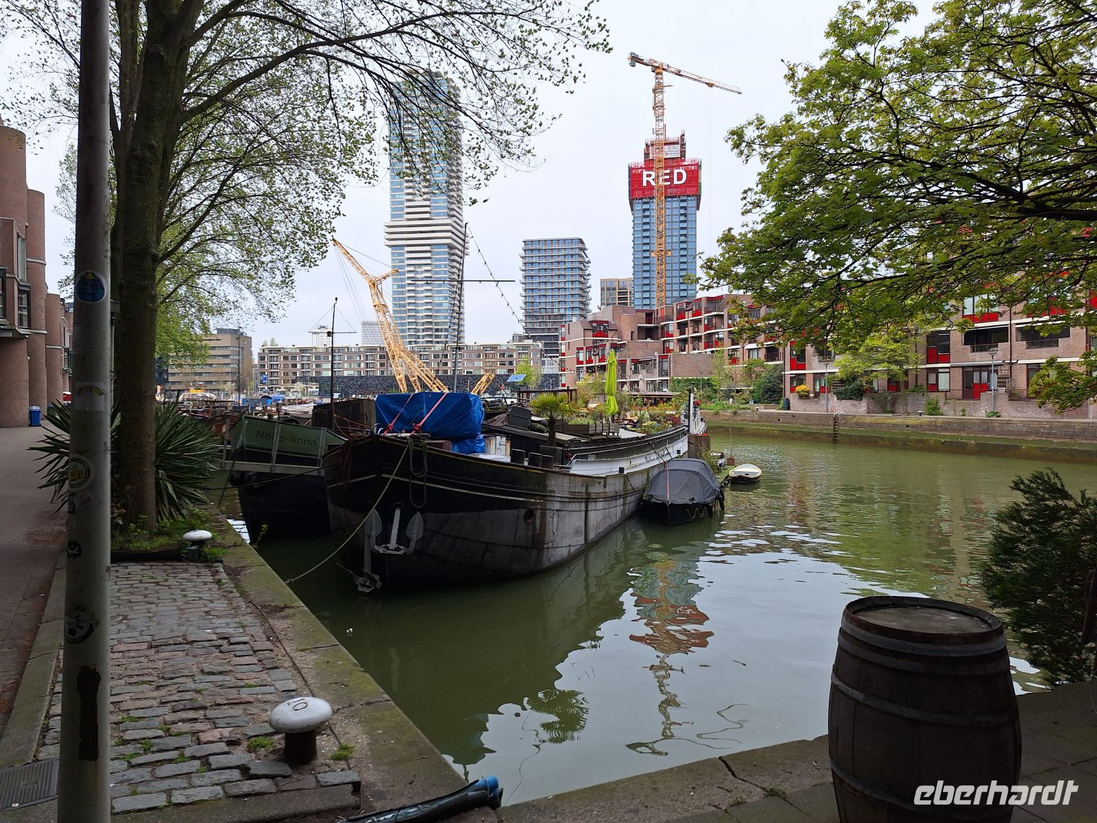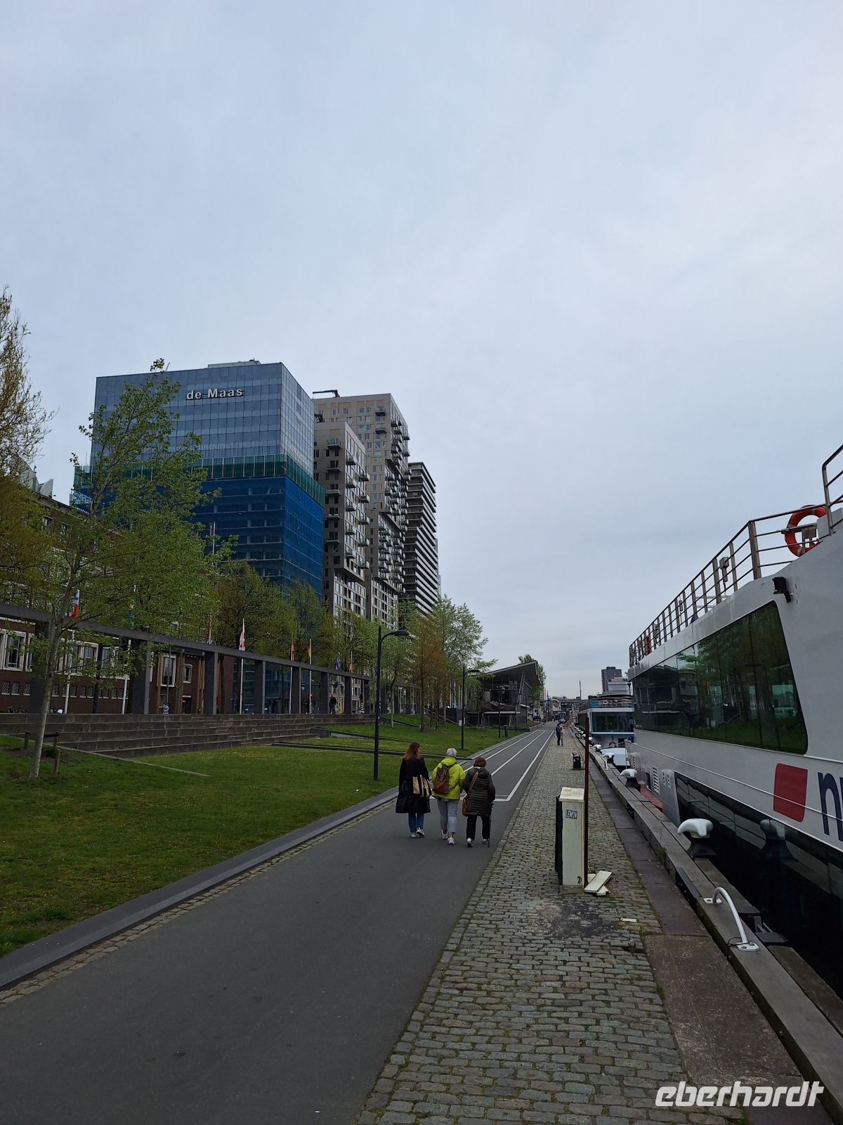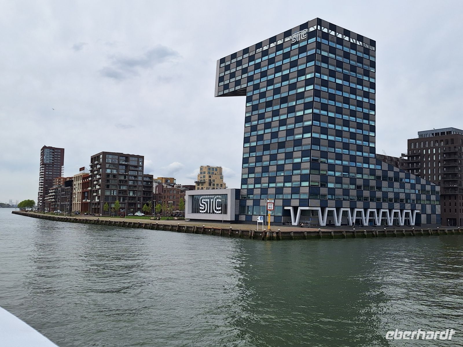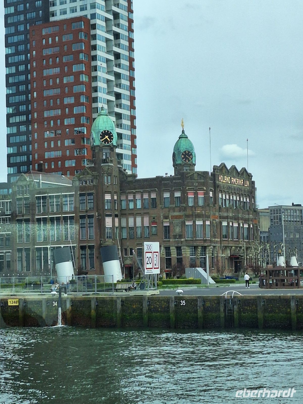 Am Nachmittag lud uns die Reederei zu einer Stadtrundfahrt mit anschließender Hafenrundfahrt ein. Rotterdam ist eine beeindruckende Stadt, die vor allem durch ihre imposante Architektur besticht. Vorgaben oder Bestimmungen scheint es nicht zu geben, jeder kann bauen wie er will. Man kann herrliche Hochhäuser betrachten, wo man sich fragt, kippen die nicht mal um? Es ist ein großer Kontrast zur üblichen holländischen Bauweise, das gefällt nicht allen Einheimischen, da gibt es große Diskussionen. Aber den Touristen gefällt das Stadtbild. Immerhin wurde die Stadt im Weltkrieg fast vollständig zerstört. Während der anschließenden Hafenrundfahrt wurde das Stadtbild vom Wasser aus nochmals beeindruckend bestätigt. Wir konnten natürlich nicht die gesamten 40 Kilometer des Hafens betrachten, aber wesentliche Sehenswürdigkeiten konnten alle in den Gedanken und im Bild festhalten. Besonders imposant war die Vorbeifahrt am Schiff „Rotterdam“ dem ersten Kreuzfahrtschiff das über den Atlantik von Rotterdam nach New York fuhr. Vorbei an großen Containerschiffen kehrten wir mit vielen Eindrücken zu unserm „Kreuzfahrtschiff“ zurück. Zum Abendessen verwöhnte uns das Küchen- und Servicepersonal wieder mit einem leckeren 4-Gang Menü. Mit vielen schönen Momenten und gesättigt ließen wir den Abend gemütlich im Salon ausklingen, während draußen langsam die Lichter Rotterdams im Wasser glitzerten.