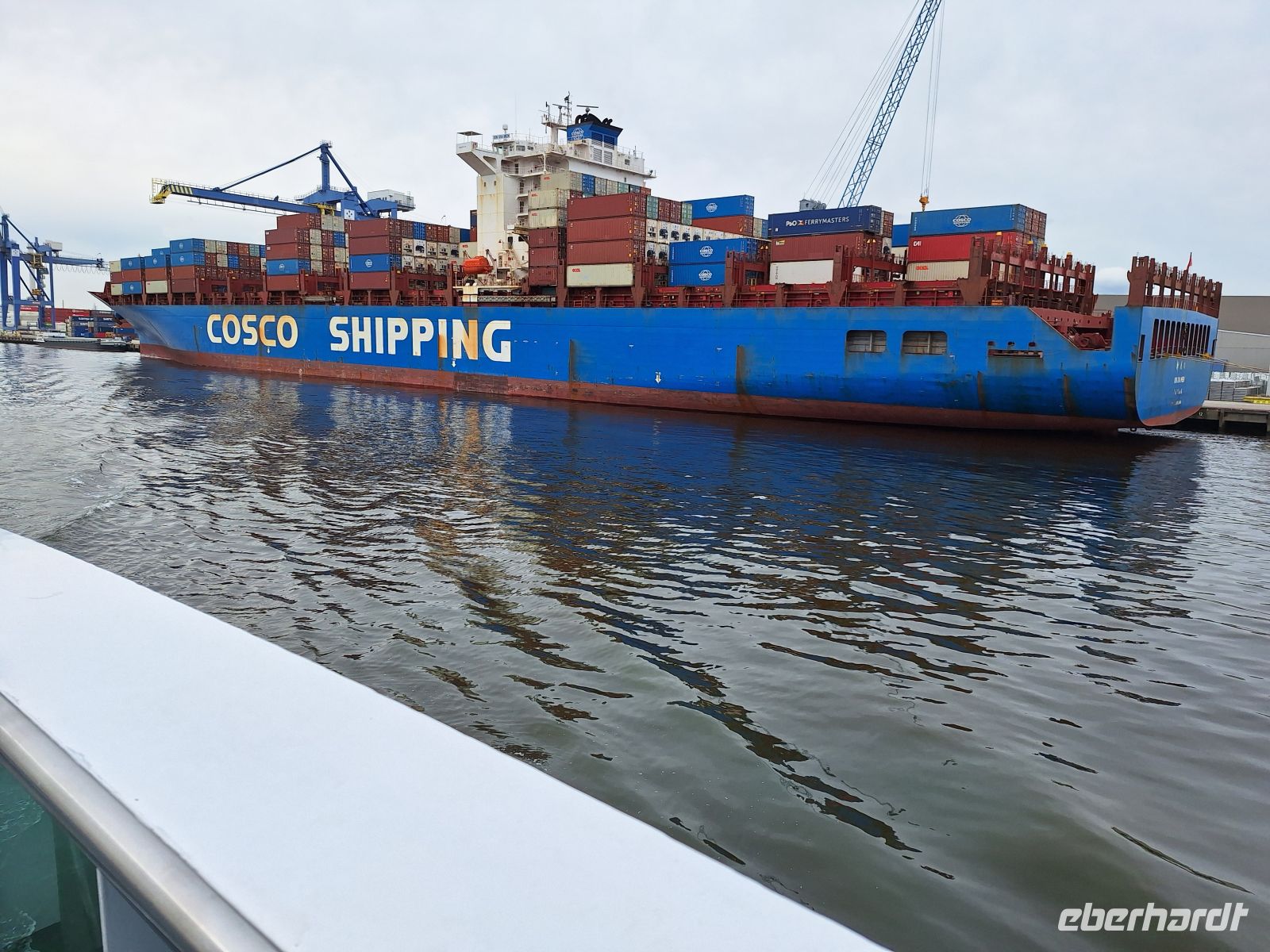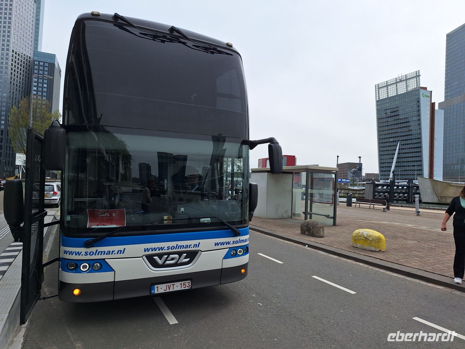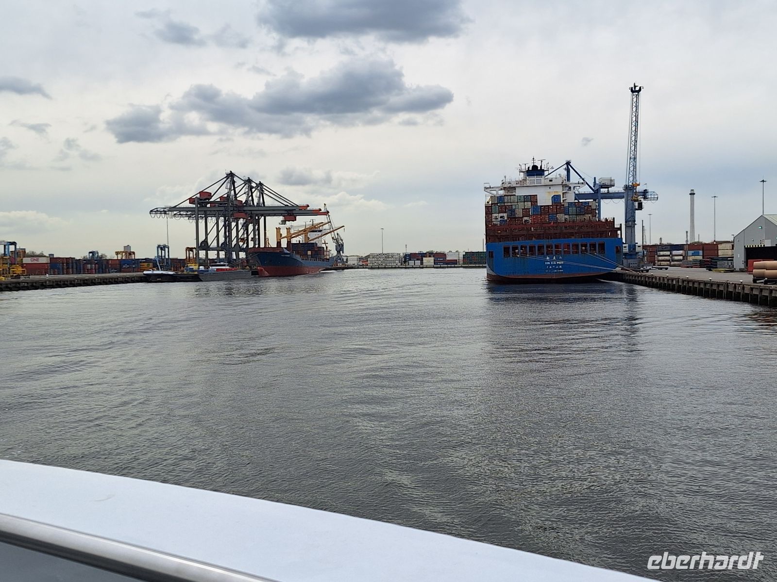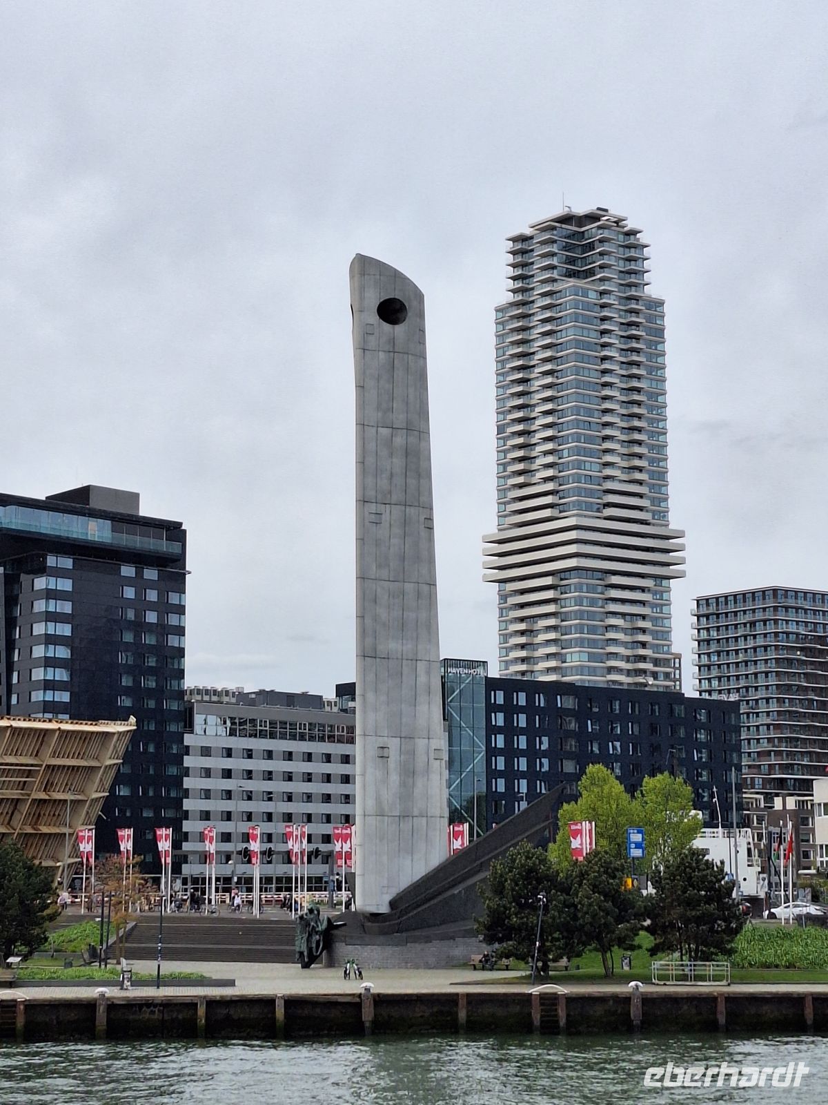 Am Nachmittag lud uns die Reederei zu einer Stadtrundfahrt mit anschließender Hafenrundfahrt ein. Rotterdam ist eine beeindruckende Stadt, die vor allem durch ihre imposante Architektur besticht. Vorgaben oder Bestimmungen scheint es nicht zu geben, jeder kann bauen wie er will. Man kann herrliche Hochhäuser betrachten, wo man sich fragt, kippen die nicht mal um? Es ist ein großer Kontrast zur üblichen holländischen Bauweise, das gefällt nicht allen Einheimischen, da gibt es große Diskussionen. Aber den Touristen gefällt das Stadtbild. Immerhin wurde die Stadt im Weltkrieg fast vollständig zerstört. Während der anschließenden Hafenrundfahrt wurde das Stadtbild vom Wasser aus nochmals beeindruckend bestätigt. Wir konnten natürlich nicht die gesamten 40 Kilometer des Hafens betrachten, aber wesentliche Sehenswürdigkeiten konnten alle in den Gedanken und im Bild festhalten. Besonders imposant war die Vorbeifahrt am Schiff „Rotterdam“ dem ersten Kreuzfahrtschiff das über den Atlantik von Rotterdam nach New York fuhr. Vorbei an großen Containerschiffen kehrten wir mit vielen Eindrücken zu unserm „Kreuzfahrtschiff“ zurück. Zum Abendessen verwöhnte uns das Küchen- und Servicepersonal wieder mit einem leckeren 4-Gang Menü. Mit vielen schönen Momenten und gesättigt ließen wir den Abend gemütlich im Salon ausklingen, während draußen langsam die Lichter Rotterdams im Wasser glitzerten.