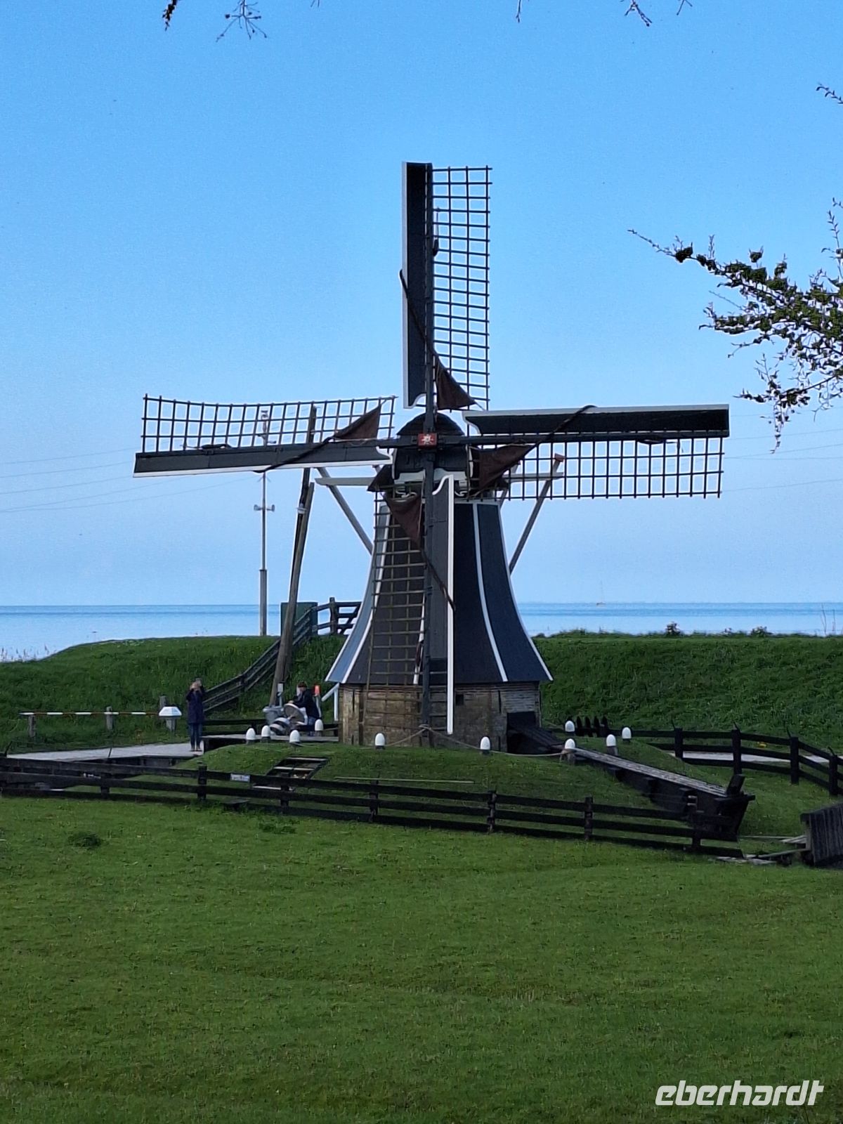 Durch ein Schleusenproblem konnten wir leider nicht durch Marker- und Ijsselmeer fahren, und mussten in Utrecht vor Anker gehen. Am Vormittag hatten wir wiederum Gelegenheit auf dem Schiff zu entspannen. Am Nachmittag fuhr uns ein Bus nach Enkhuizen. Zunächst ging es nach Lelytad, und von dort über der 26 km langen Markermeerdeich zu unserem Tagesziel. Die Deichfahrt war schon spektakulär, denn 26 km links und rechts nur Wasser war gewöhnungsbedürftig.