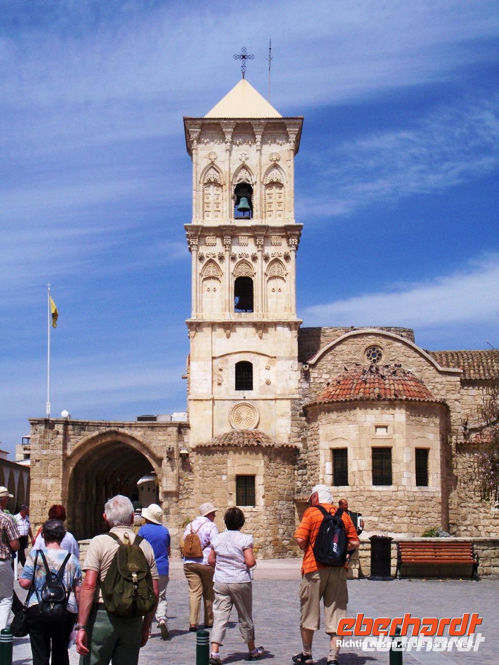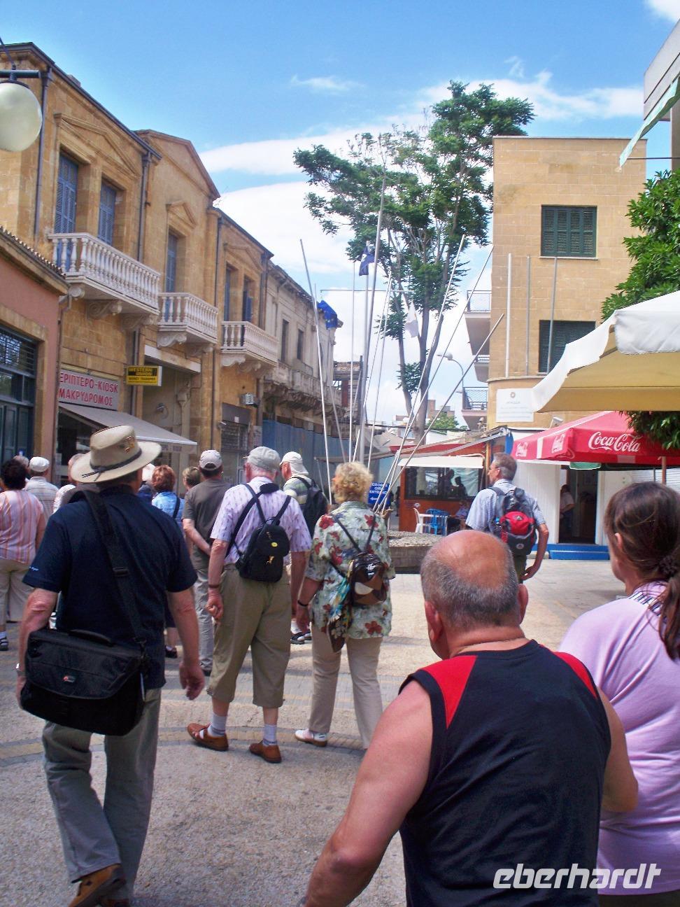 Am nächsten Tag verschlug es uns in den türkischen Teil (Einreise ist ohne Probleme mit Personalausweis und Tagesvisum möglich) nach Famagusta und Barnabas, sowie Salamis. Unser erster Besichtigungspunkt war das Barnabas-Kloster aus dem 5. Jahrhundert, wo wir das Grab des Apostels Barnabas besuchten. Barnabas war der erste Bischof Zyperns. Außerdem nutzten wir die Gelegenheit und schauten uns die Ausstellung über archäologische Funde an. Weiter ging es nach Salamis mit der weitläufigen Ausgrabungsstätte der einstigen antiken Großstadt. Unsere letzte Station an diesem Tag war Famagusta bzw. türkisch Gazimagusa und besuchten die Zitadelle, mit Stadtmauer und Othello-Turm. Von hier aus hatten wir einen herrlichen Überblick über die Altstadt und sahen schon unser nächstes Ziel. Die Lala-Mustafa-Pasa-Moschee, sie ist das Hauptgebetshaus der Moslems in Famagusta und zählt auch zu dem Höhepunkt der Altstadt. Am späten Nachmittag waren wir wieder in unserem Hotel Cavo Maris. Einige von uns gingen noch einmal im Meer schwimmen.Jetzt hieß es für uns Koffer packen, um am nächsten Morgen für 2 Nächte nach Lefkosia, der Hauptstadt von Zypern, weiterzureisen.