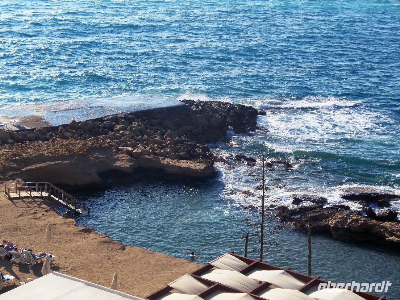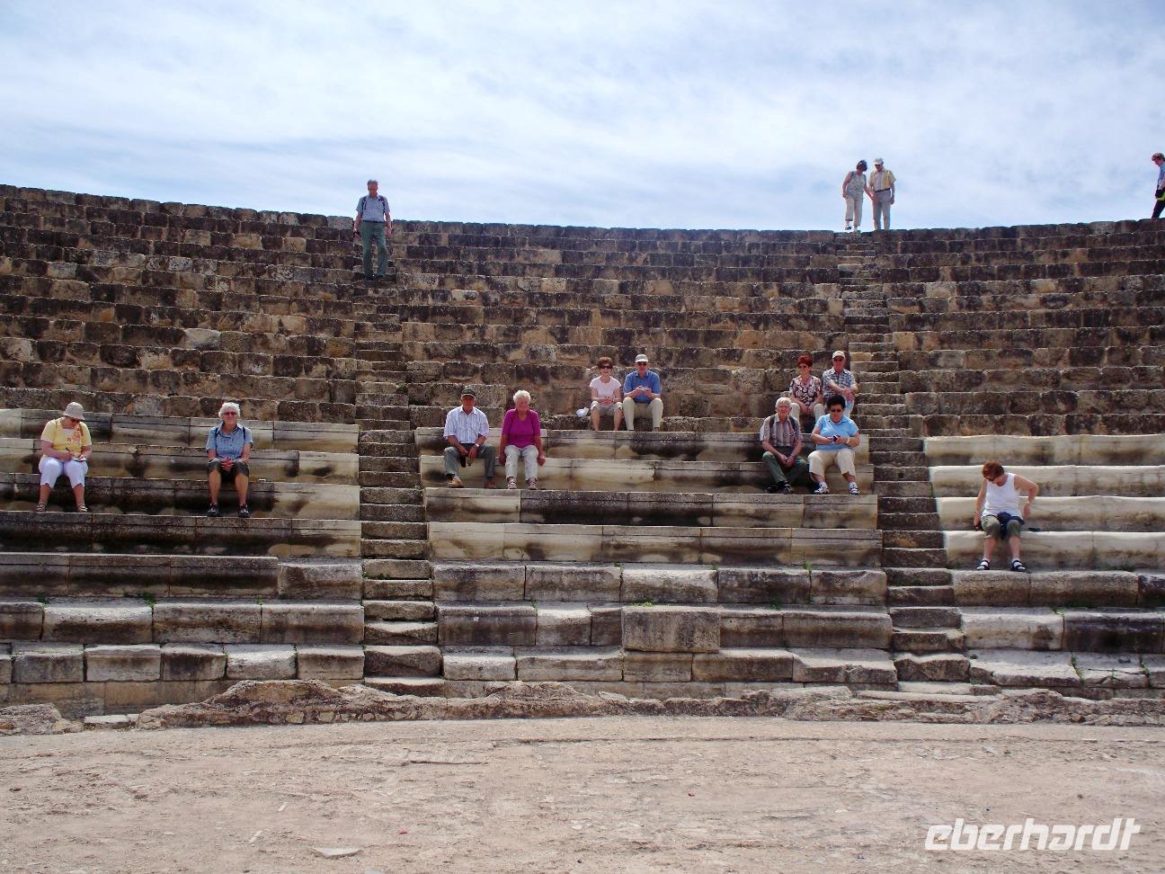 Am Morgen hieß es langsam vom Gebirge Abschied nehmen, denn unsere Tour führte uns wieder zum Meer. Doch bevor wir das Gebirge richtig verließen, legten wir noch einen Stopp am Top von Troodos ein. Die Wanderung auf dem Peresphoni-Wanderpfad war sehr angenehm und auch nicht anstrengend, da keine nennenswerte Anstiege dabei waren. Die Sonne machte die Wanderung noch wesentlicher leichter, denn sie war immer an unserer Seite. Außerdem hatten wir immer wieder einen herrlichen Blick zum Olympos und das gesamte Troodos-Gebirge. Am Aussichtspunkt konnten wir sogar schon den Salzsee von Limassol sehen. Gestärkt hatten wir uns mit unseren mitgenommenen Lunchpaketen am Top von Troodos. Danach verließen wir das Troodos-Gebirge. Der nächste Halt war in Kolossi. Hier besuchten wir die Burg, ein Bauwerk der Johanniter-Ritter. Wer bis zum Aussichtspunkt der Burg ging, hatte einen schönen Ausblick bis nach Limassol, nur leider war es sehr windig. Die nächste Station war Kourion. Hier befindet sich eine sehenswerte archäologische Stätte Zyperns u.a. ein Theater mit einen grandiosem Blick auf das Meer. Unser letzter Halt vor dem Hotel war Petra tou Romiou. An diesem Punkt befindet sich der sagenumwobene „Felsen der Aphrodite“. Genau hier soll die „Schönste aller Schönen“ bzw. die „Göttin der Liebe“ aus dem Meer entstiegen sein. Anschließend fuhren wir in unser Hotel nach Pafos, wo wir die letzten 5 Nächte verbrachten.