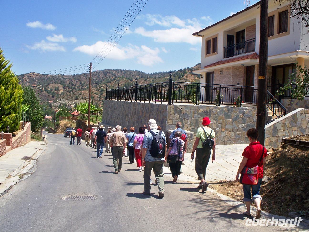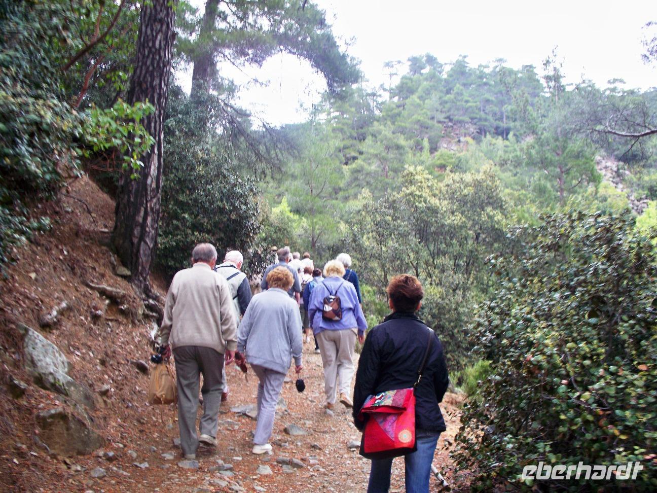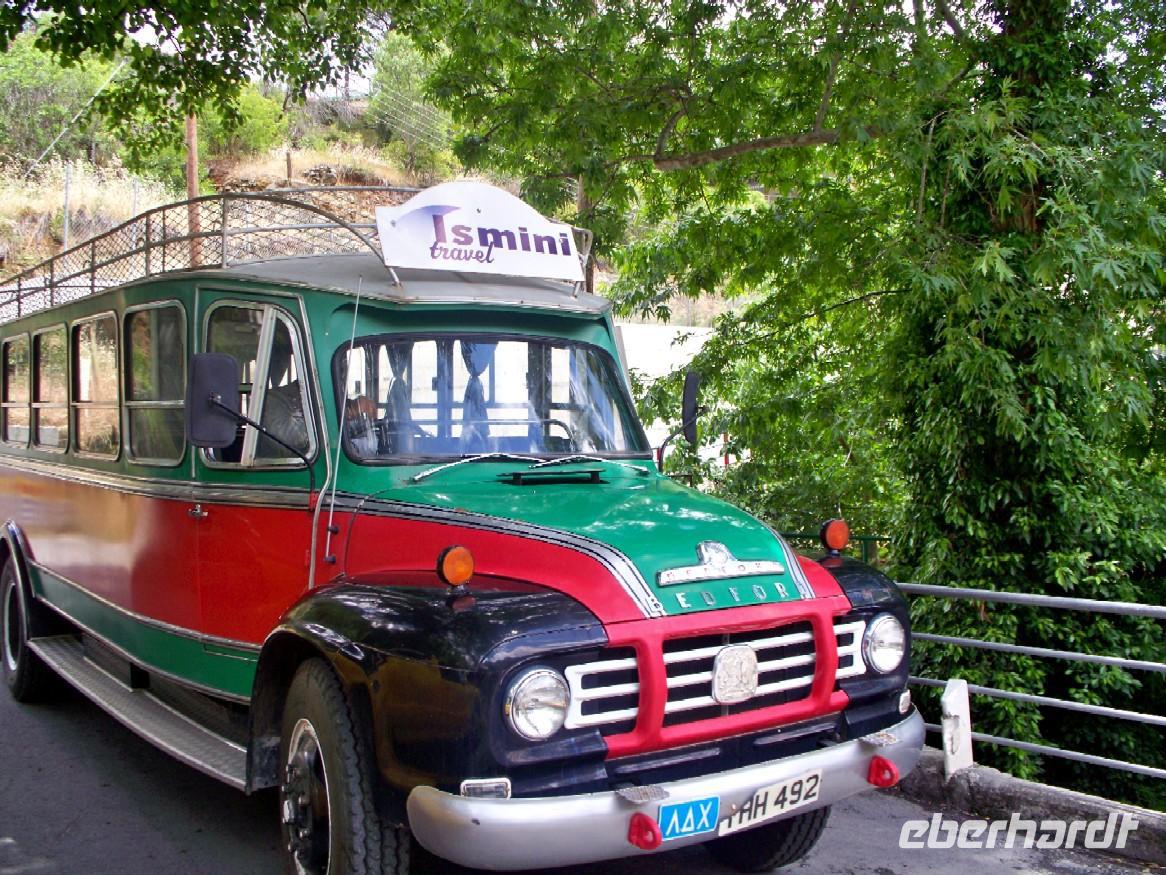 Nach nur ein paar Stunden Schlaf starteten wir zum Ausflug. Heute fuhren wir mit einem original restaurierten Bedford-Oldtimer-Bus. Es war einfach nur einzigartig wie man mit dem Oldtimer vorwärts gekommen ist. Die Berge waren für uns nicht so leicht zu absolvieren. Die Maximalgeschwindigkeit am Berg waren 25km/h. Doch das Tachometer zeigte zwischendurch auch mal 15km/h. Doch uns machte es viel Spaß mit dem Oldtimer durch das Gebirge zu fahren und wir hatten ja viel Zeit. Schließlich sind wir alle im Urlaub. Als ersten stoppten wir in Pelendri, wo sich die Heilige-Kreuz-Kirche befindet, welche zum Unesco-Weltkulturerbe gehört. Weiter ging es auf ca. 1200m, wo unsere 2-stündige Wanderung zu den Kalydona-Wasserfällen begann. Die Wanderung ging entlang eines Baches und durch den herrlichen Wald. Zwischendurch hatten wir immer Bachüberquerungen dabei. Natürlich war unser Reiseleiter Jorgos und ich bei dem überqueren des Baches unseren Gästen behilflich. Nach einer guten Stunde erreichten wir die Kalydona-Wasserfälle. Es war beeindruckend. Eine himmlische Ruhe und nur das Rauschen des Wasserfalles. Nach der Wanderung hatte es uns in eine kleine Taverne verschlagen. Wir stärkten uns bei einem Meze-Essen und mit typischen zypriotischen Wein. Anschließend besuchten wir das Heimatmuseum in Phini von Herrn Pilavakis. Hier brachte uns Jorgos mit viel Witz die frühere Lebensweise der Zyprioten näher. Auf der Rückfahrt legten wir einen Stopp in einer Weinkelterei ein und probierten zahlreiche lokale Weine. Der Tag war für uns alle ein absolutes Highlight, denn wenn fährt man schon einmal mit einem Bedford-Oldtimer-Bus und bekommt soviel zu sehen?Leider war für uns an diesem Abend schon wieder die Zeit gekommen um die Koffer zu packen.