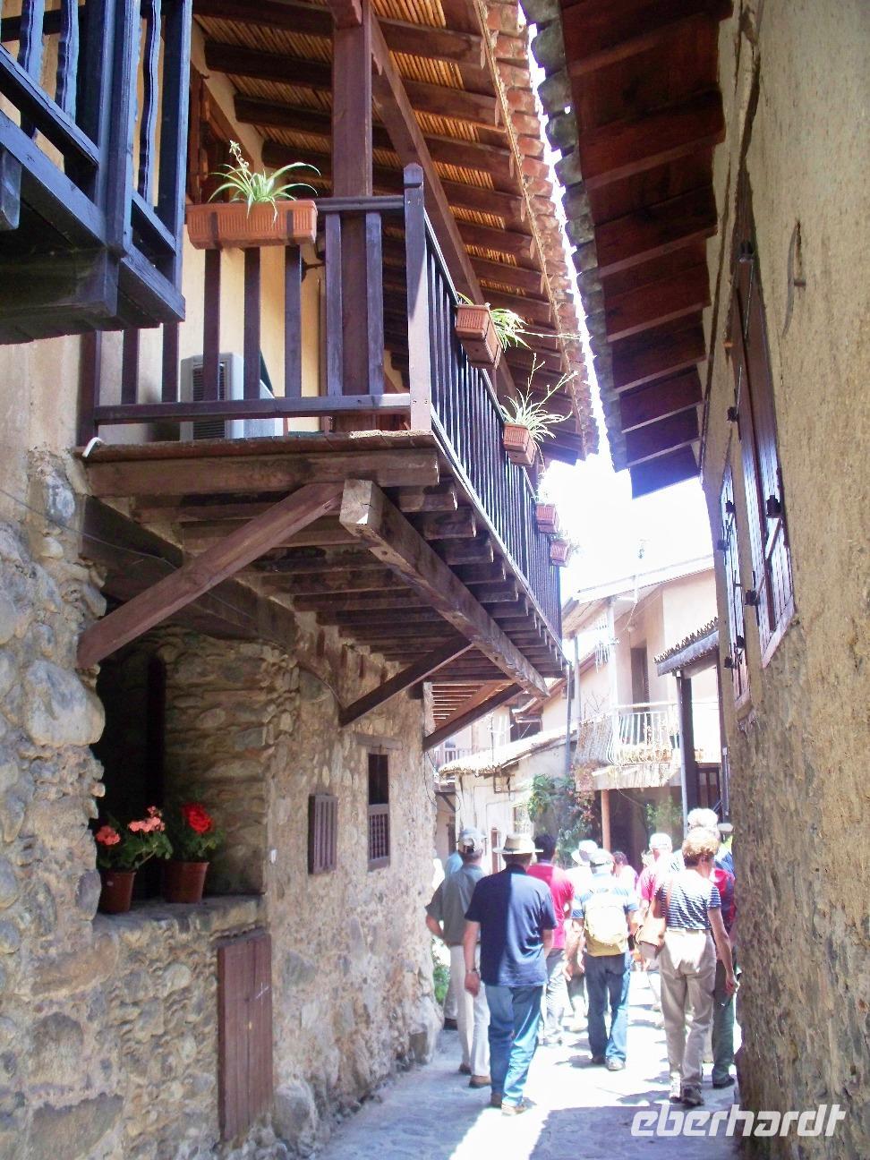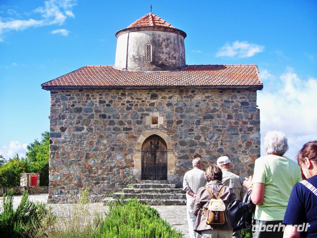 Am Morgen ging es für uns ins Troodos-Gebirge, welches unser zu Hause für die nächsten 3 Nächte war. Auf den Weg dahin legten wir Stopps in Asinou und Galata ein. Hier besuchten wir die beeindruckenden Scheunendachkirchen. Diese Kirchen waren für uns etwas ganz besonderes, denn von außen wirken sie sehr unscheinbar. Doch von innen strahlen sie mit ihren faszinierenden Fresken hervor, welche sehr gut erhalten und teilweise bis zu 900 Jahre alt sind. Nach diesen Impressionen und den lebhaften Erzählungen von Jorgos ging es weiter nach Kakopetria. Die Häuser stammen teilweise aus dem 19. Jahrhundert und stehen heute unter Denkmalschutz. Das Dorf lernten wir bei einem Spaziergang kennen und kehrten in eine kleine Taverne ein. Von hier aus konnten wir das typisch zypriotische Leben im Gebirge beobachten. An fast jedem Haus sahen wir die zypriotischen Frauen ihre eigene Marmelade und Kekse verkaufen. Die Männer saßen in Cafés und spielten Backgammon. Nach der Stärkung ging es in unser Hotel nach Agros. Doch bevor wir das Hotel erreichten stoppen wir noch an einem ruhigen Punkt. Jorgos und ich teilten an unsere Gruppe ein Schnäpschen aus. Wir nutzen die Gelegenheit und bedankten und verabschiedeten uns bei unserem Buschauffeur Jorgos, da er uns leider heute nach der Ankunft verlässt. Aber wir haben auch auf die vergangenen schönen Tage und kommenden Tage getrunken. Jetzt konnte es weiter gehen zum Hotel. Das Hotel Rodon liegt auf ca. 1.100m und das merkte man auch an den leicht gesunkenen Temperaturen. Agros ist ein kleines idyllisches Dorf und wird auch Rosendorf genannt. Den Abend ließen wir mit einem Glas Rotwein auf der Terrasse ausklingen.