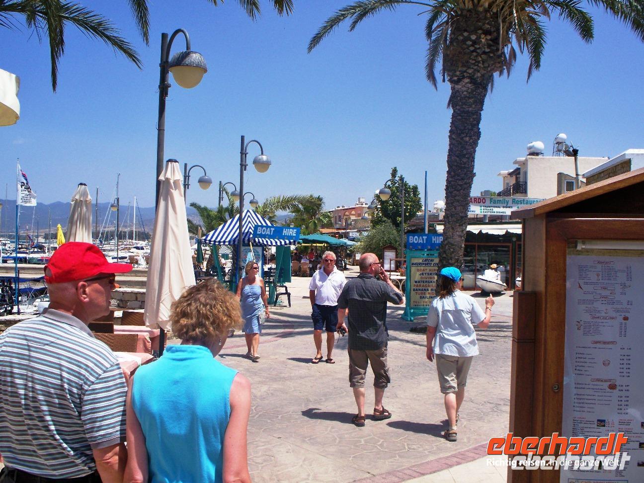 Die zwei Tage standen zur freien Verfügung. Viele nutzen die Gelegenheit um sich am Strand zu erholen und die Sonne zu genießen. Einige von uns sind mit den öffentlichen Verkehrsmitteln nach Pafos gefahren. Der Weg vom Hotel Cynthiana zur Bushaltestelle sind nur ca. 5 Minuten und die Busfahrt nach Pafos ist relativ günstig. Nach einem Fahrplan haben wir im Hotel nicht gefragt, da die Busse aller 10 Minuten fahren. Wir entschieden uns für den Bus zum Hafen. Nach einer Busfahrt von ungefähr 25 Minuten kamen wir am malerischen Hafen an. Von hier aus haben wir einen Spaziergang an der Hafenpromenade unternommen und anschließend sind wir in Ruhe die ca. 3 Kilometer zum Markt gelaufen. Die Strecke vergeht für uns Frauen sehr schnell, denn auf dem Weg gibt es viele herrliche Geschäfte, was für die Männer weniger schön war. ? Am Markt schauten wir was die Händler anzubieten hatten. Nach unserer Erkundungstour nahmen wir wieder bequem den Linienbus zum Hotel. Die Temperaturen waren im Verlauf des Tages soweit nach oben geklettert, dass wir uns entschieden hatten noch einmal in das Meer bzw. in den Pool zu springen. Am Abend ließen wir es uns bei einem typischen zypriotischen Abendessen im Hotel gut gehen. Nebenbei beobachteten wir den Sonnenuntergang. Der Abend klingte an der Bar bei griechisch-zypriotischer Musik aus. Natürlich gehörte das Tanzen auch dazu.